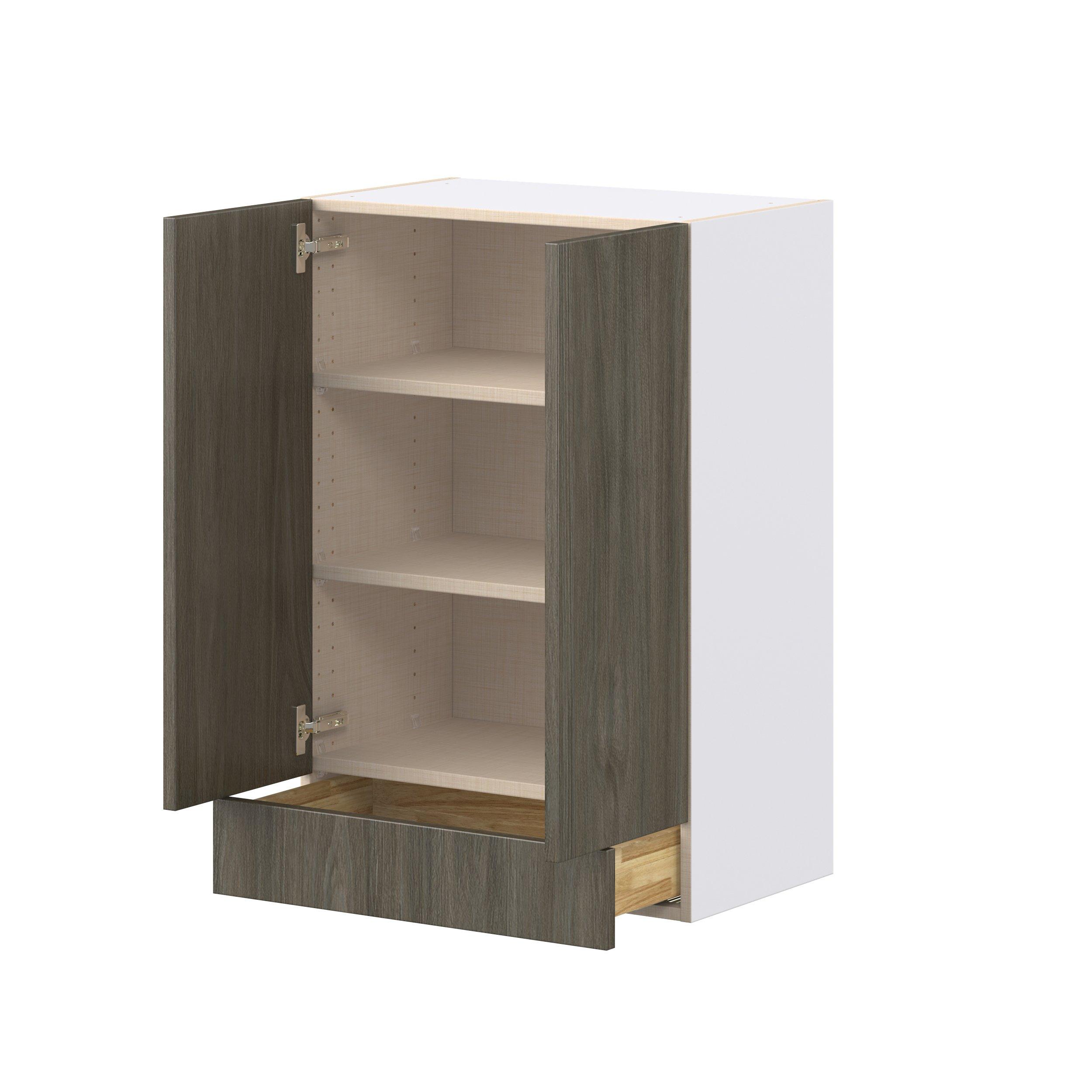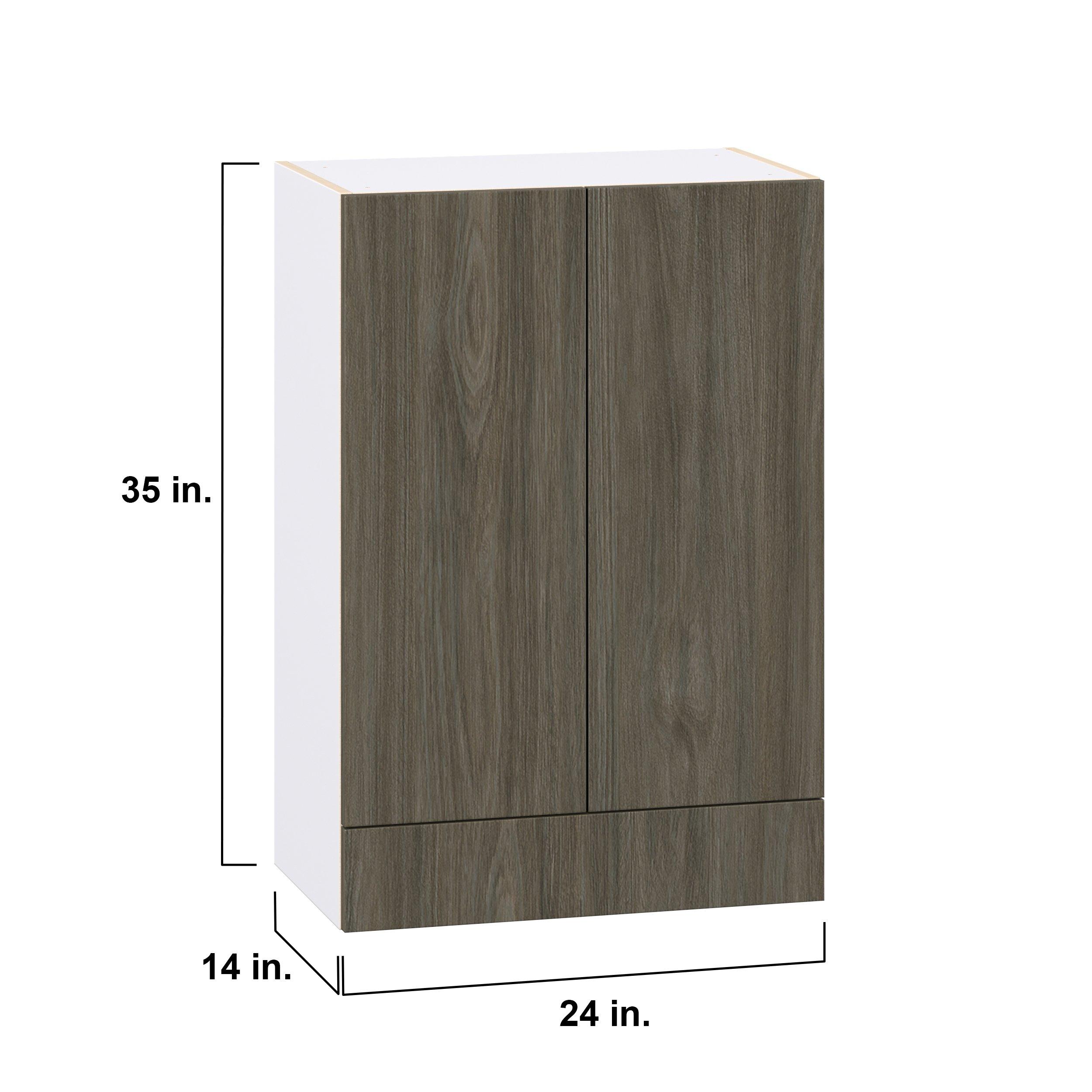 Elevate your project with the contemporary charm of Glenwood slab-style cabinets. Available in desert Mojavi oak and rich burnt walnut finishes, this collection captures the warmth and beauty of natural wood with the practicality of textured melamine. Crafted from one-piece MDF Studio Design Collection Glenwood 24 in. Burnt Walnut Door and Drawer Wall Cabinet is designed to resist hairline cracks while the easy-to-clean finish stands up to stains and moisture. Featuring 5-piece doors and dovetail drawer joints, these cabinets offer durability and elegance. This collection combines style with everyday storage solutions.