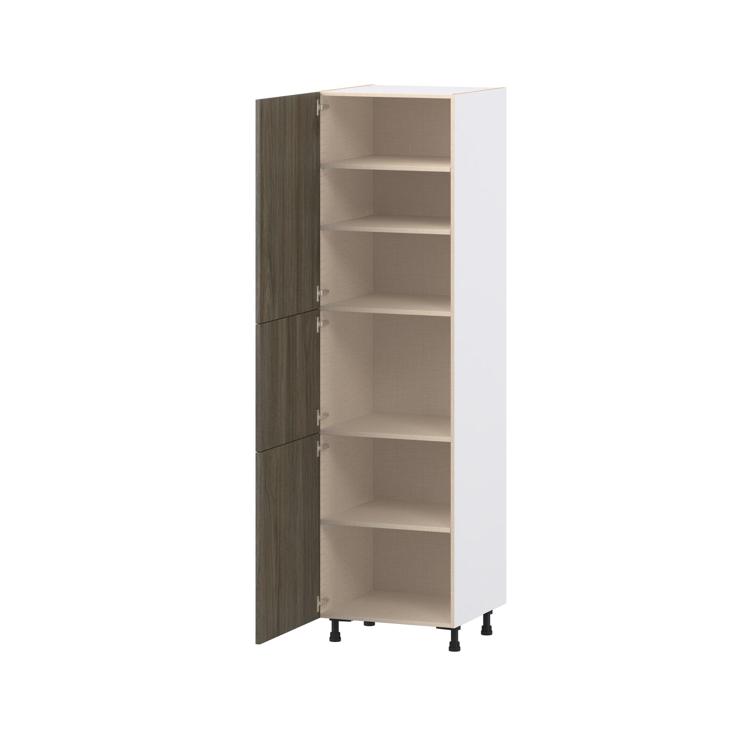 Elevate your project with the contemporary charm of Glenwood slab-style cabinets. Available in desert Mojavi oak and rich burnt walnut finishes, this collection captures the warmth and beauty of natural wood with the practicality of textured melamine. Crafted from one-piece MDF Studio Design Collection Glenwood 24 in. Burnt Walnut Door Pantry Cabinet is designed to resist hairline cracks while the easy-to-clean finish stands up to stains and moisture. Featuring 5-piece doors and dovetail drawer joints, these cabinets offer durability and elegance. This collection combines style with everyday storage solutions.