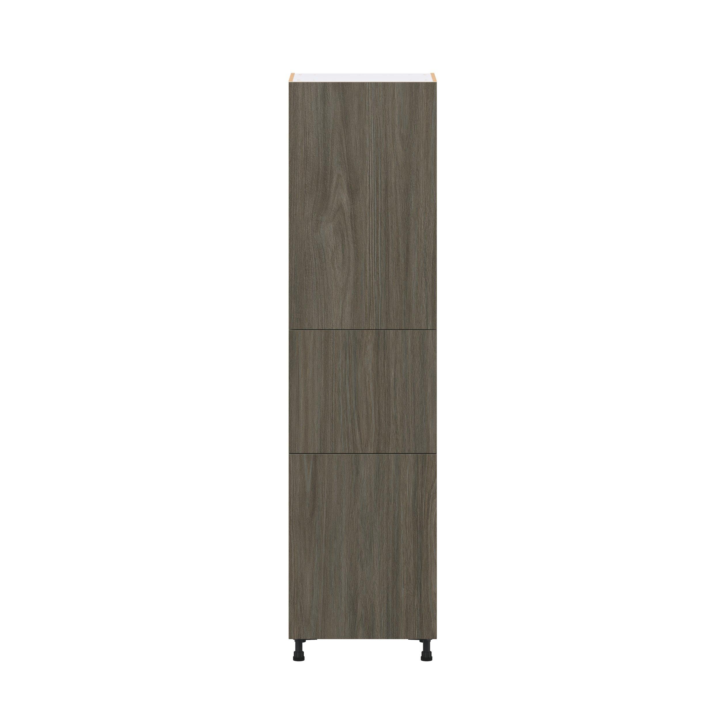 Elevate your project with the contemporary charm of Glenwood slab-style cabinets. Available in desert Mojavi oak and rich burnt walnut finishes, this collection captures the warmth and beauty of natural wood with the practicality of textured melamine. Crafted from one-piece MDF Studio Design Collection Glenwood 24 in. Burnt Walnut Door Pantry Cabinet is designed to resist hairline cracks while the easy-to-clean finish stands up to stains and moisture. Featuring 5-piece doors and dovetail drawer joints, these cabinets offer durability and elegance. This collection combines style with everyday storage solutions.