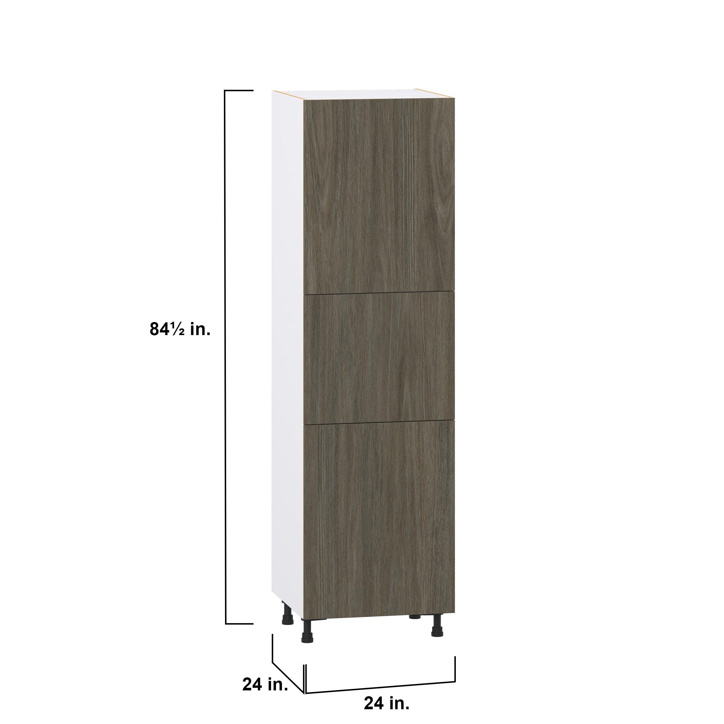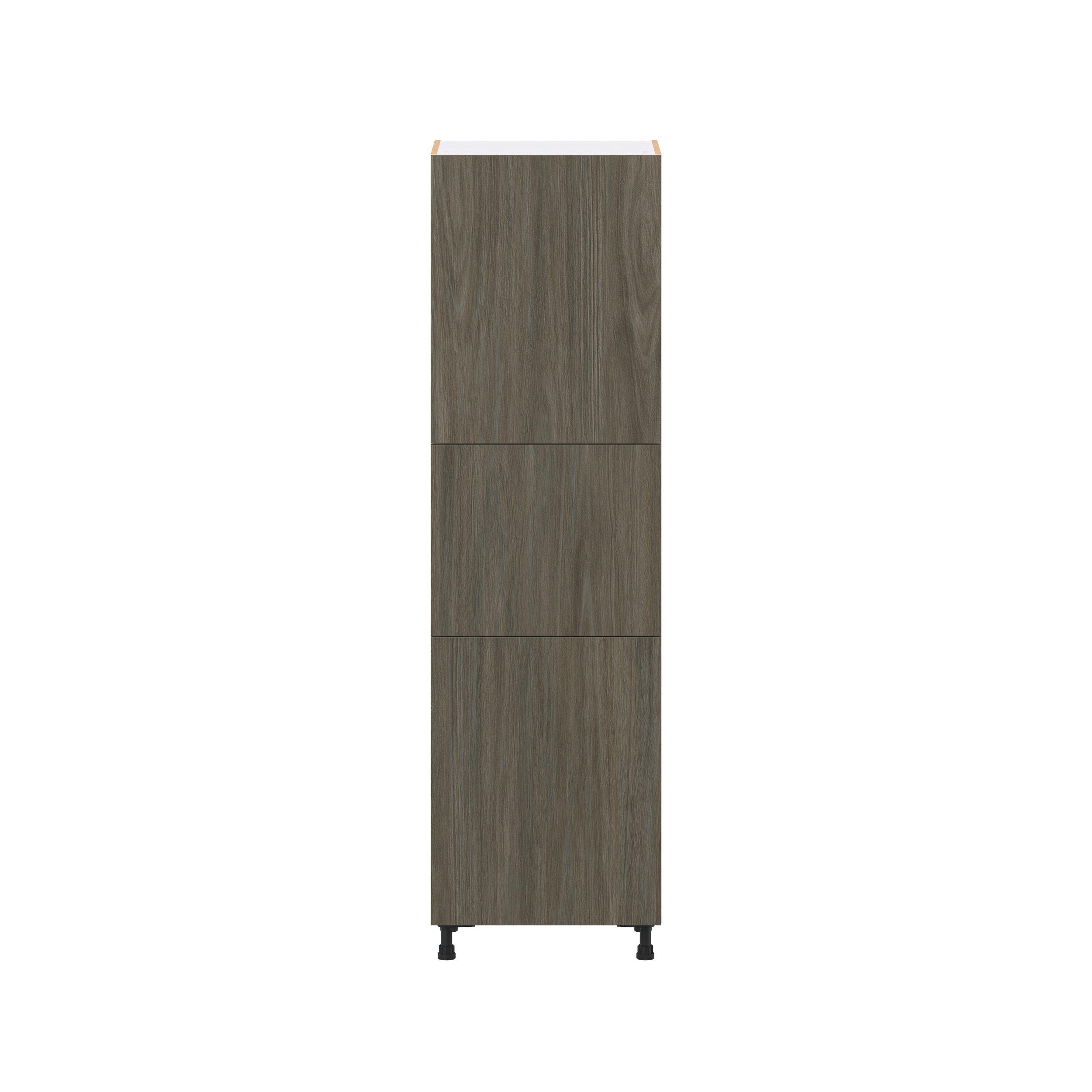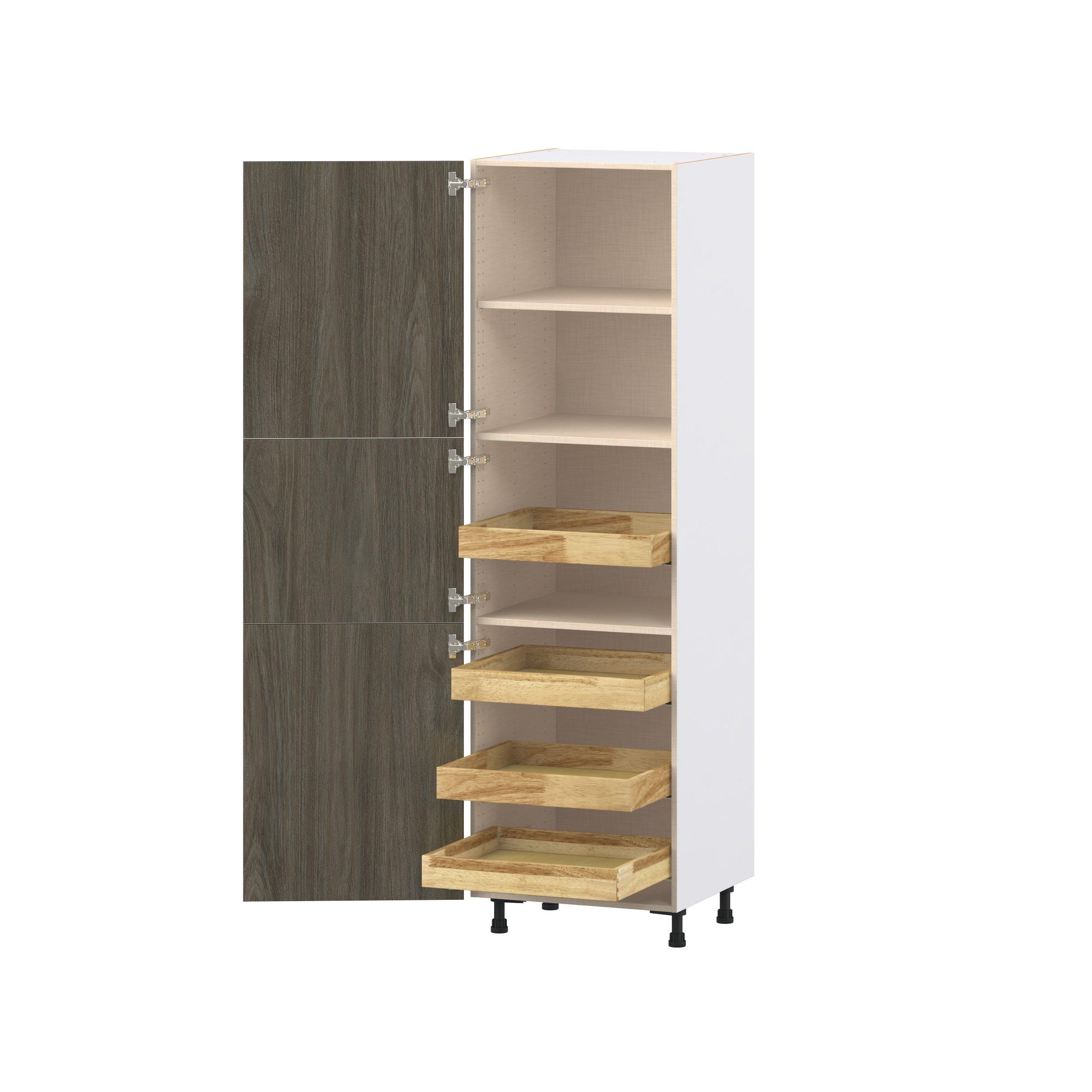 Elevate your project with the contemporary charm of Glenwood slab-style cabinets. Available in desert Mojavi oak and rich burnt walnut finishes, this collection captures the warmth and beauty of natural wood with the practicality of textured melamine. Crafted from one-piece MDF Studio Design Collection Glenwood 24 in. Burnt Walnut Pantry Cabinet with Inner Pull-Out Drawer is designed to resist hairline cracks while the easy-to-clean finish stands up to stains and moisture. Featuring 5-piece doors and dovetail drawer joints, these cabinets offer durability and elegance. This collection combines style with everyday storage solutions.