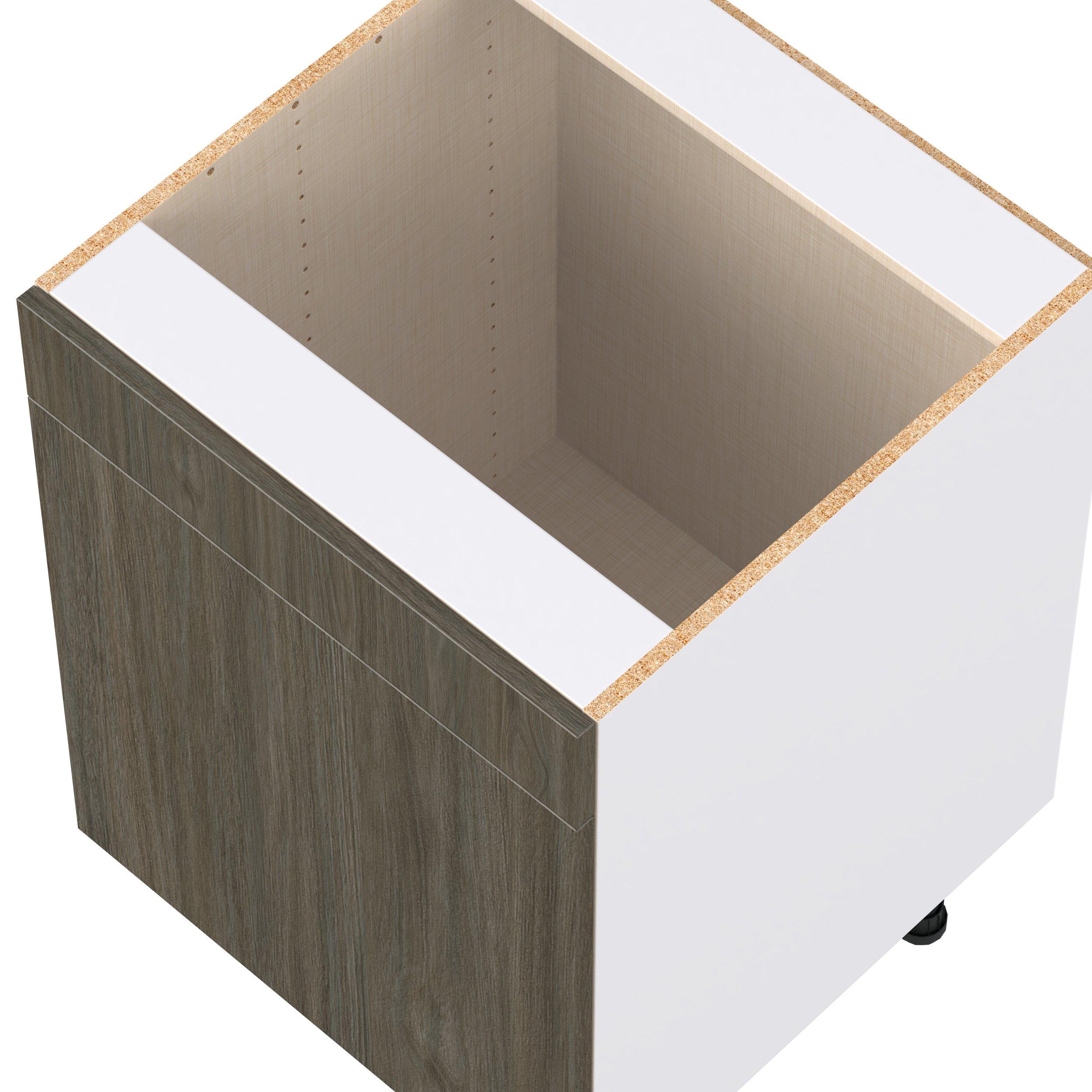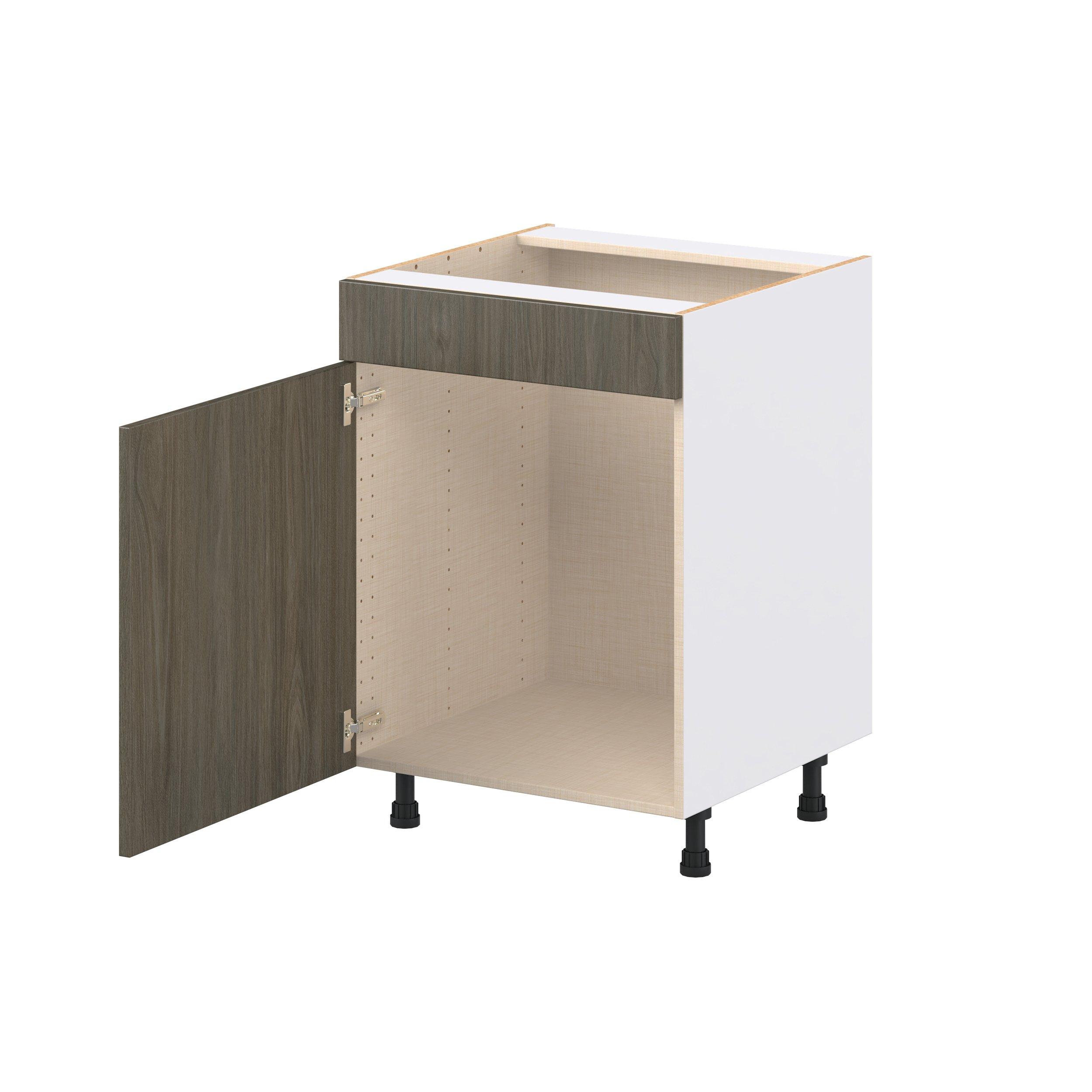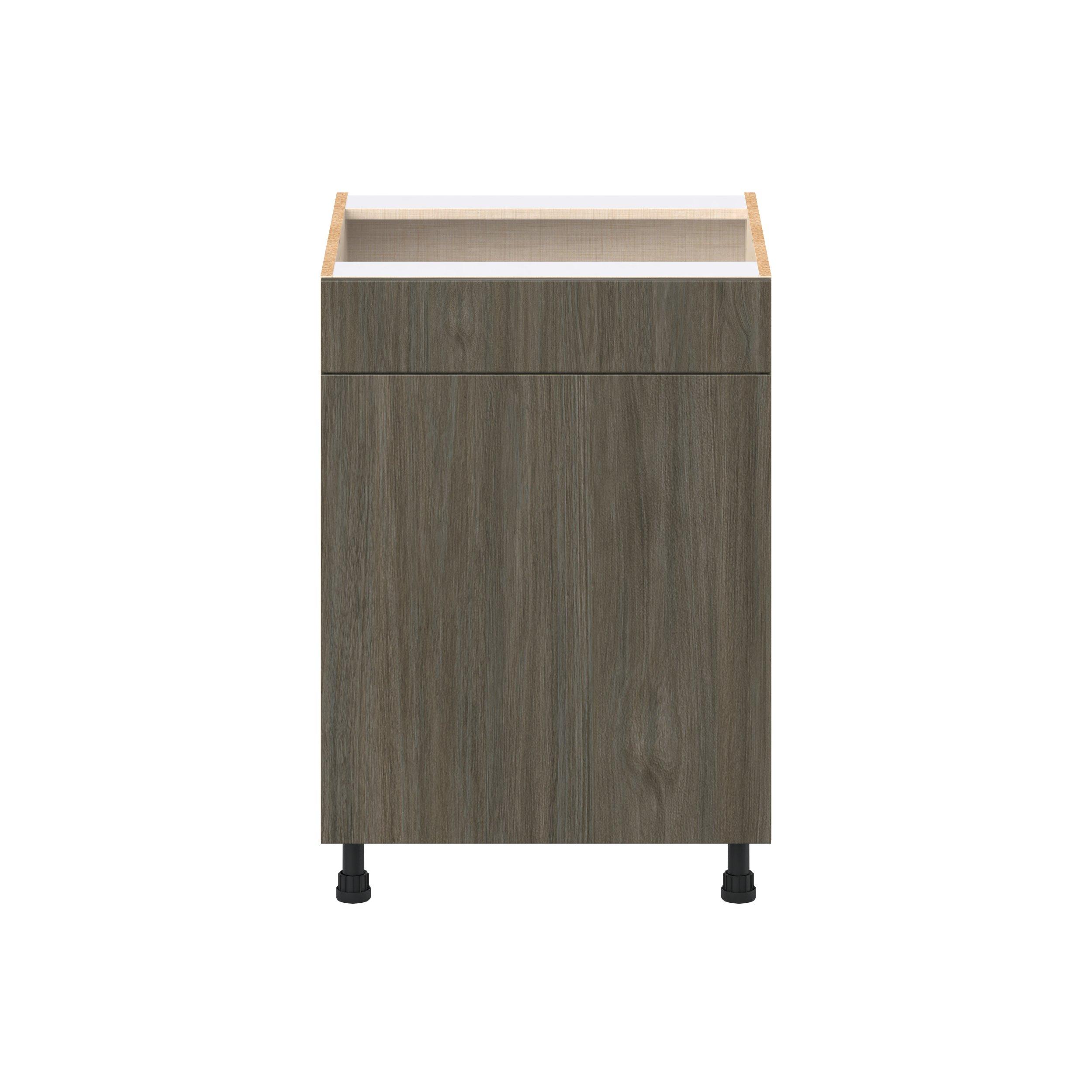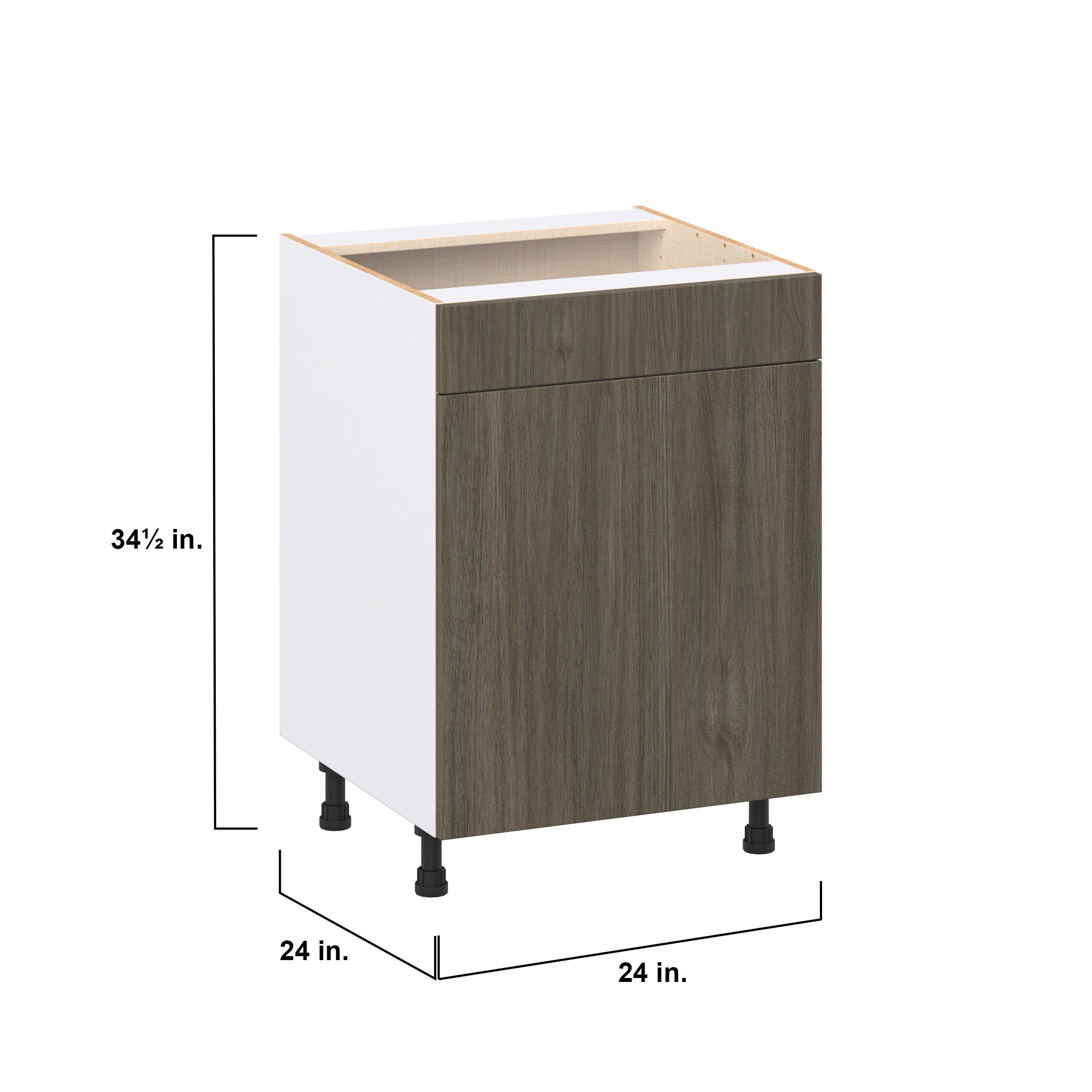 Elevate your project with the contemporary charm of Glenwood slab-style cabinets. Available in desert Mojavi oak and rich burnt walnut finishes, this collection captures the warmth and beauty of natural wood with the practicality of textured melamine. Crafted from one-piece MDF Studio Design Collection Glenwood 24 in. Burnt Walnut Sink Base Cabinet with False Front is designed to resist hairline cracks while the easy-to-clean finish stands up to stains and moisture. Featuring 5-piece doors and dovetail drawer joints, these cabinets offer durability and elegance. This collection combines style with everyday storage solutions.