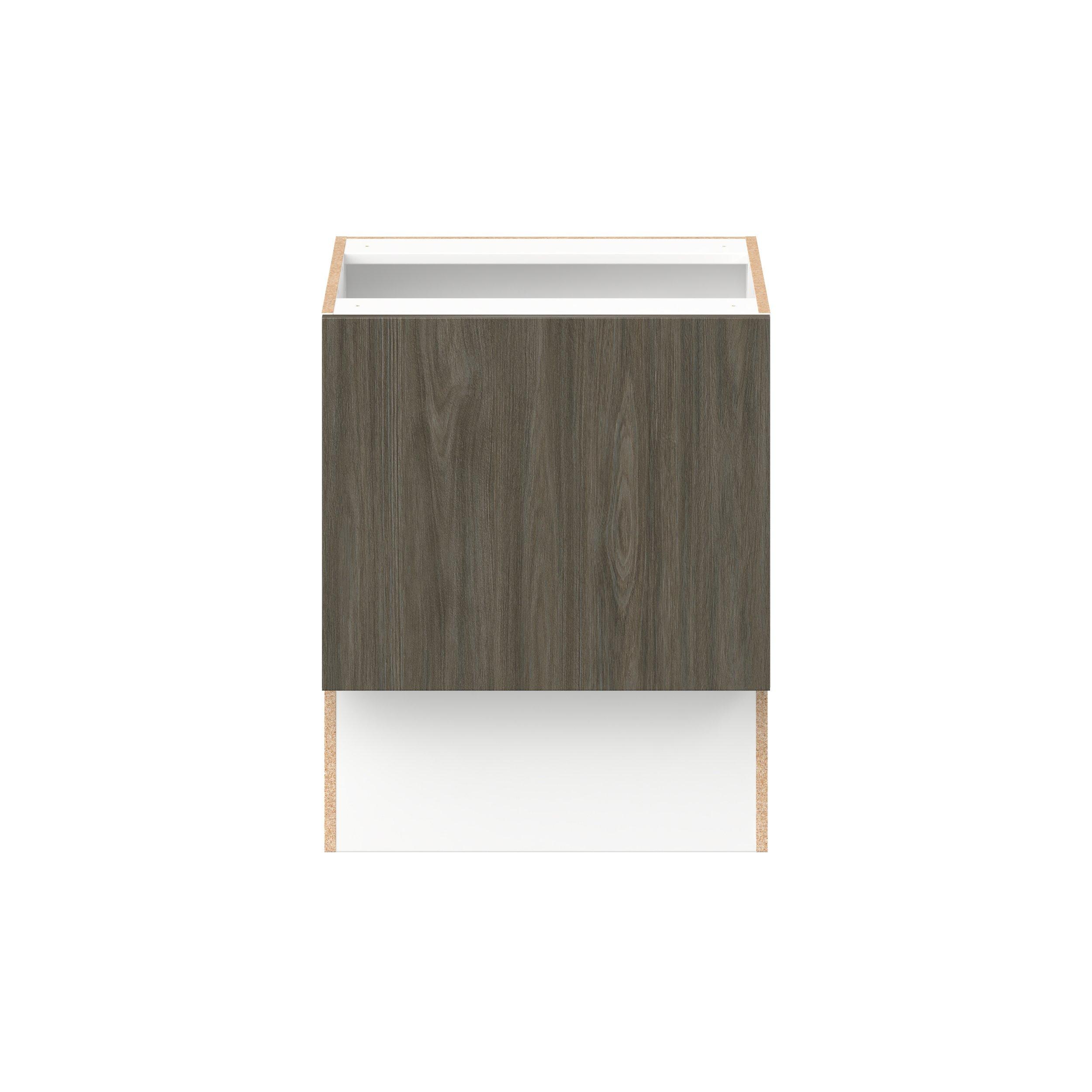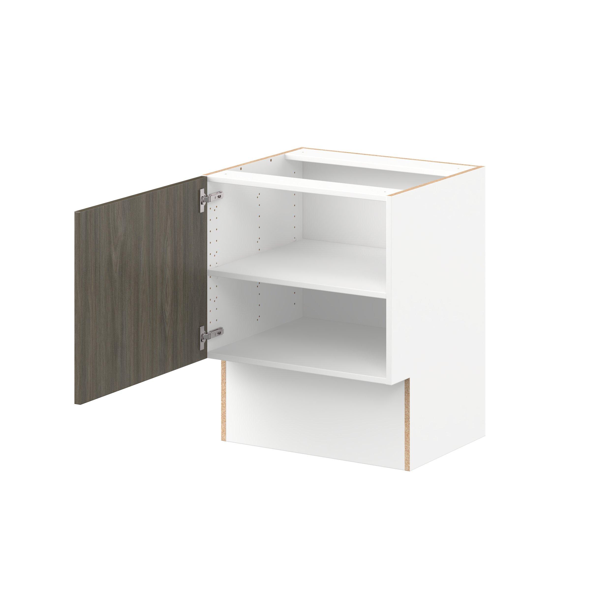 Elevate your project with the contemporary charm of Glenwood slab-style cabinets. Available in desert Mojavi oak and rich burnt walnut finishes, this collection captures the warmth and beauty of natural wood with the practicality of textured melamine. Crafted from one-piece MDF Studio Design Collection Glenwood 24 in. Burnt Walnut Vanity Base Cabinet - ADA is designed to resist hairline cracks while the easy-to-clean finish stands up to stains and moisture. Featuring 5-piece doors and dovetail drawer joints, these cabinets offer durability and elegance. This collection combines style with everyday storage solutions.