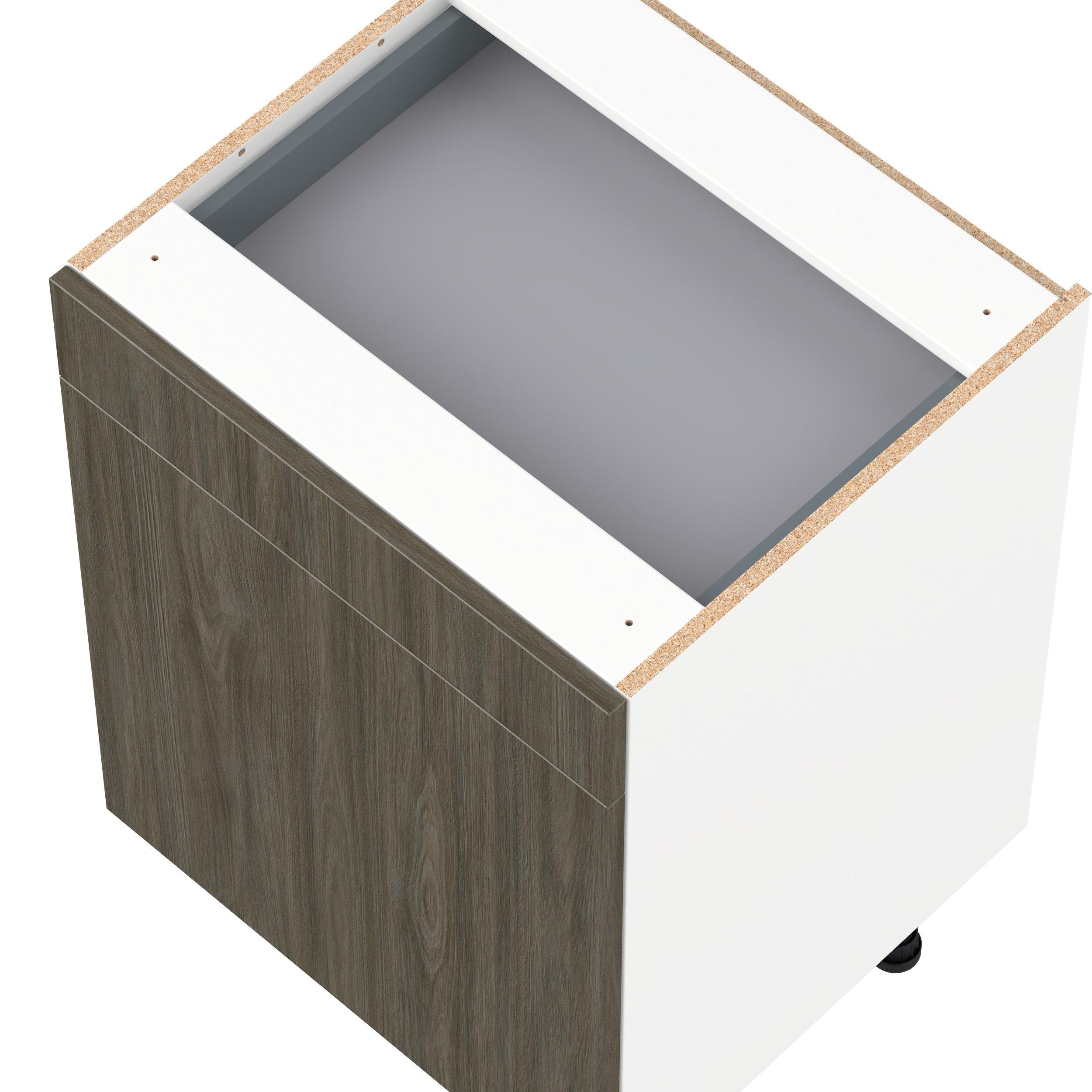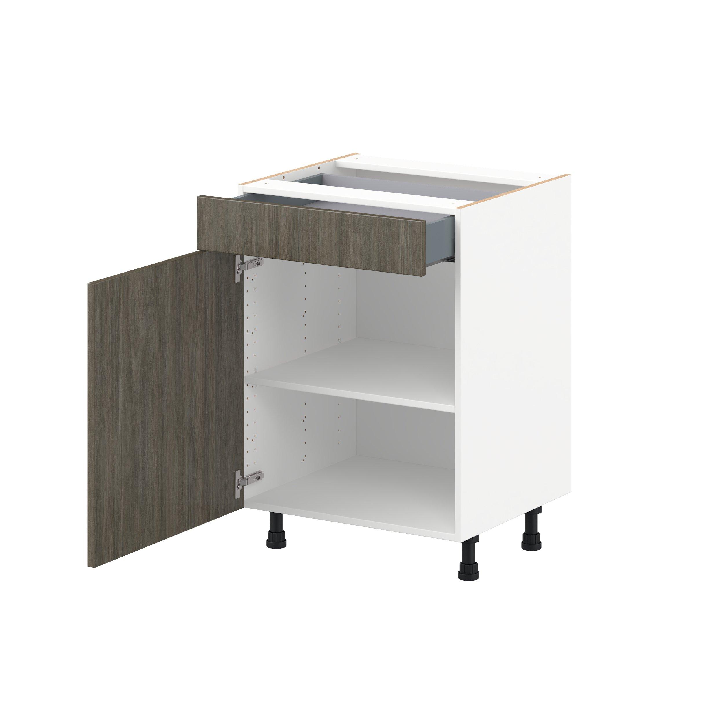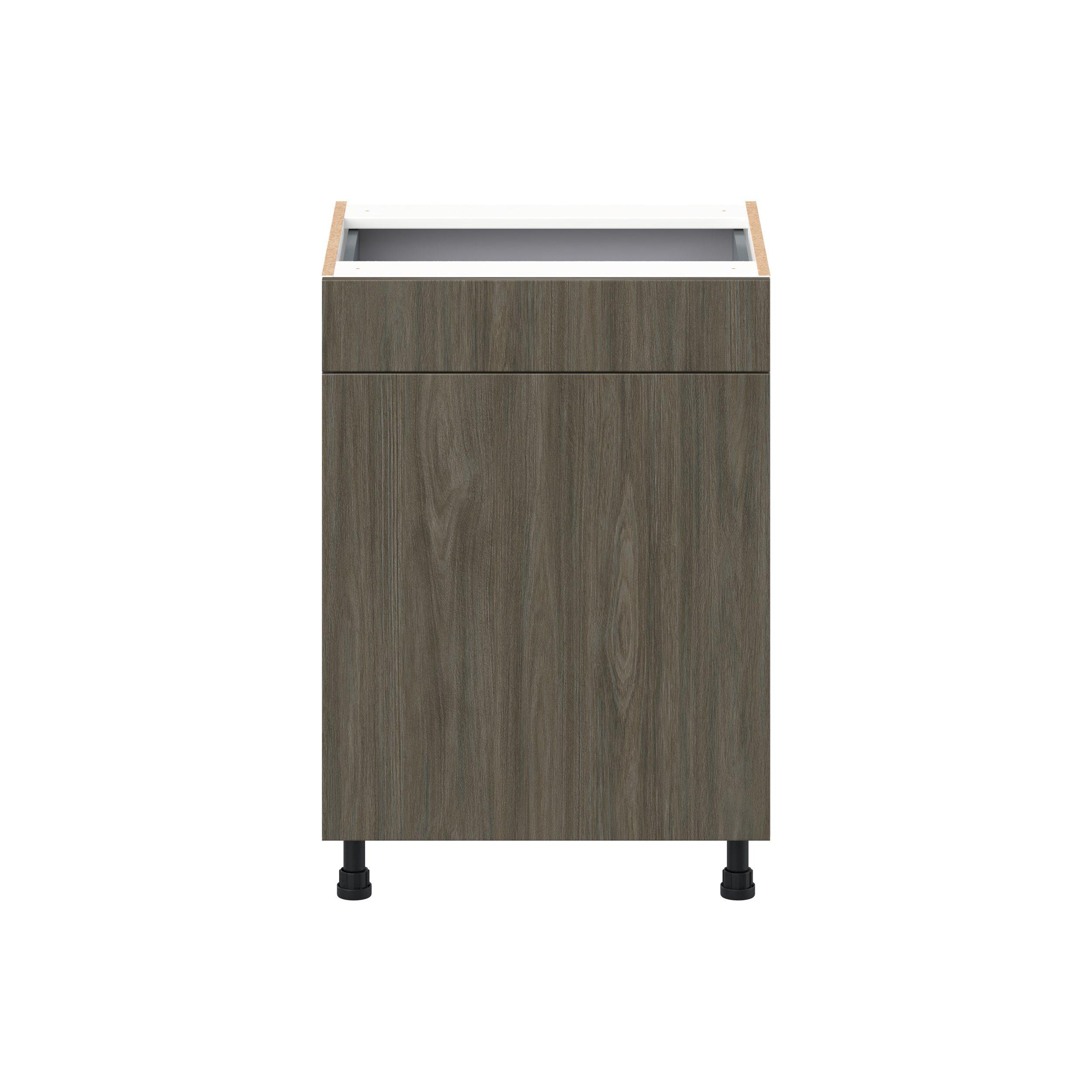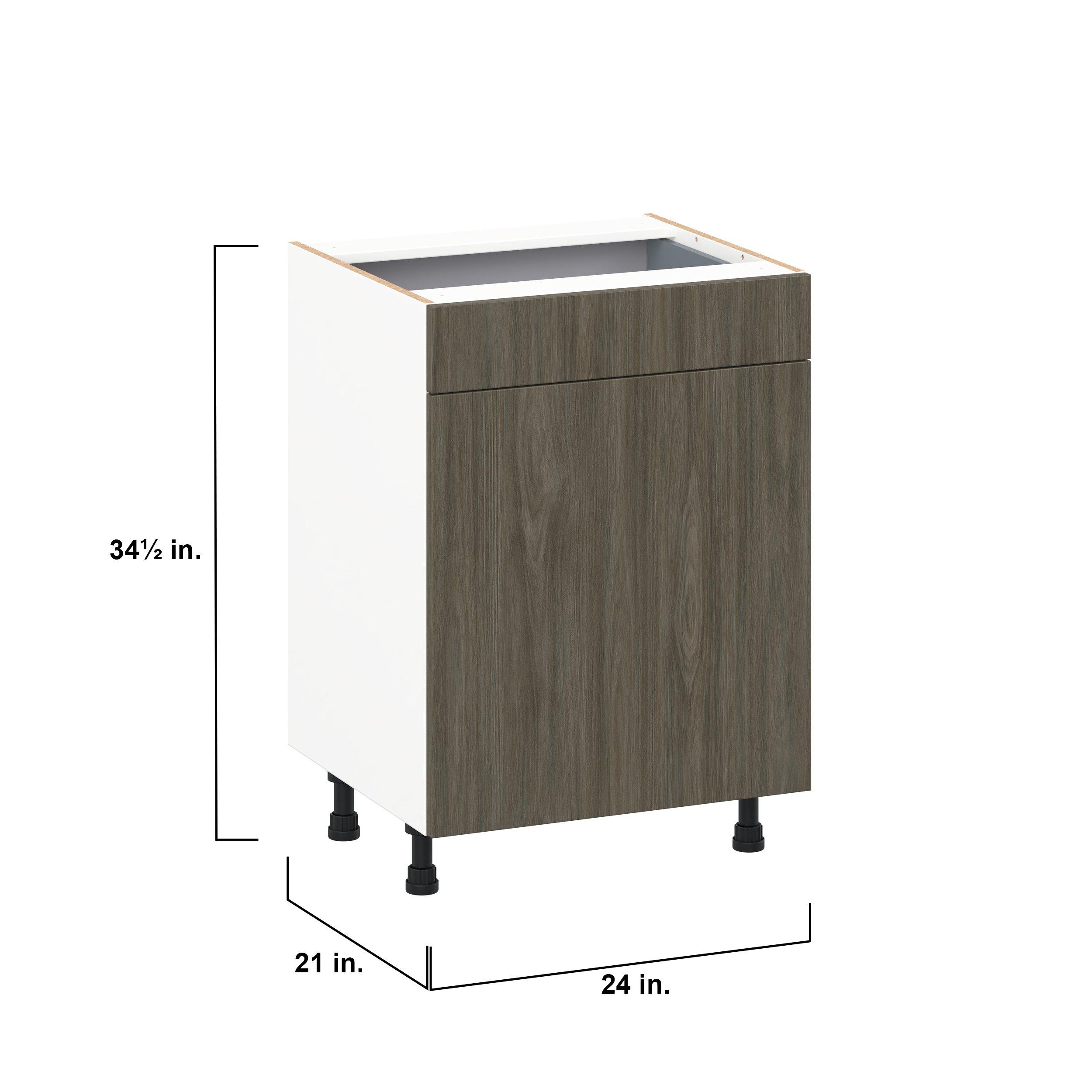Elevate your project with the contemporary charm of Glenwood slab-style cabinets. Available in desert Mojavi oak and rich burnt walnut finishes, this collection captures the warmth and beauty of natural wood with the practicality of textured melamine. Crafted from one-piece MDF Studio Design Collection Glenwood 24 in. Burnt Walnut Vanity Door and Drawer Base Cabinet - ADA is designed to resist hairline cracks while the easy-to-clean finish stands up to stains and moisture. Featuring 5-piece doors and dovetail drawer joints, these cabinets offer durability and elegance. This collection combines style with everyday storage solutions.