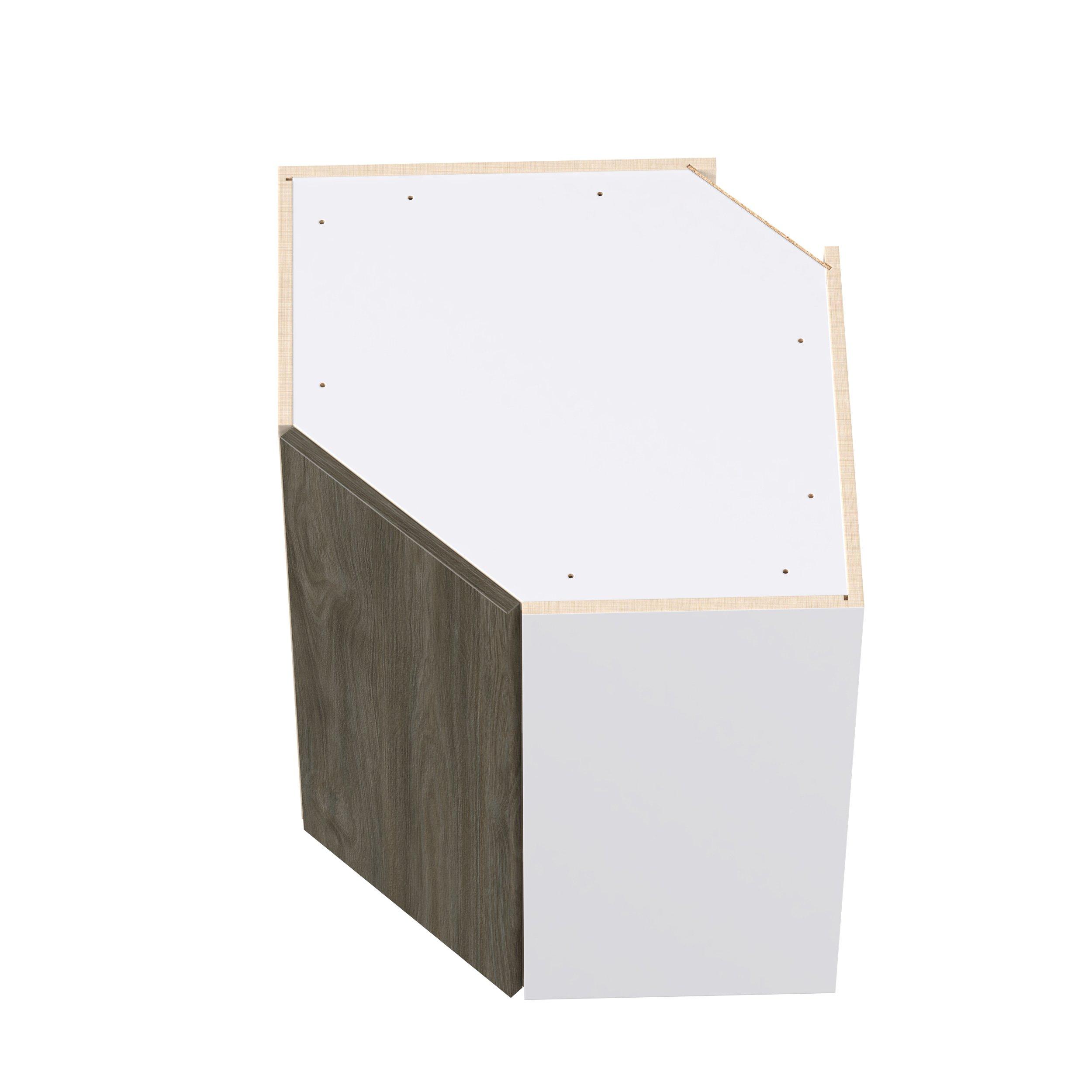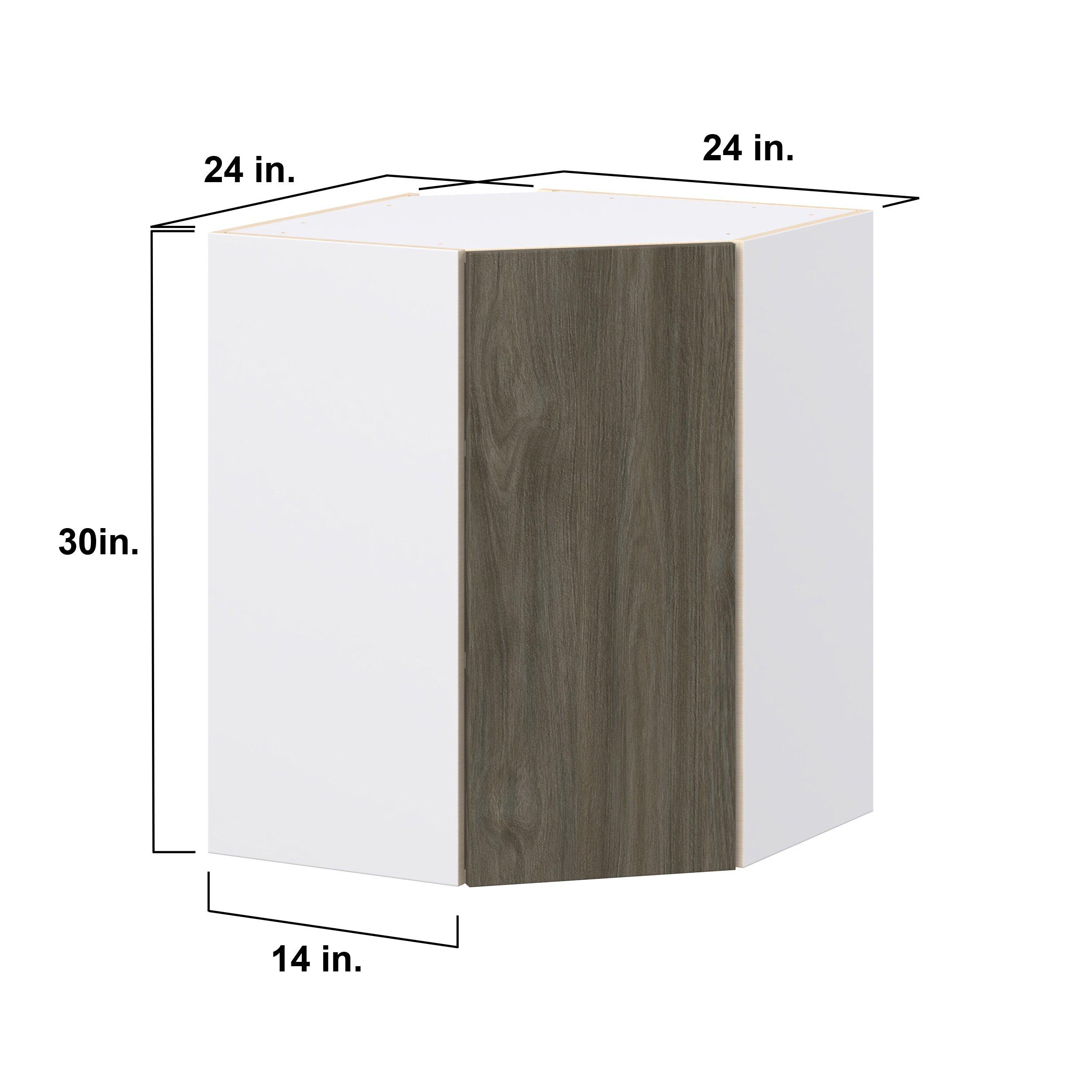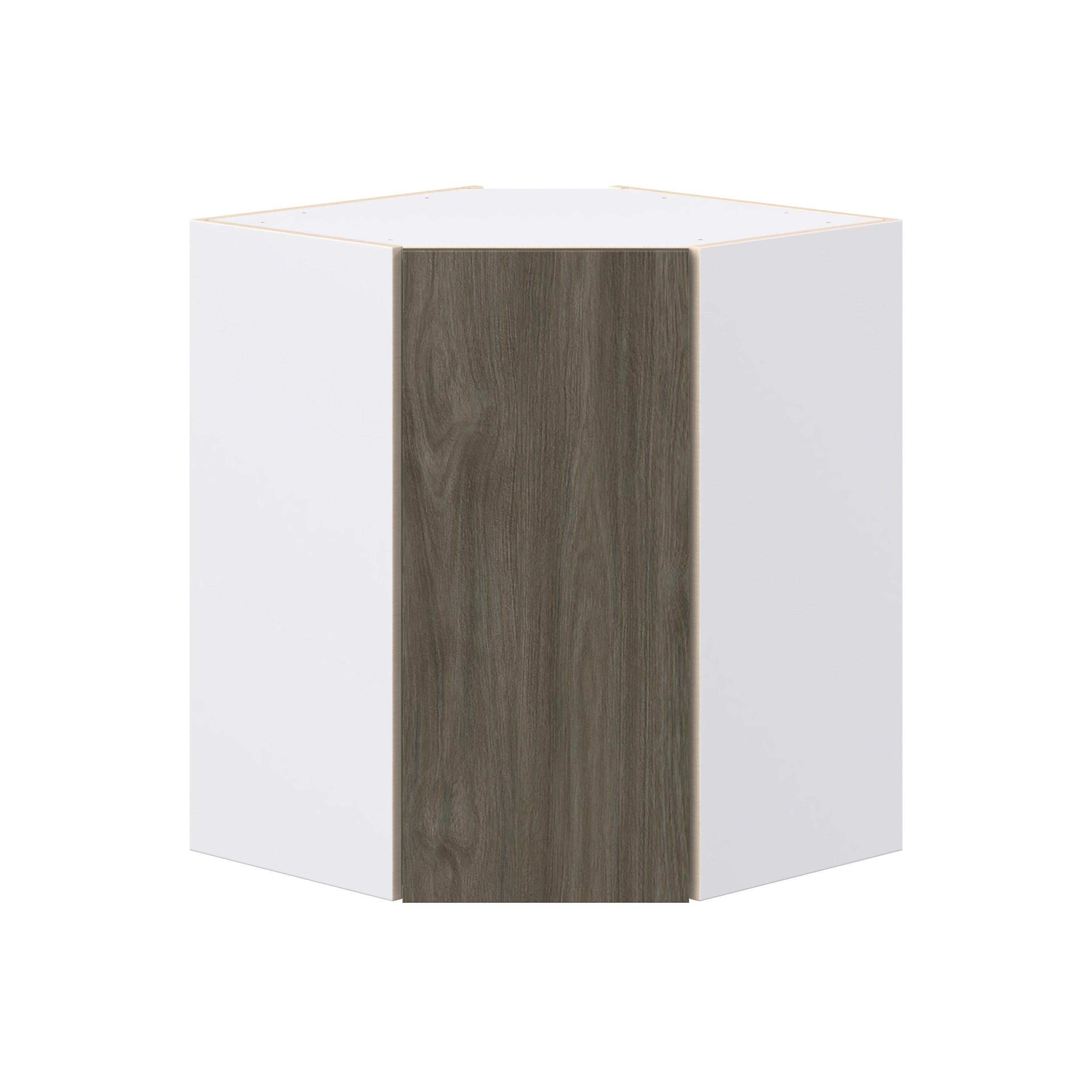 Elevate your project with the contemporary charm of Glenwood slab-style cabinets. Available in desert Mojavi oak and rich burnt walnut finishes, this collection captures the warmth and beauty of natural wood with the practicality of textured melamine. Crafted from one-piece MDF Studio Design Collection Glenwood 24 in. Burnt Walnut Wall Angle Corner Cabinet is designed to resist hairline cracks while the easy-to-clean finish stands up to stains and moisture. Featuring 5-piece doors and dovetail drawer joints, these cabinets offer durability and elegance. This collection combines style with everyday storage solutions.