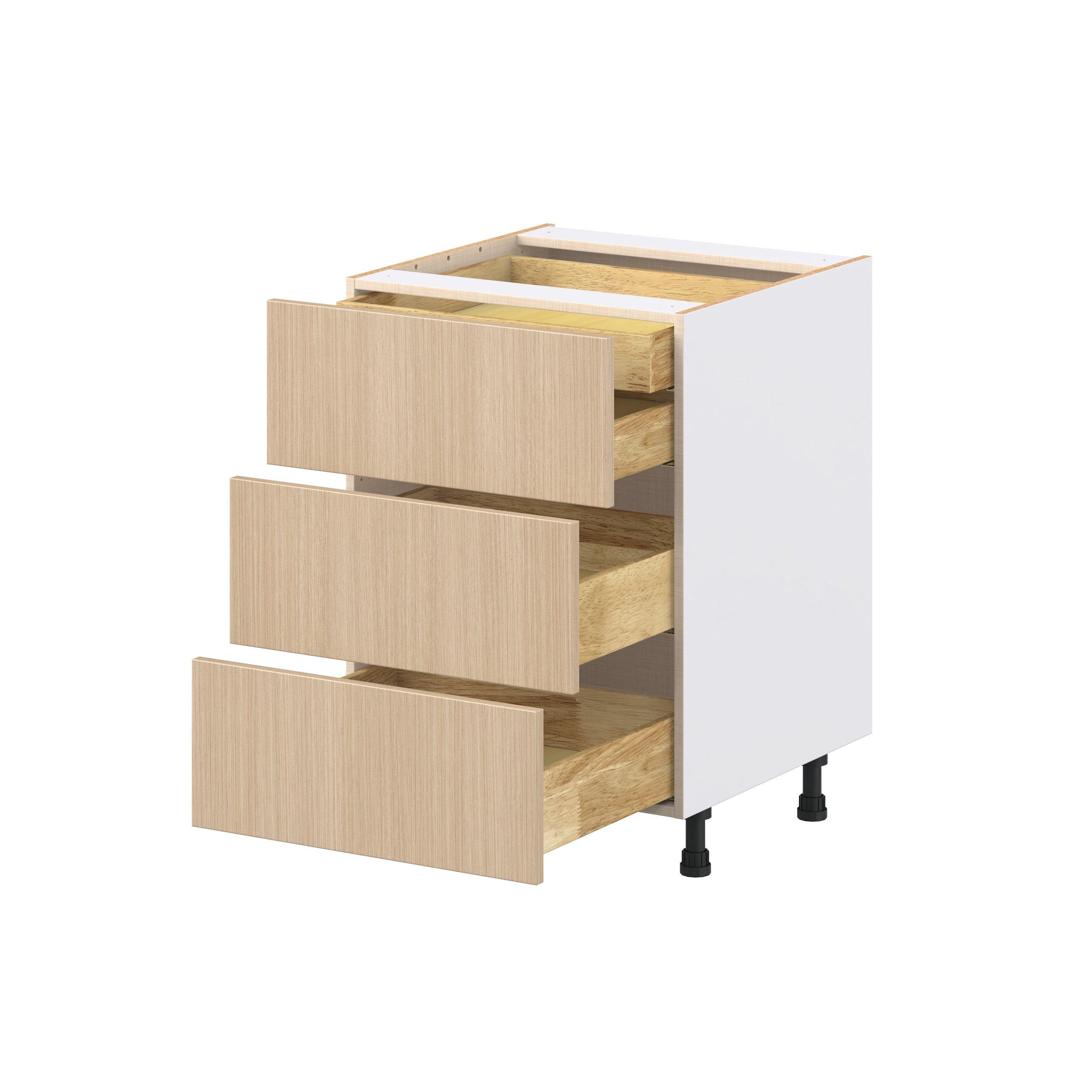 Elevate your project with the contemporary charm of Glenwood slab-style cabinets. Available in desert Mojavi oak and rich burnt walnut finishes, this collection captures the warmth and beauty of natural wood with the practicality of textured melamine. Crafted from one-piece MDF Studio Design Collection Glenwood 24 in. Mojavi Oak Base Cabinet with Inner Pull-Out Drawer is designed to resist hairline cracks while the easy-to-clean finish stands up to stains and moisture. Featuring 5-piece doors and dovetail drawer joints, these cabinets offer durability and elegance. This collection combines style with everyday storage solutions.