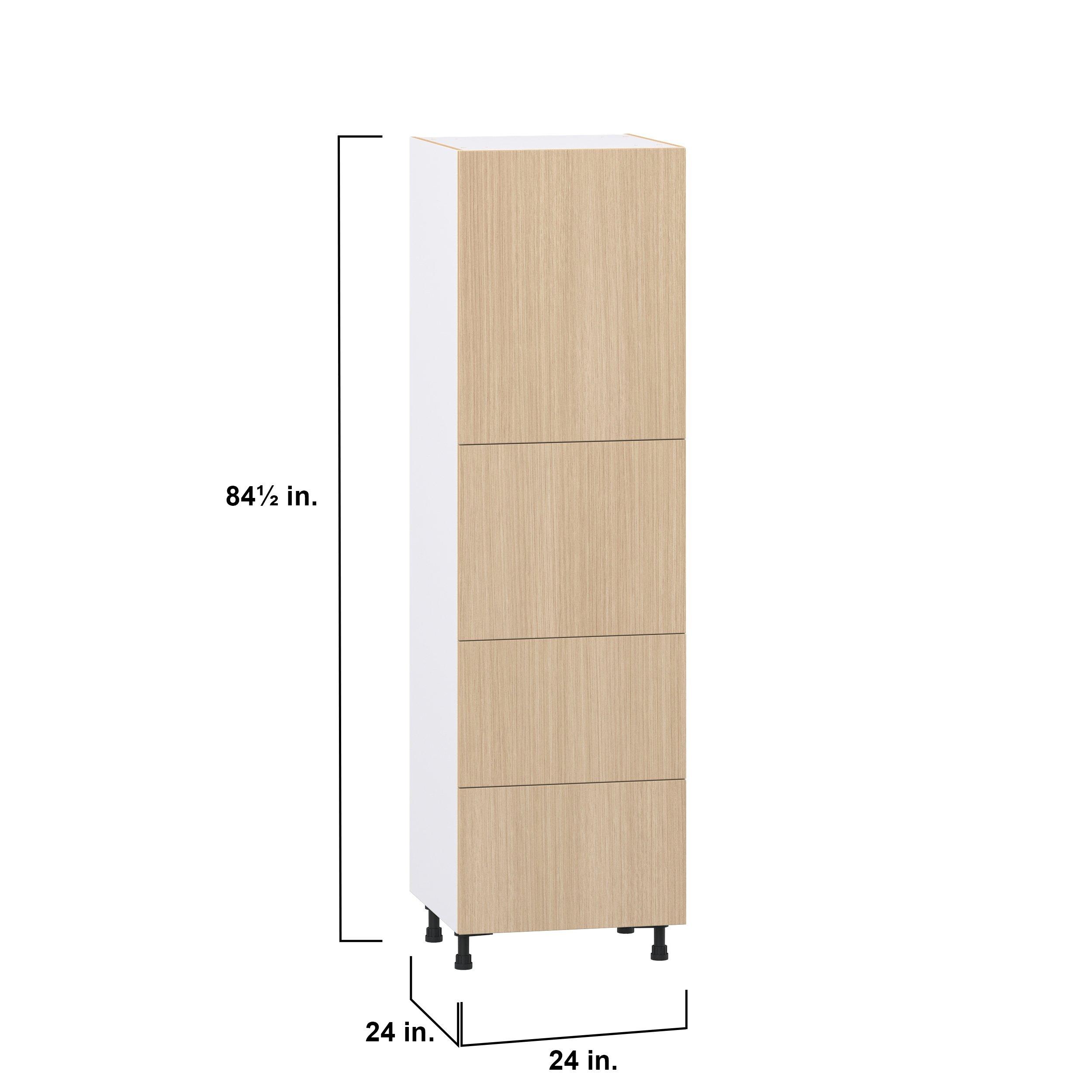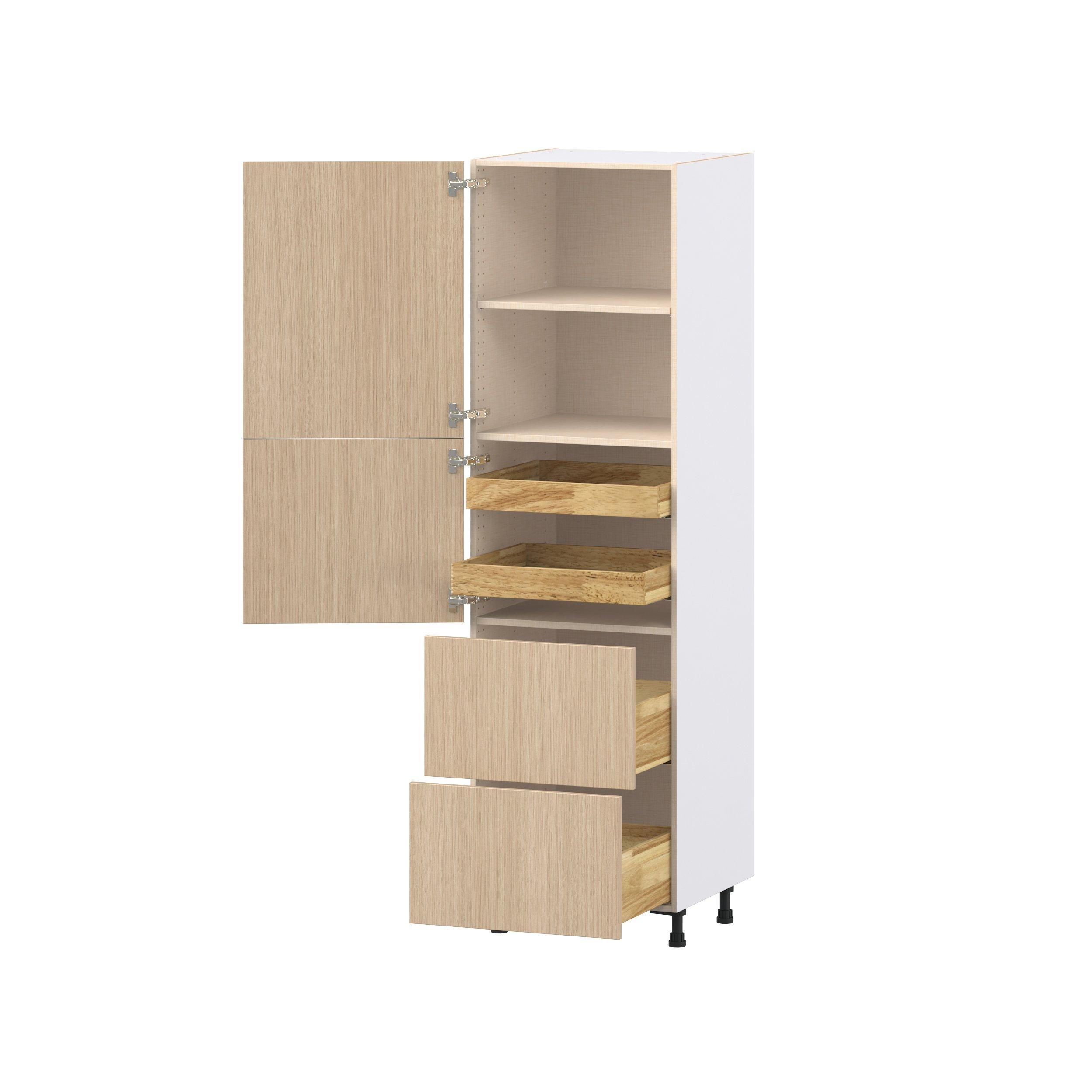 Elevate your project with the contemporary charm of Glenwood slab-style cabinets. Available in desert Mojavi oak and rich burnt walnut finishes, this collection captures the warmth and beauty of natural wood with the practicality of textured melamine. Crafted from one-piece MDF Studio Design Collection Glenwood 24 in. Mojavi Oak Door and Drawer Pantry Cabinet with Inner Pull-Out is designed to resist hairline cracks while the easy-to-clean finish stands up to stains and moisture. Featuring 5-piece doors and dovetail drawer joints, these cabinets offer durability and elegance. This collection combines style with everyday storage solutions.