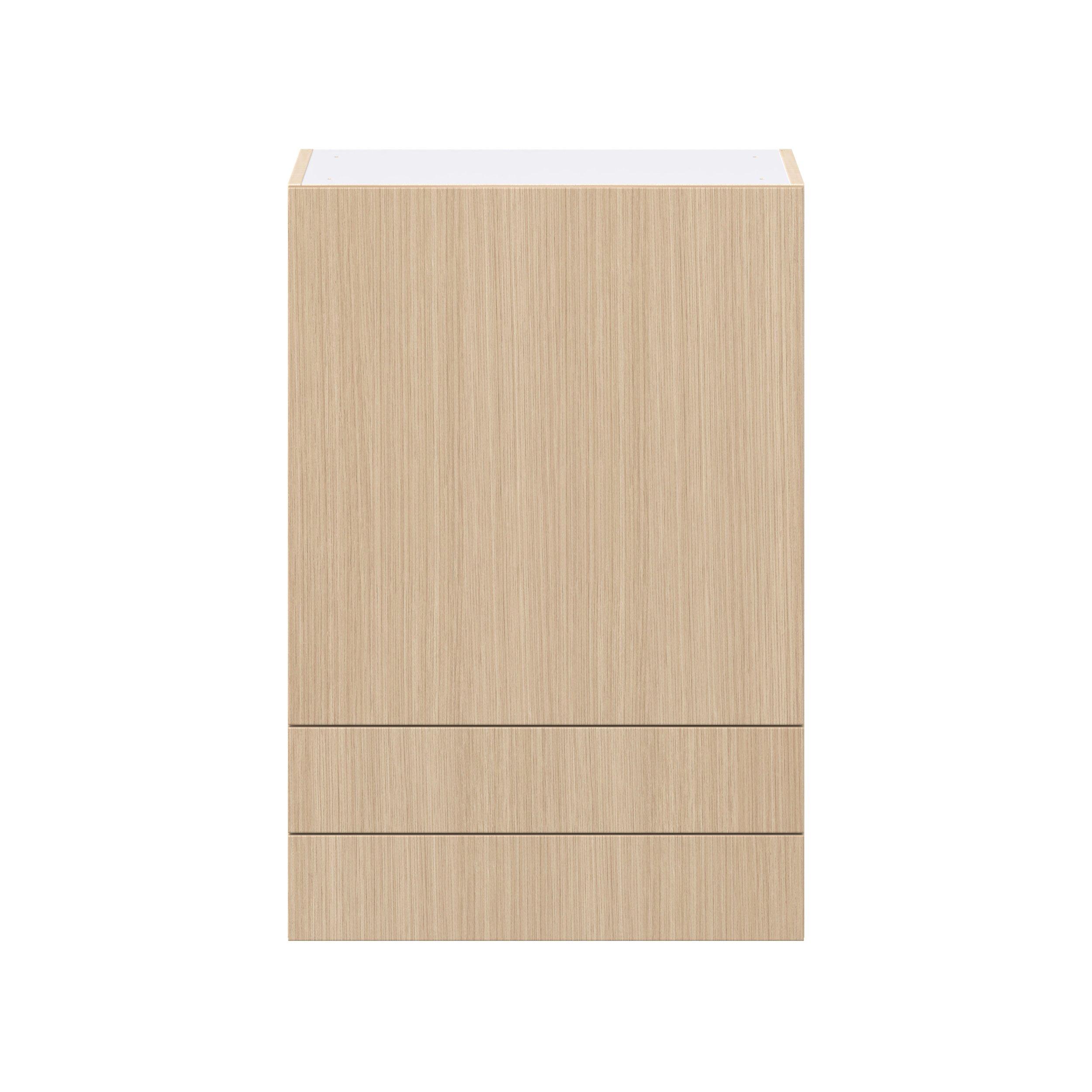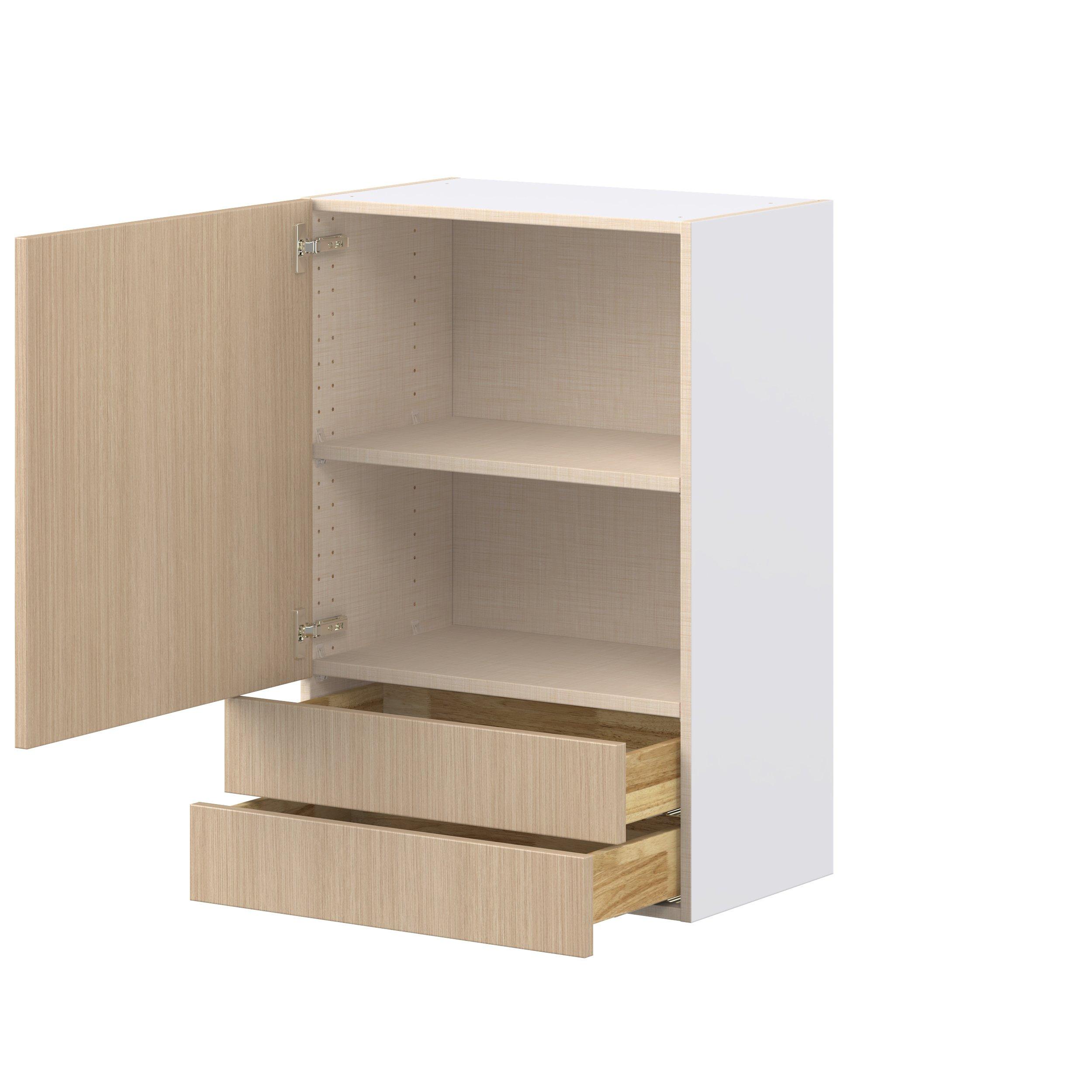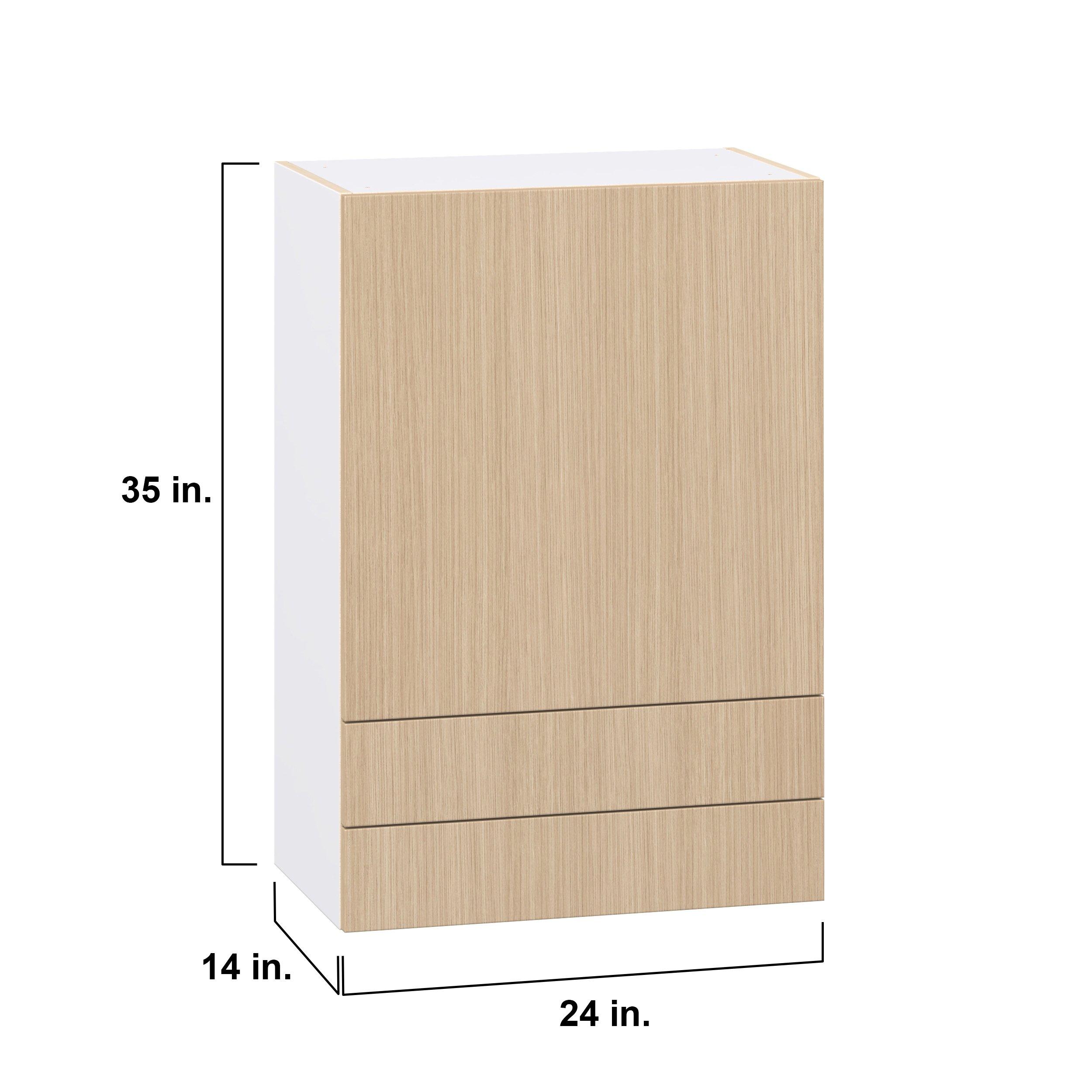Elevate your project with the contemporary charm of Glenwood slab-style cabinets. Available in desert Mojavi oak and rich burnt walnut finishes, this collection captures the warmth and beauty of natural wood with the practicality of textured melamine. Crafted from one-piece MDF Studio Design Collection Glenwood 24 in. Mojavi Oak Door and Drawer Wall Cabinet is designed to resist hairline cracks while the easy-to-clean finish stands up to stains and moisture. Featuring 5-piece doors and dovetail drawer joints, these cabinets offer durability and elegance. This collection combines style with everyday storage solutions.