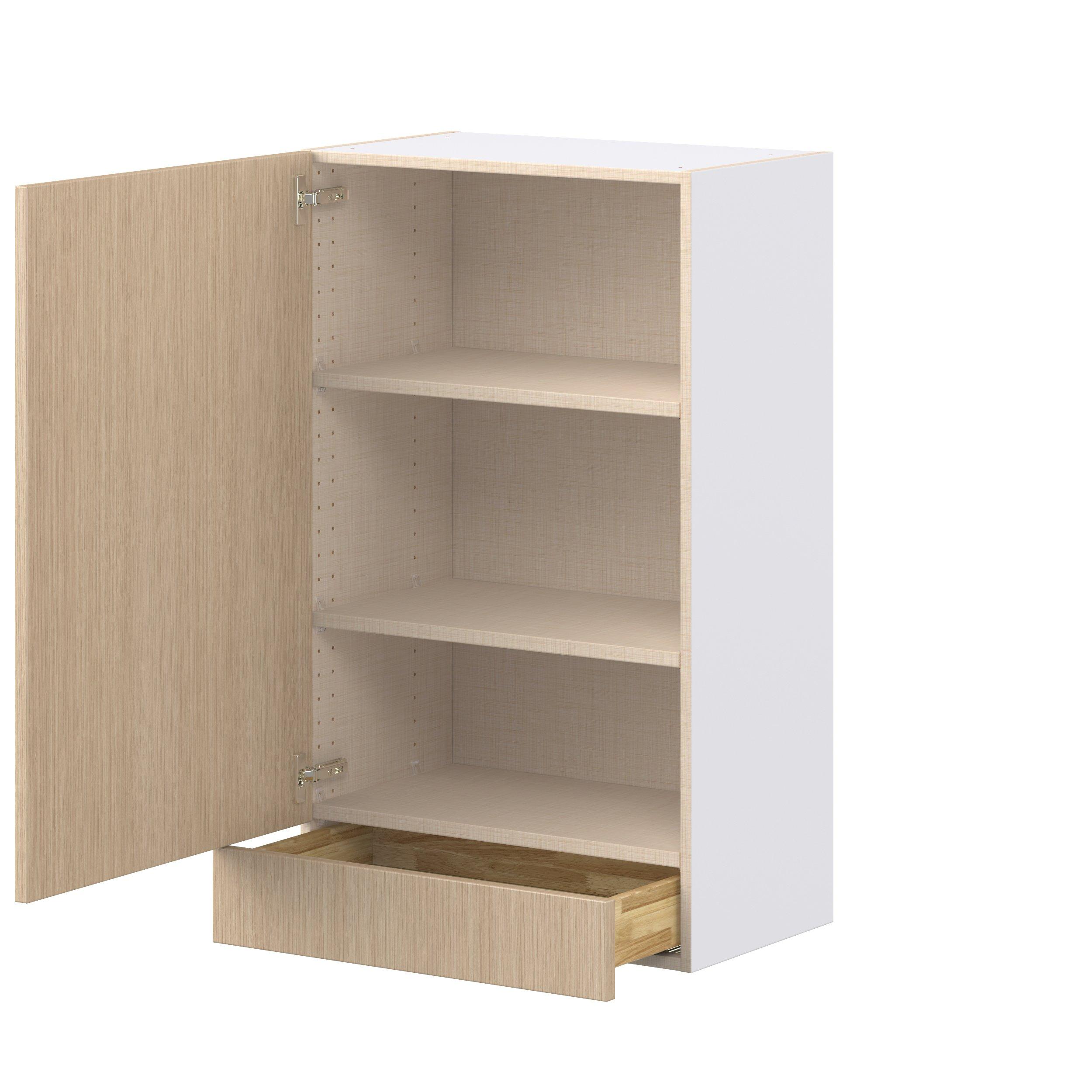 Elevate your project with the contemporary charm of Glenwood slab-style cabinets. Available in desert Mojavi oak and rich burnt walnut finishes, this collection captures the warmth and beauty of natural wood with the practicality of textured melamine. Crafted from one-piece MDF Studio Design Collection Glenwood 24 in. Mojavi Oak Door and Drawer Wall Cabinet is designed to resist hairline cracks while the easy-to-clean finish stands up to stains and moisture. Featuring 5-piece doors and dovetail drawer joints, these cabinets offer durability and elegance. This collection combines style with everyday storage solutions.
