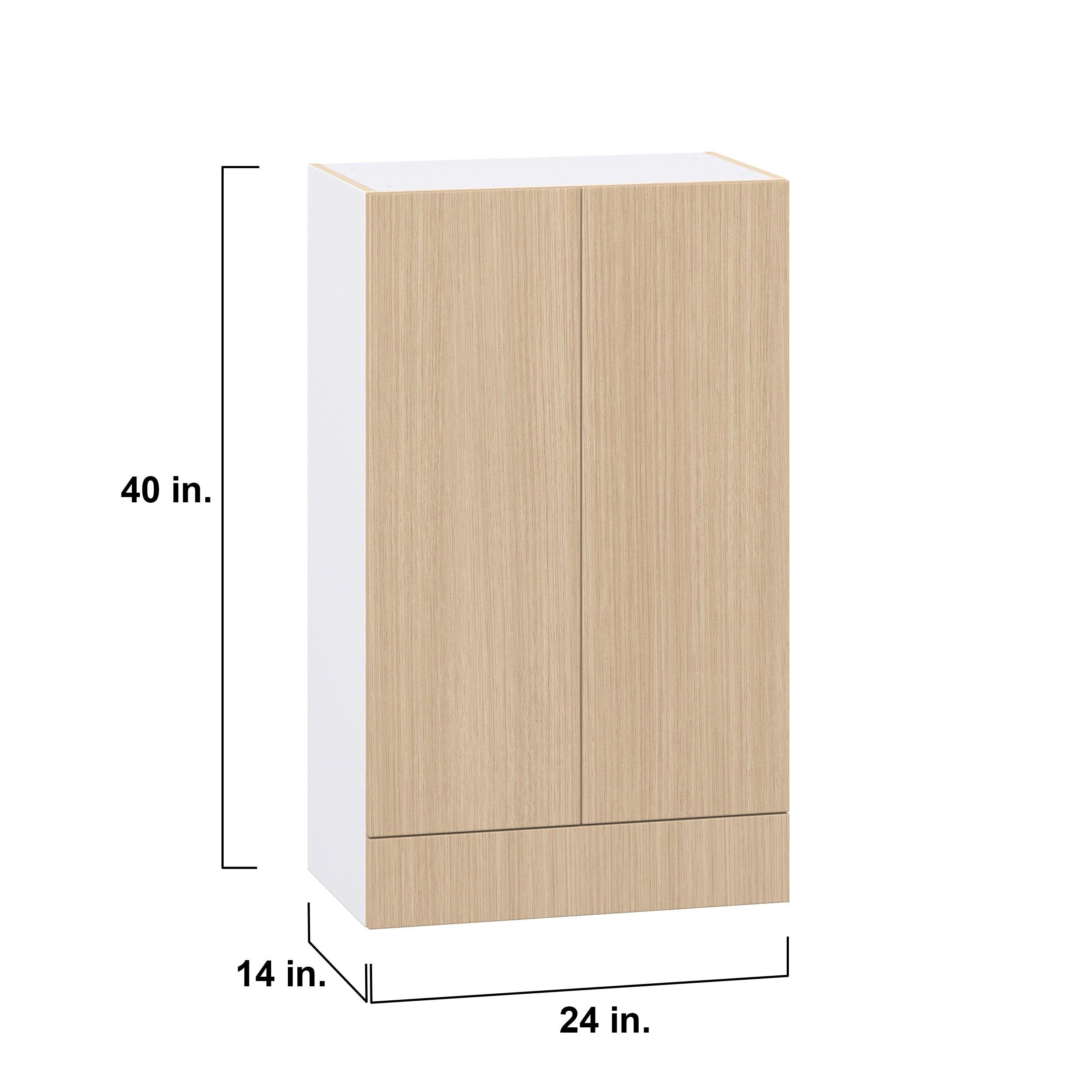 Elevate your project with the contemporary charm of Glenwood slab-style cabinets. Available in desert Mojavi oak and rich burnt walnut finishes, this collection captures the warmth and beauty of natural wood with the practicality of textured melamine. Crafted from one-piece MDF Studio Design Collection Glenwood 24 in. Mojavi Oak Door and Drawer Wall Cabinet is designed to resist hairline cracks while the easy-to-clean finish stands up to stains and moisture. Featuring 5-piece doors and dovetail drawer joints, these cabinets offer durability and elegance. This collection combines style with everyday storage solutions.