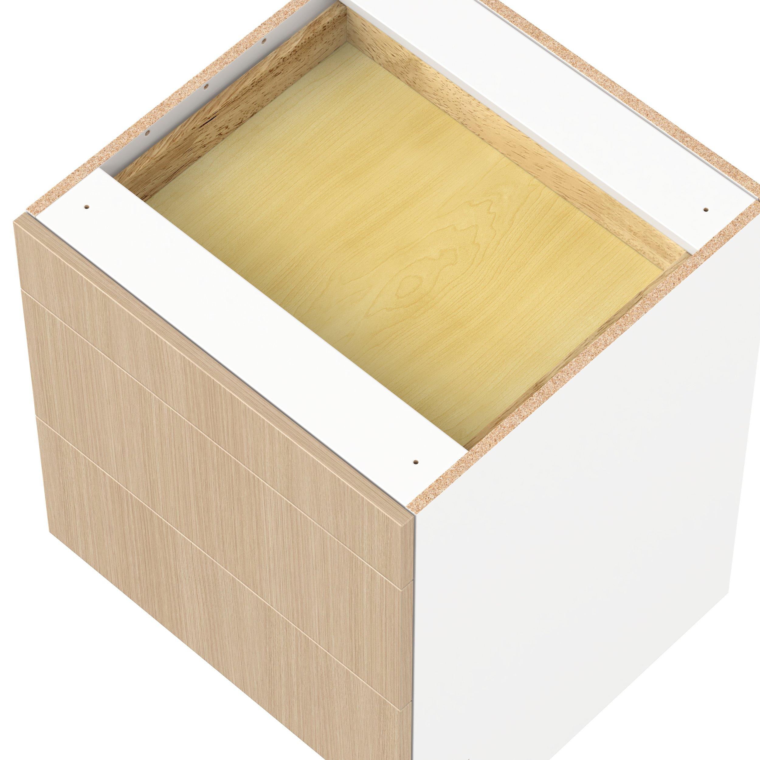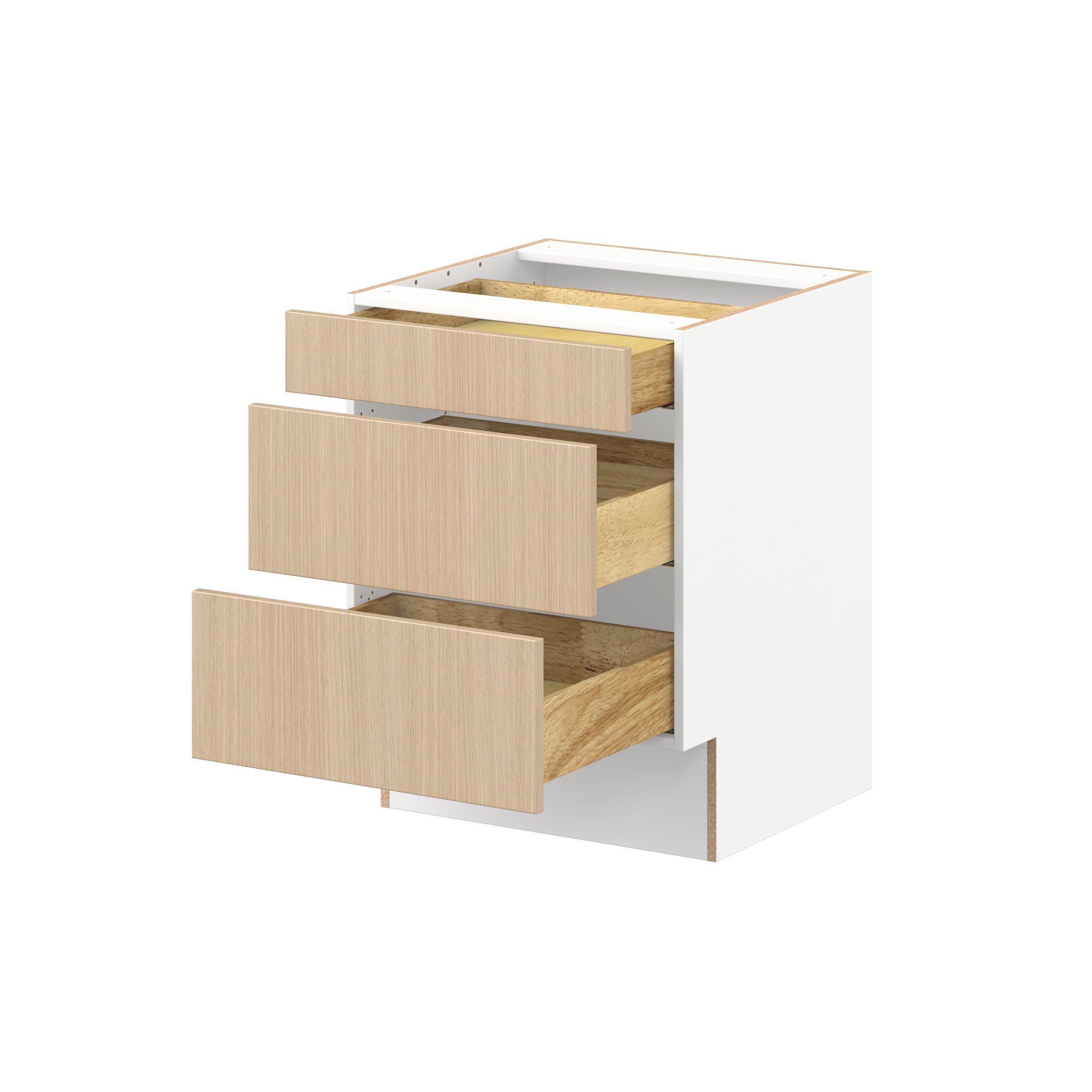 Elevate your project with the contemporary charm of Glenwood slab-style cabinets. Available in desert Mojavi oak and rich burnt walnut finishes, this collection captures the warmth and beauty of natural wood with the practicality of textured melamine. Crafted from one-piece MDF Studio Design Collection Glenwood 24 in. Mojavi Oak Drawer Base Cabinet - ADA is designed to resist hairline cracks while the easy-to-clean finish stands up to stains and moisture. Featuring 5-piece doors and dovetail drawer joints, these cabinets offer durability and elegance. This collection combines style with everyday storage solutions.