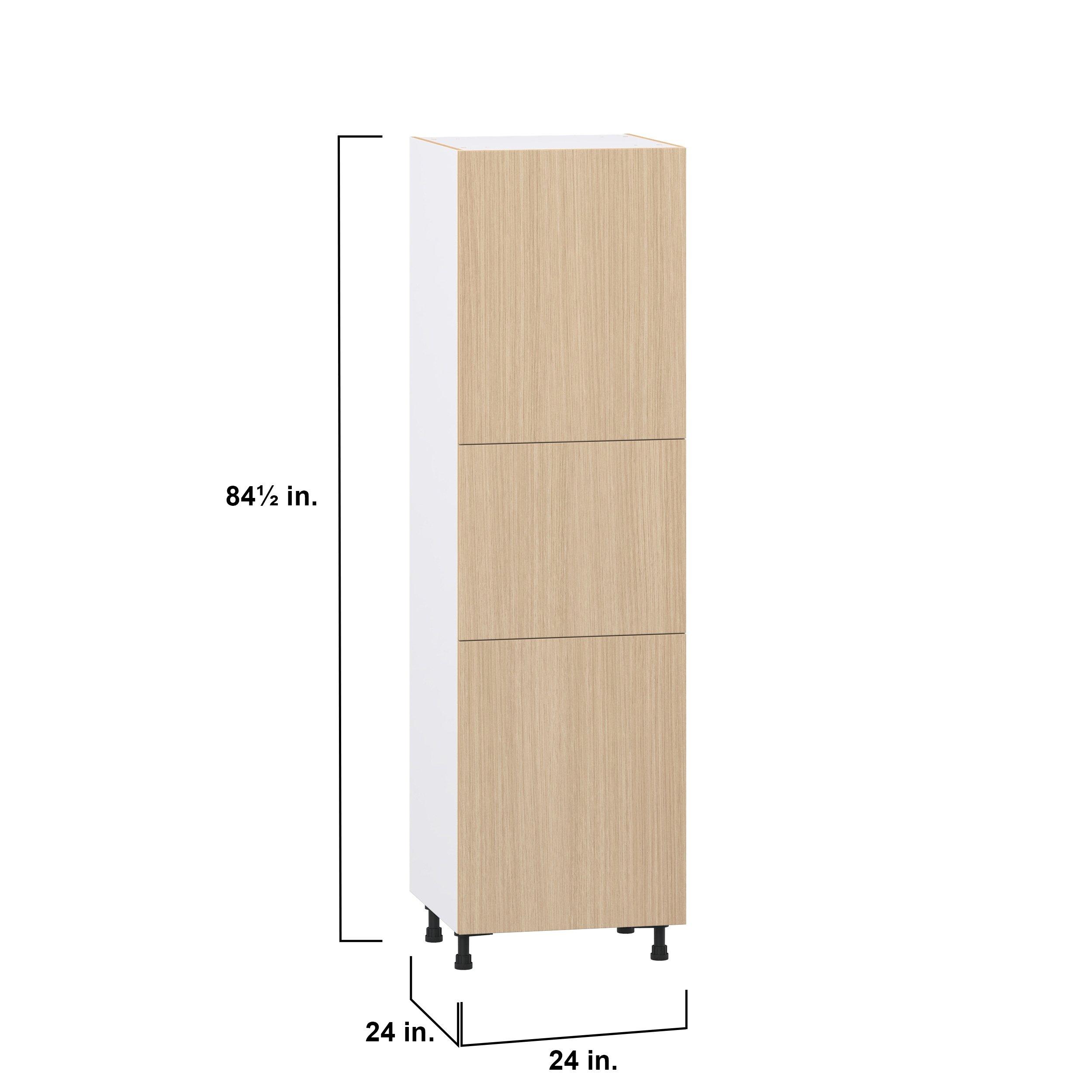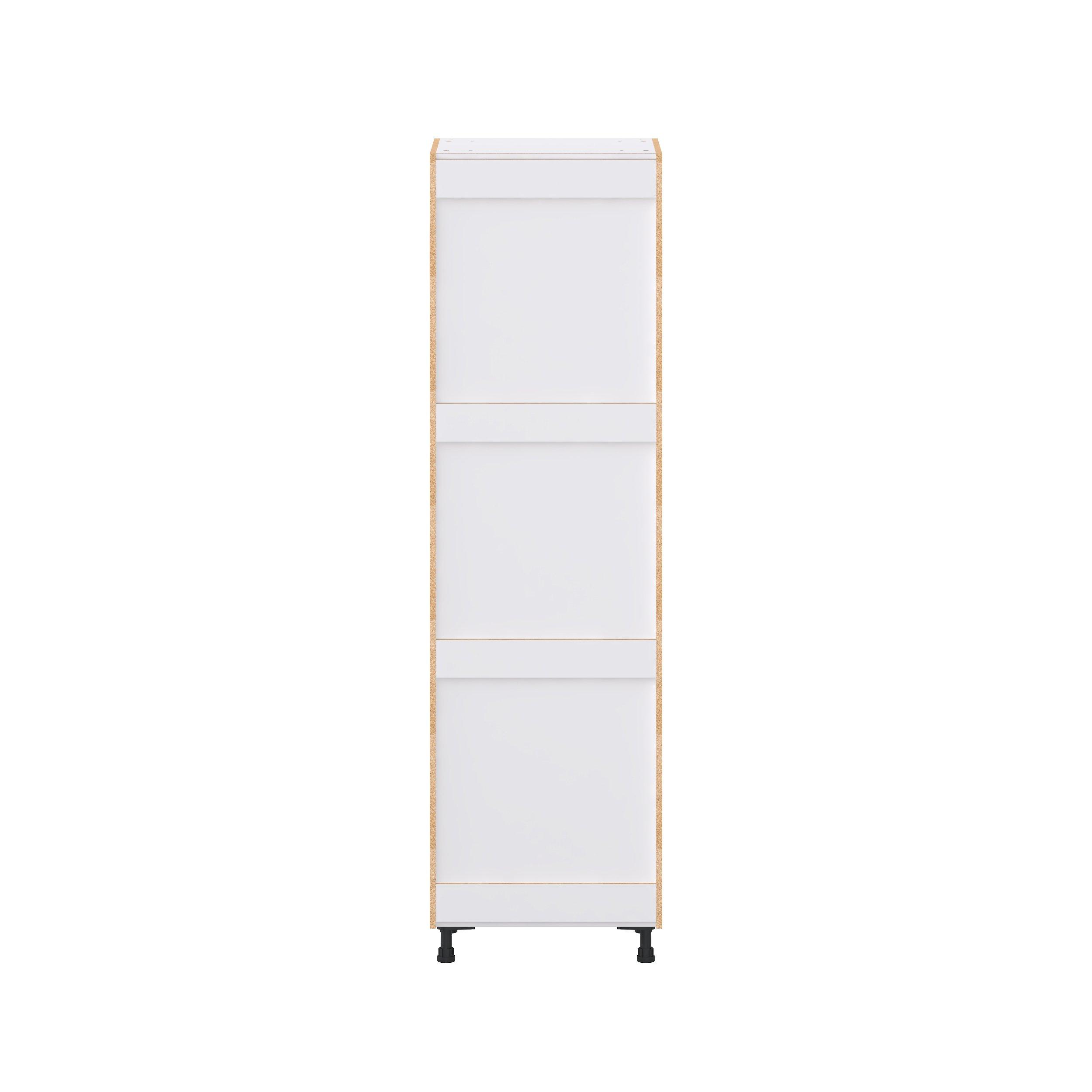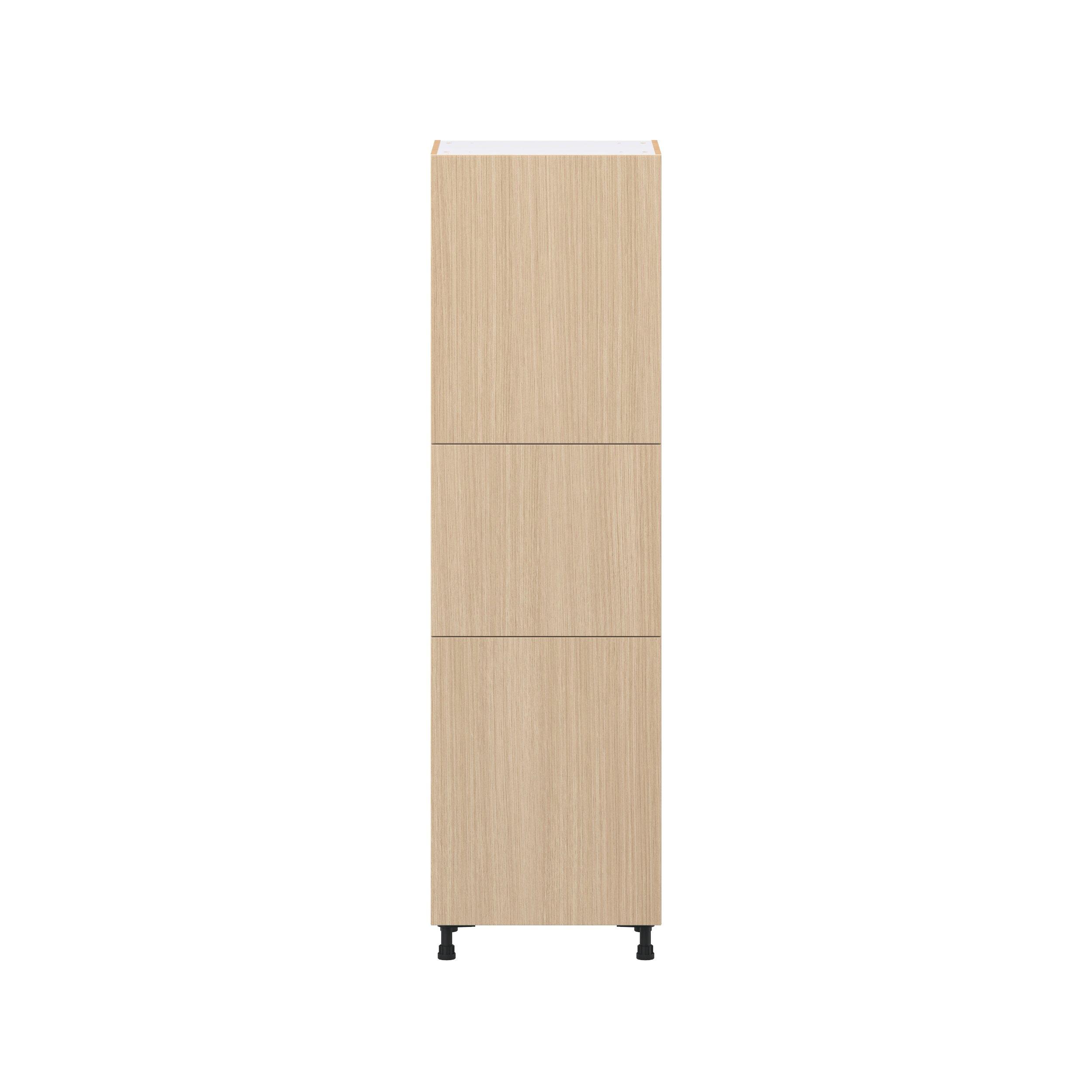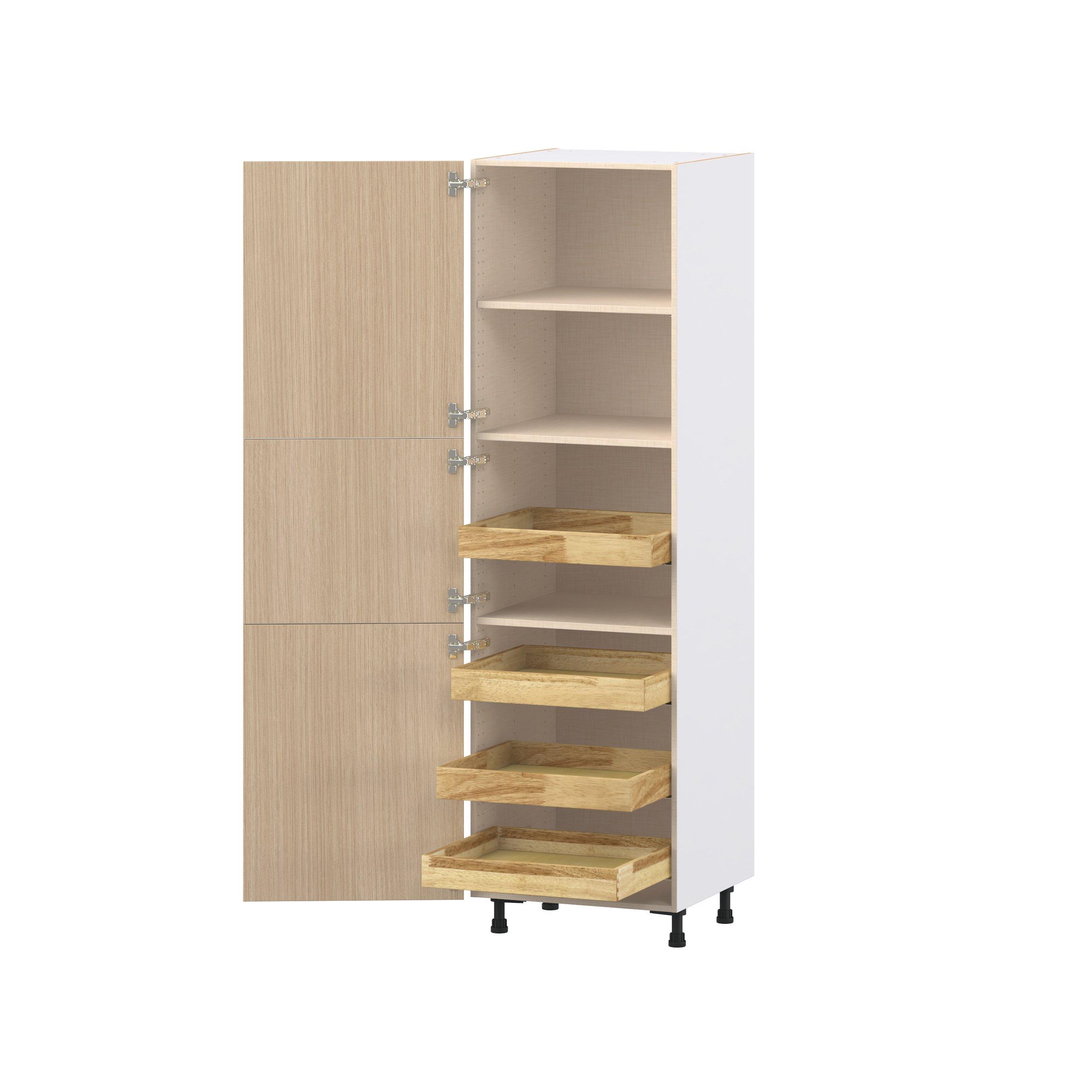 Elevate your project with the contemporary charm of Glenwood slab-style cabinets. Available in desert Mojavi oak and rich burnt walnut finishes, this collection captures the warmth and beauty of natural wood with the practicality of textured melamine. Crafted from one-piece MDF Studio Design Collection Glenwood 24 in. Mojavi Oak Pantry Cabinet with Inner Pull-Out Drawer is designed to resist hairline cracks while the easy-to-clean finish stands up to stains and moisture. Featuring 5-piece doors and dovetail drawer joints, these cabinets offer durability and elegance. This collection combines style with everyday storage solutions.