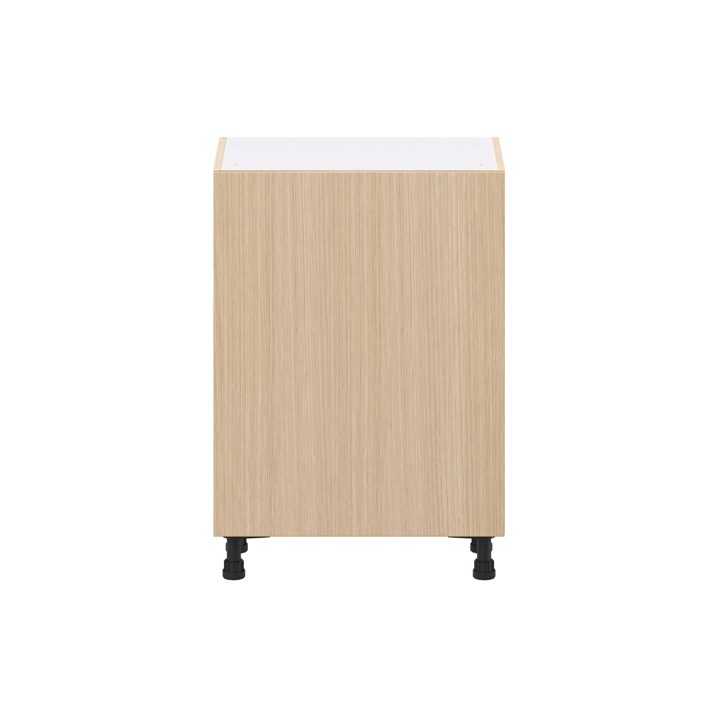 Elevate your project with the contemporary charm of Glenwood slab-style cabinets. Available in desert Mojavi oak and rich burnt walnut finishes, this collection captures the warmth and beauty of natural wood with the practicality of textured melamine. Crafted from one-piece MDF Studio Design Collection Glenwood 24 in. Mojavi Oak Shallow Base Cabinet is designed to resist hairline cracks while the easy-to-clean finish stands up to stains and moisture. Featuring 5-piece doors and dovetail drawer joints, these cabinets offer durability and elegance. This collection combines style with everyday storage solutions.