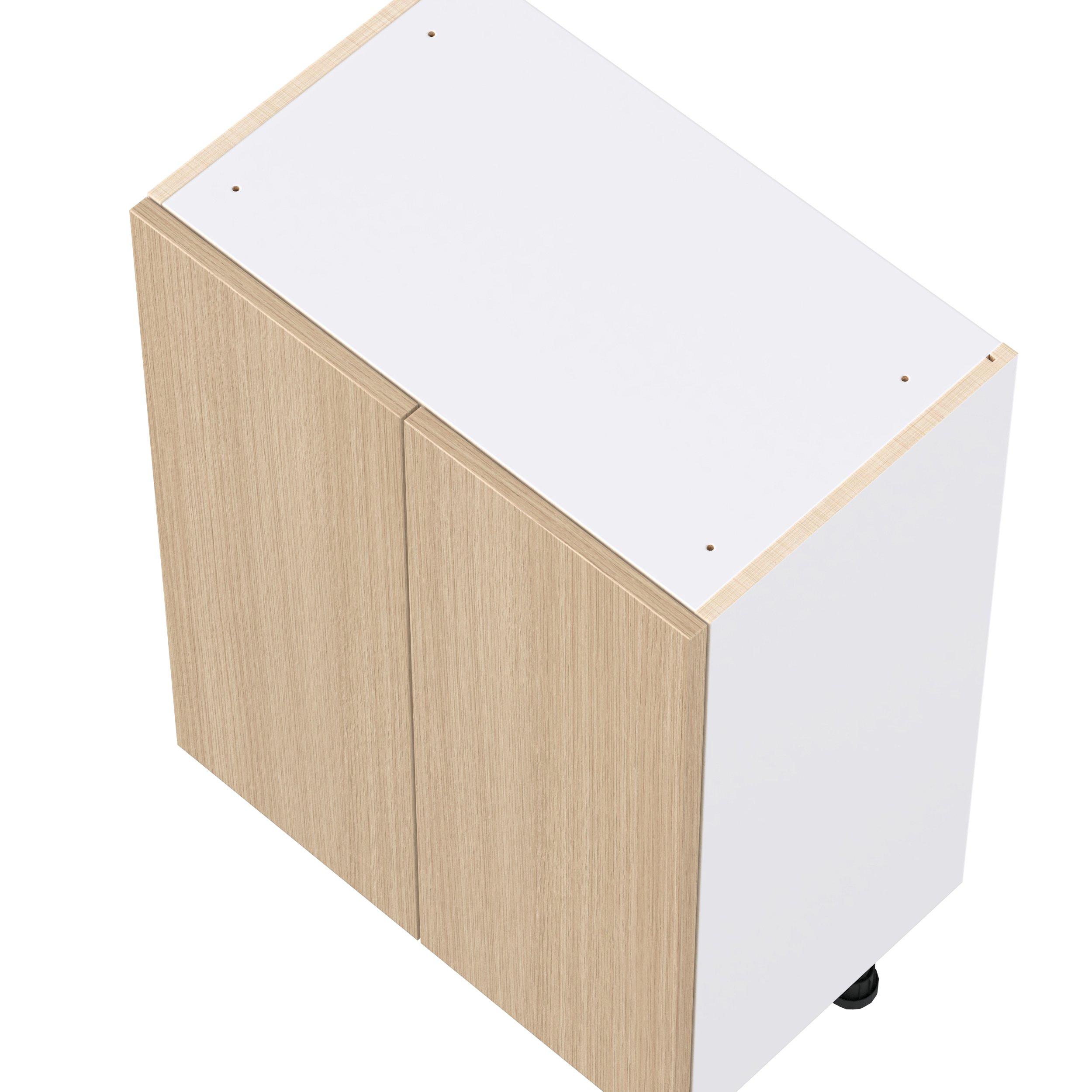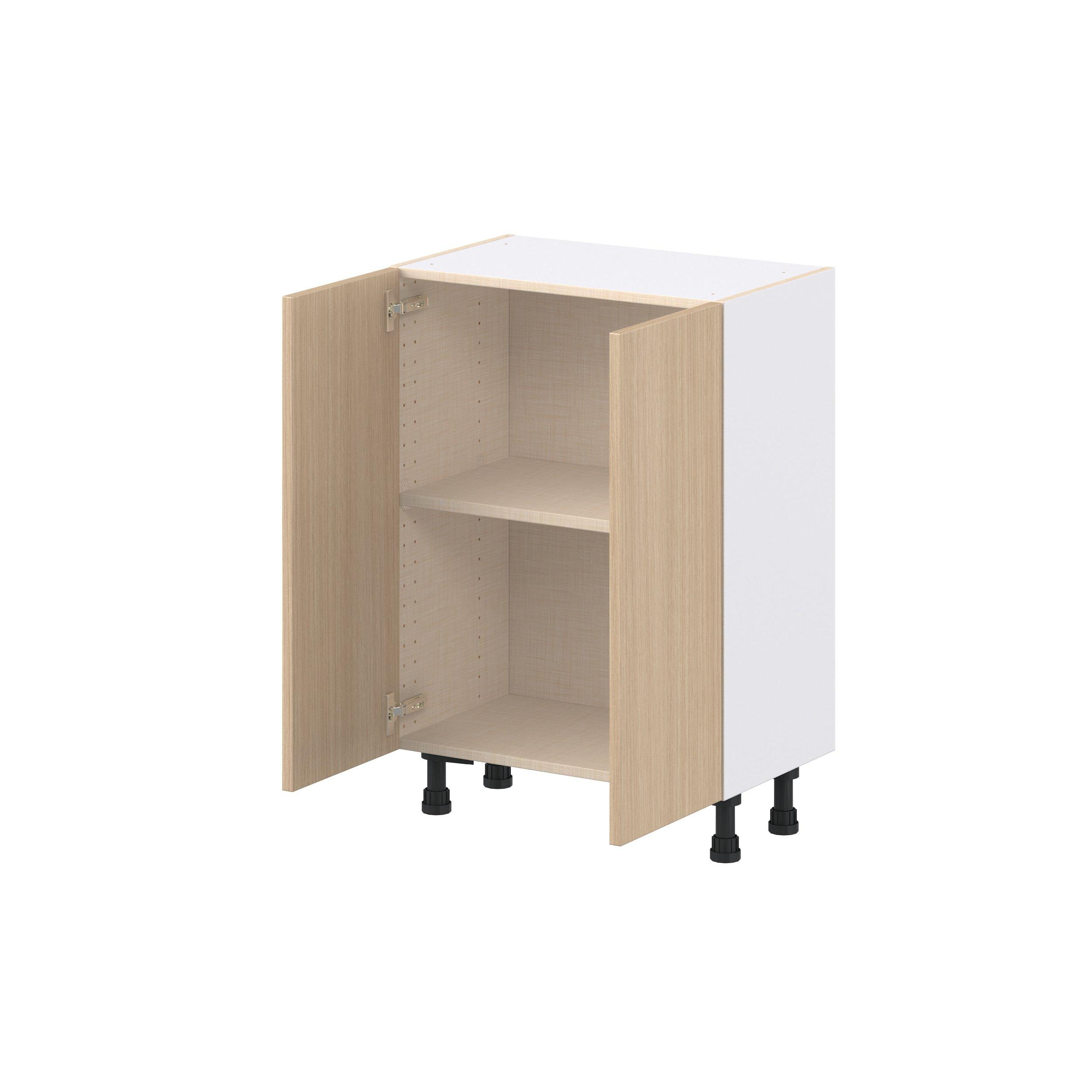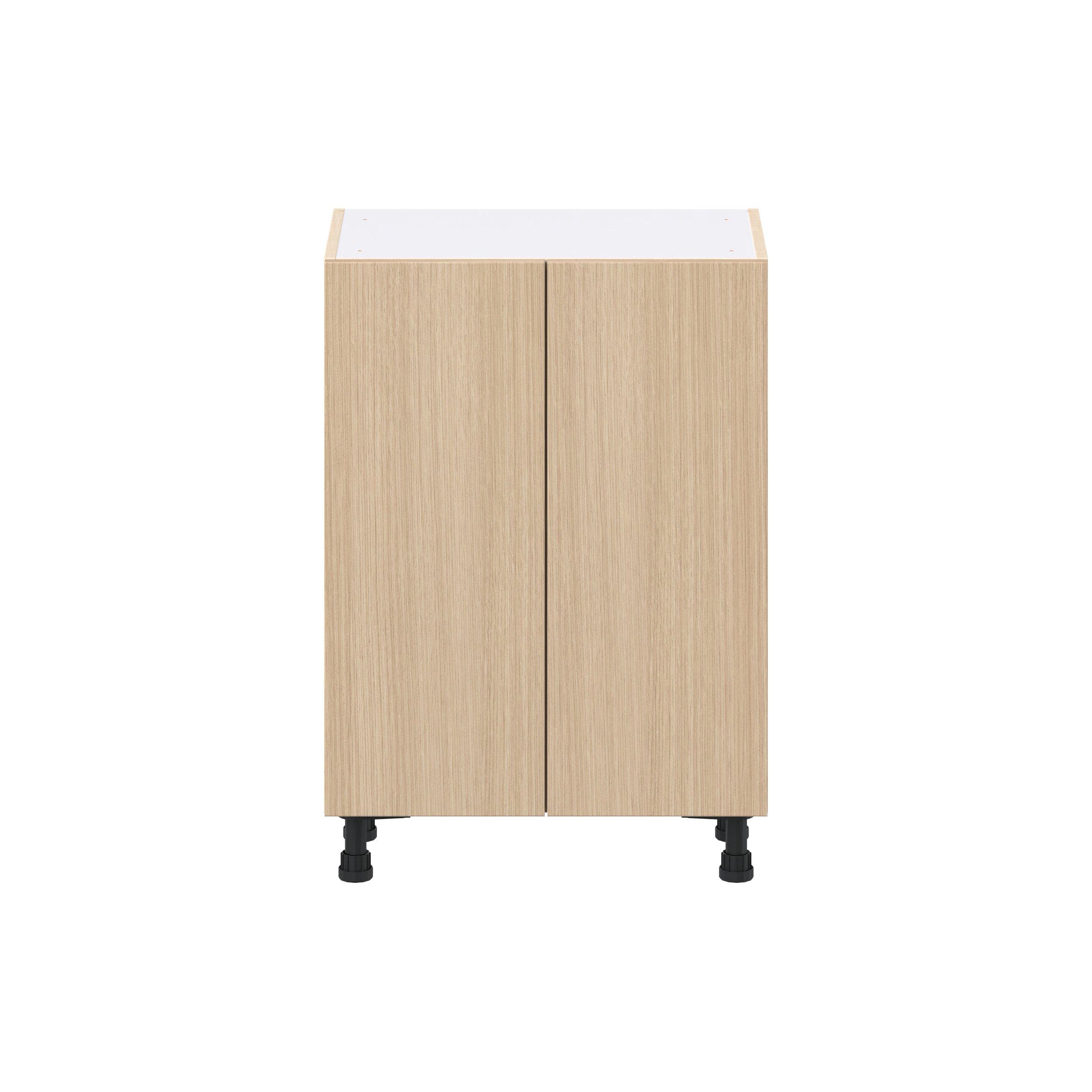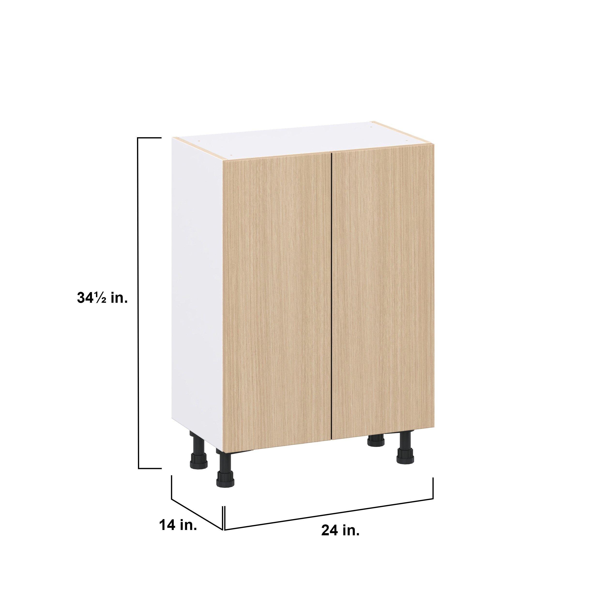 Elevate your project with the contemporary charm of Glenwood slab-style cabinets. Available in desert Mojavi oak and rich burnt walnut finishes, this collection captures the warmth and beauty of natural wood with the practicality of textured melamine. Crafted from one-piece MDF Studio Design Collection Glenwood 24 in. Mojavi Oak Shallow Base Cabinet is designed to resist hairline cracks while the easy-to-clean finish stands up to stains and moisture. Featuring 5-piece doors and dovetail drawer joints, these cabinets offer durability and elegance. This collection combines style with everyday storage solutions.