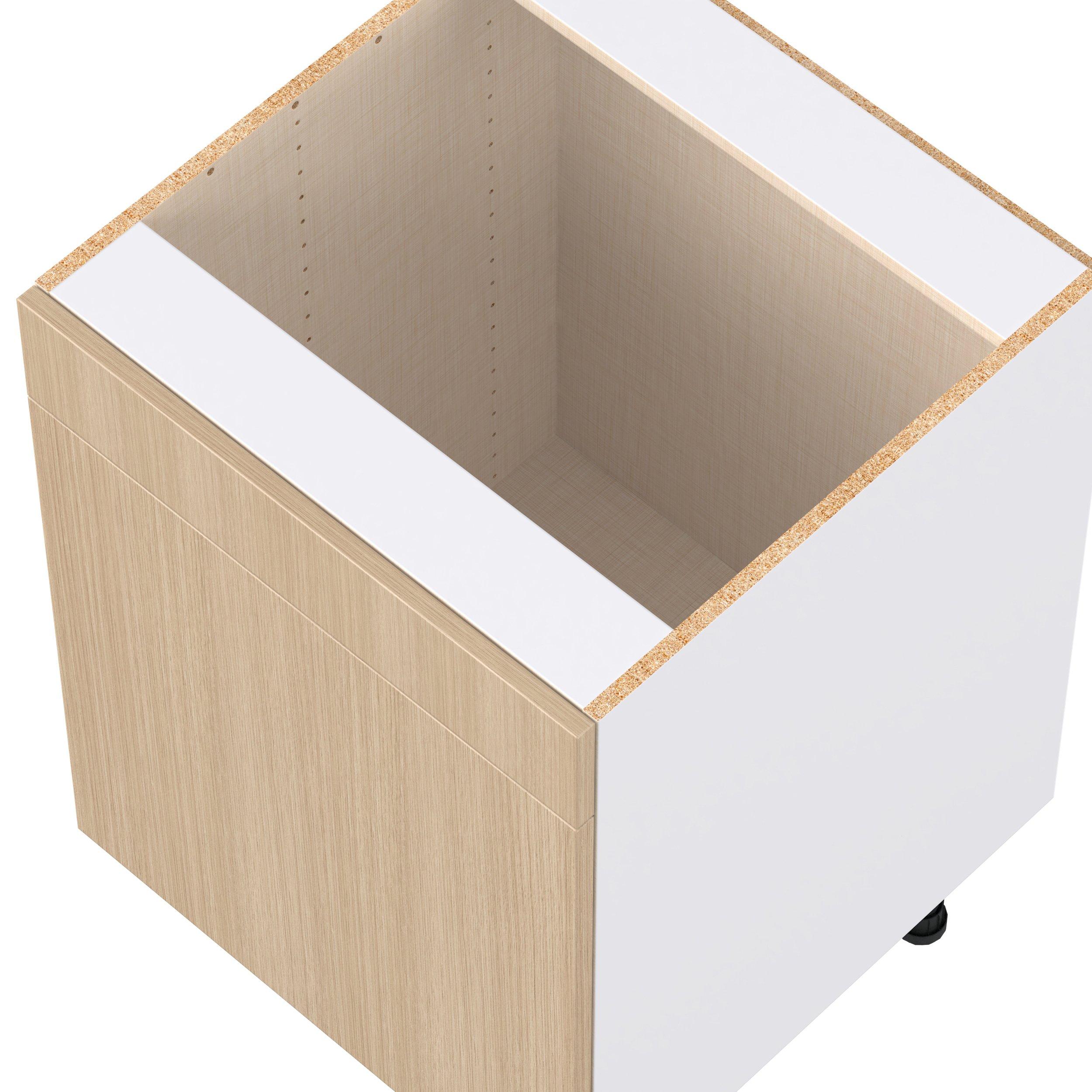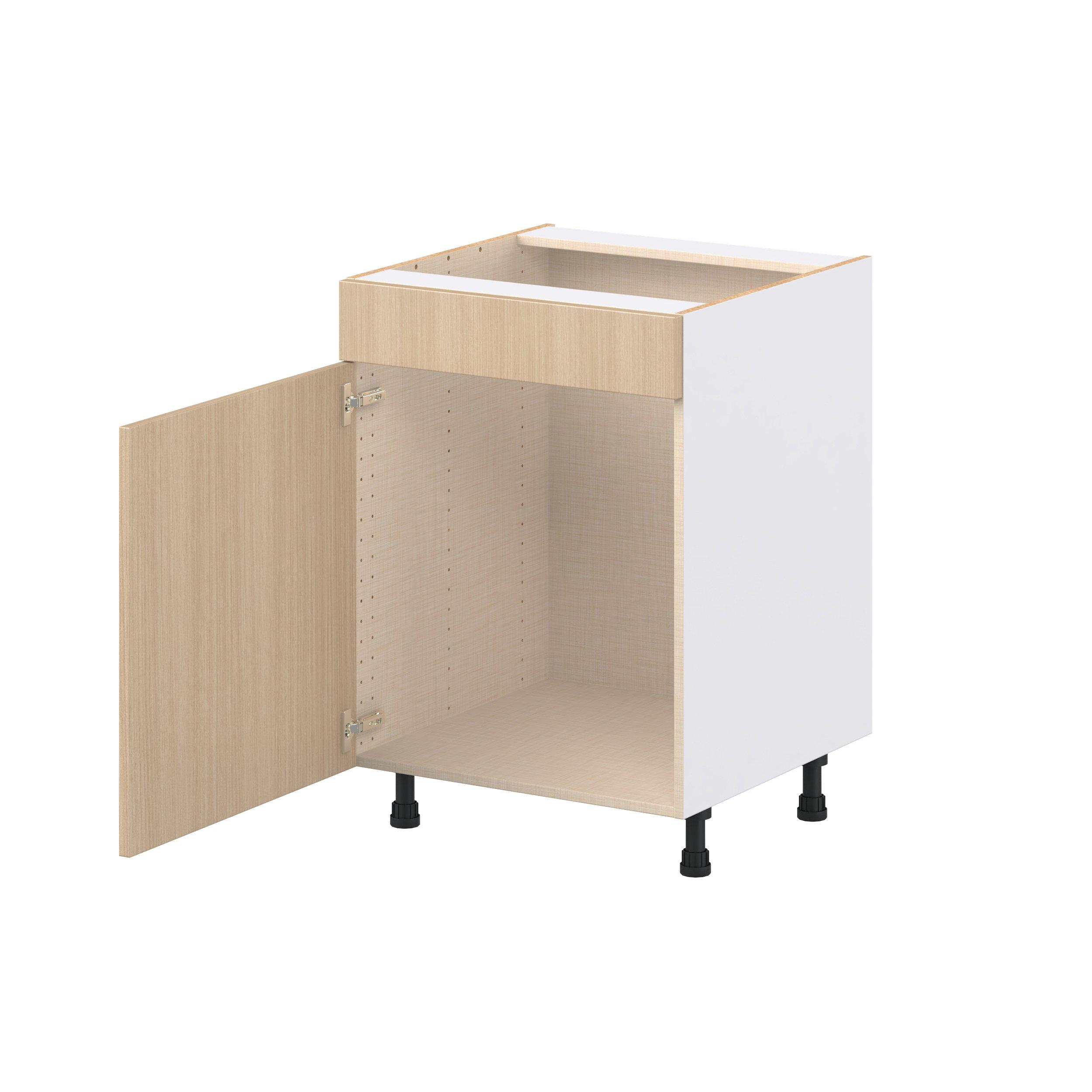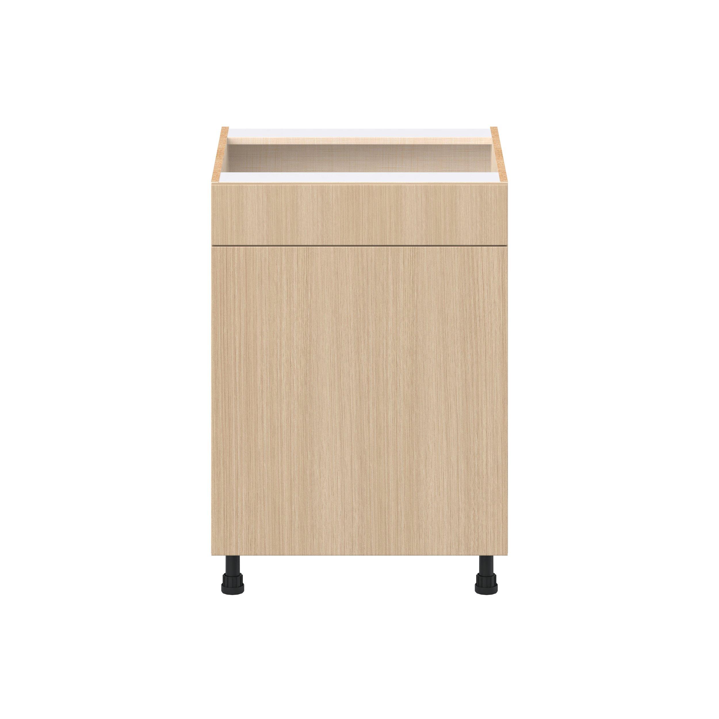 Elevate your project with the contemporary charm of Glenwood slab-style cabinets. Available in desert Mojavi oak and rich burnt walnut finishes, this collection captures the warmth and beauty of natural wood with the practicality of textured melamine. Crafted from one-piece MDF Studio Design Collection Glenwood 24 in. Mojavi Oak Sink Base Cabinet with False Front is designed to resist hairline cracks while the easy-to-clean finish stands up to stains and moisture. Featuring 5-piece doors and dovetail drawer joints, these cabinets offer durability and elegance. This collection combines style with everyday storage solutions.