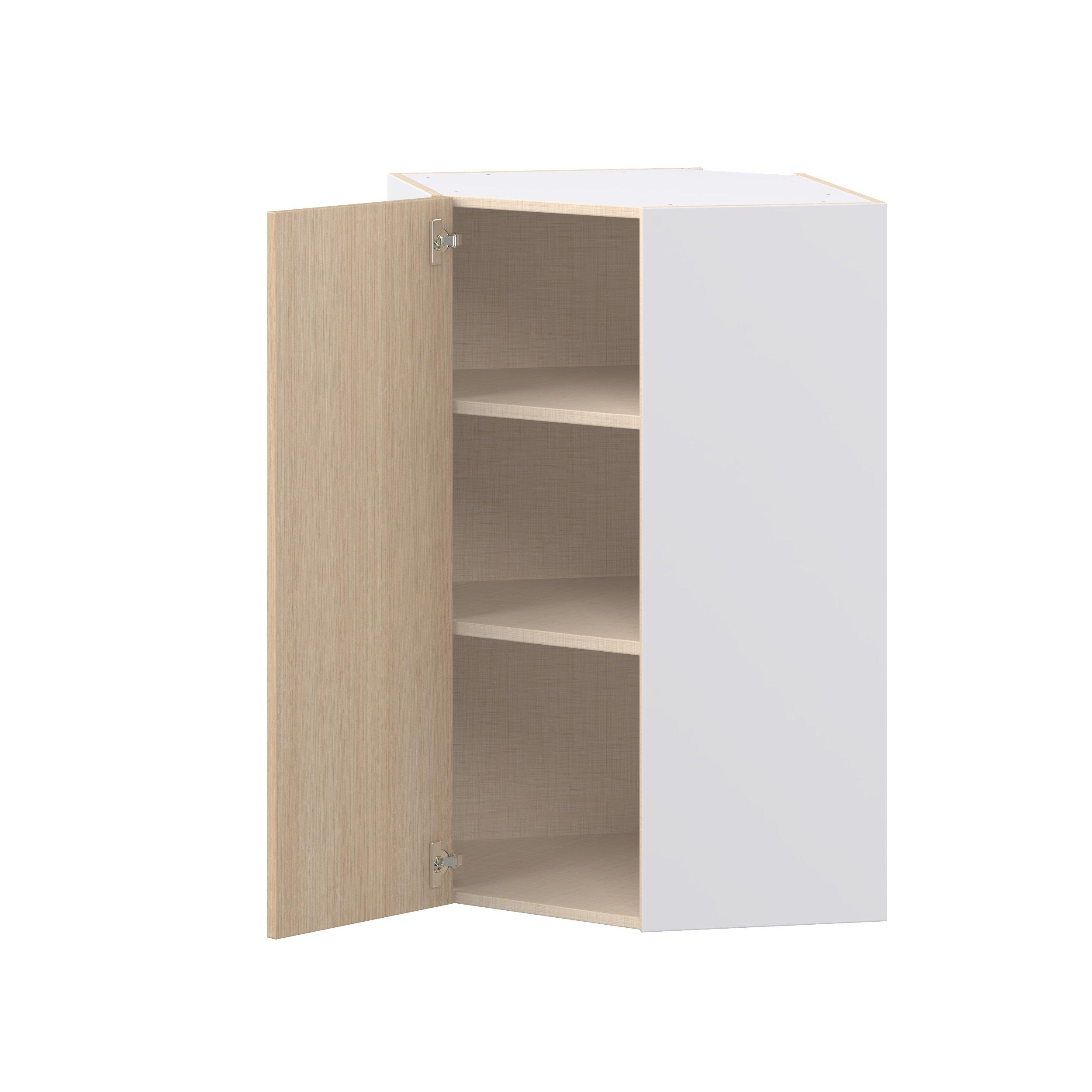Elevate your project with the contemporary charm of Glenwood slab-style cabinets. Available in desert Mojavi oak and rich burnt walnut finishes, this collection captures the warmth and beauty of natural wood with the practicality of textured melamine. Crafted from one-piece MDF Studio Design Collection Glenwood 24 in. Mojavi Oak Wall Angle Corner Cabinet is designed to resist hairline cracks while the easy-to-clean finish stands up to stains and moisture. Featuring 5-piece doors and dovetail drawer joints, these cabinets offer durability and elegance. This collection combines style with everyday storage solutions.
