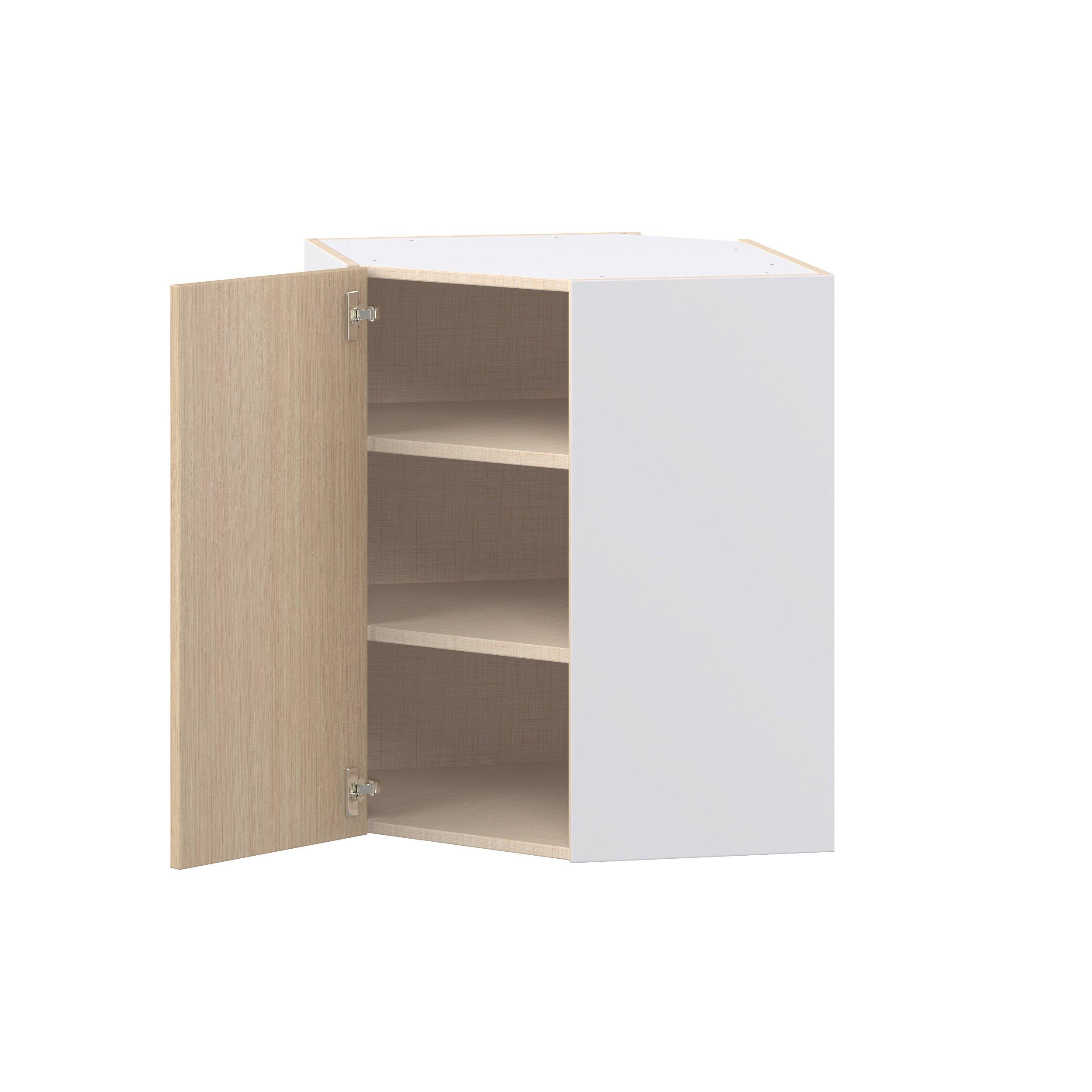 Elevate your project with the contemporary charm of Glenwood slab-style cabinets. Available in desert Mojavi oak and rich burnt walnut finishes, this collection captures the warmth and beauty of natural wood with the practicality of textured melamine. Crafted from one-piece MDF Studio Design Collection Glenwood 24 in. Mojavi Oak Wall Angle Corner Cabinet is designed to resist hairline cracks while the easy-to-clean finish stands up to stains and moisture. Featuring 5-piece doors and dovetail drawer joints, these cabinets offer durability and elegance. This collection combines style with everyday storage solutions.