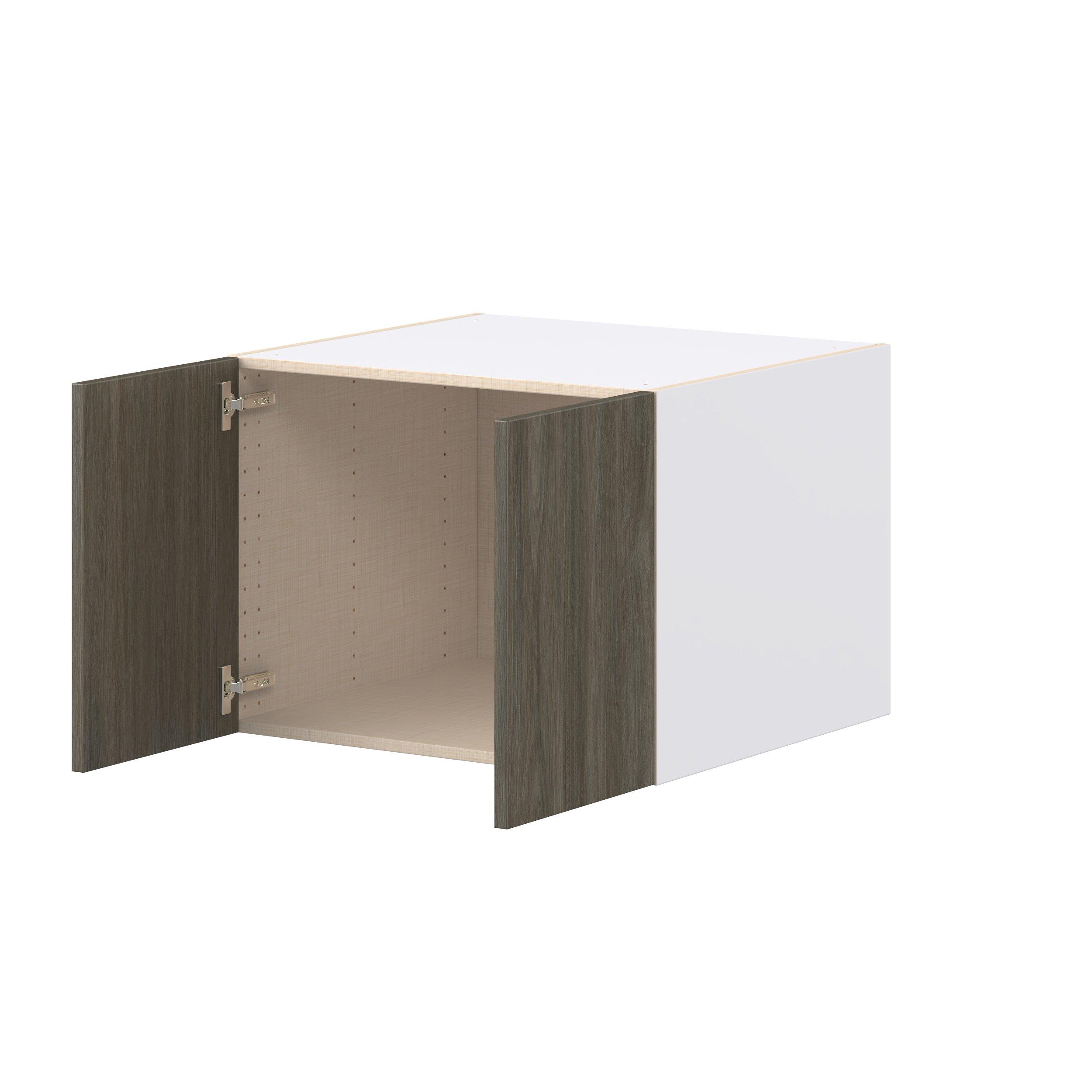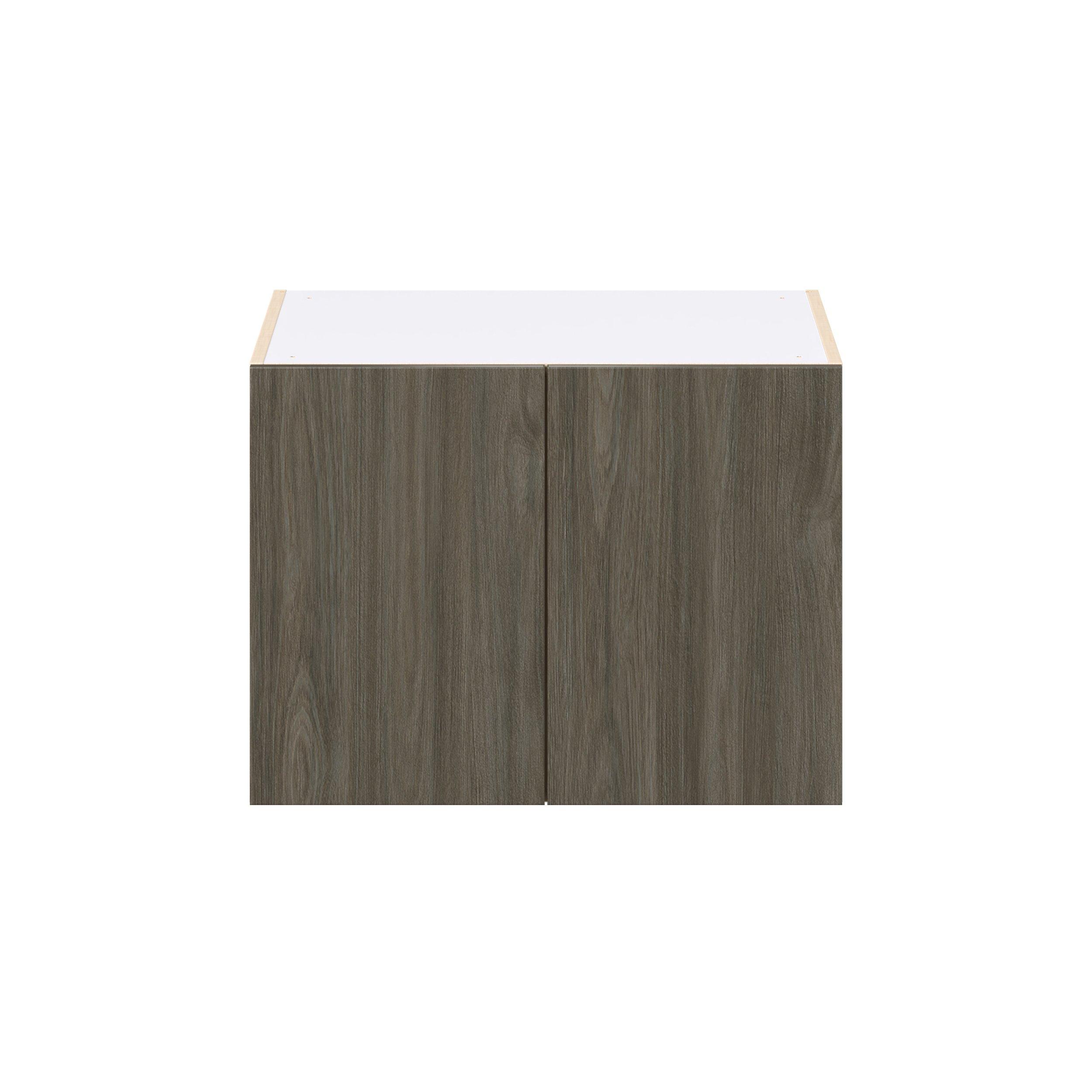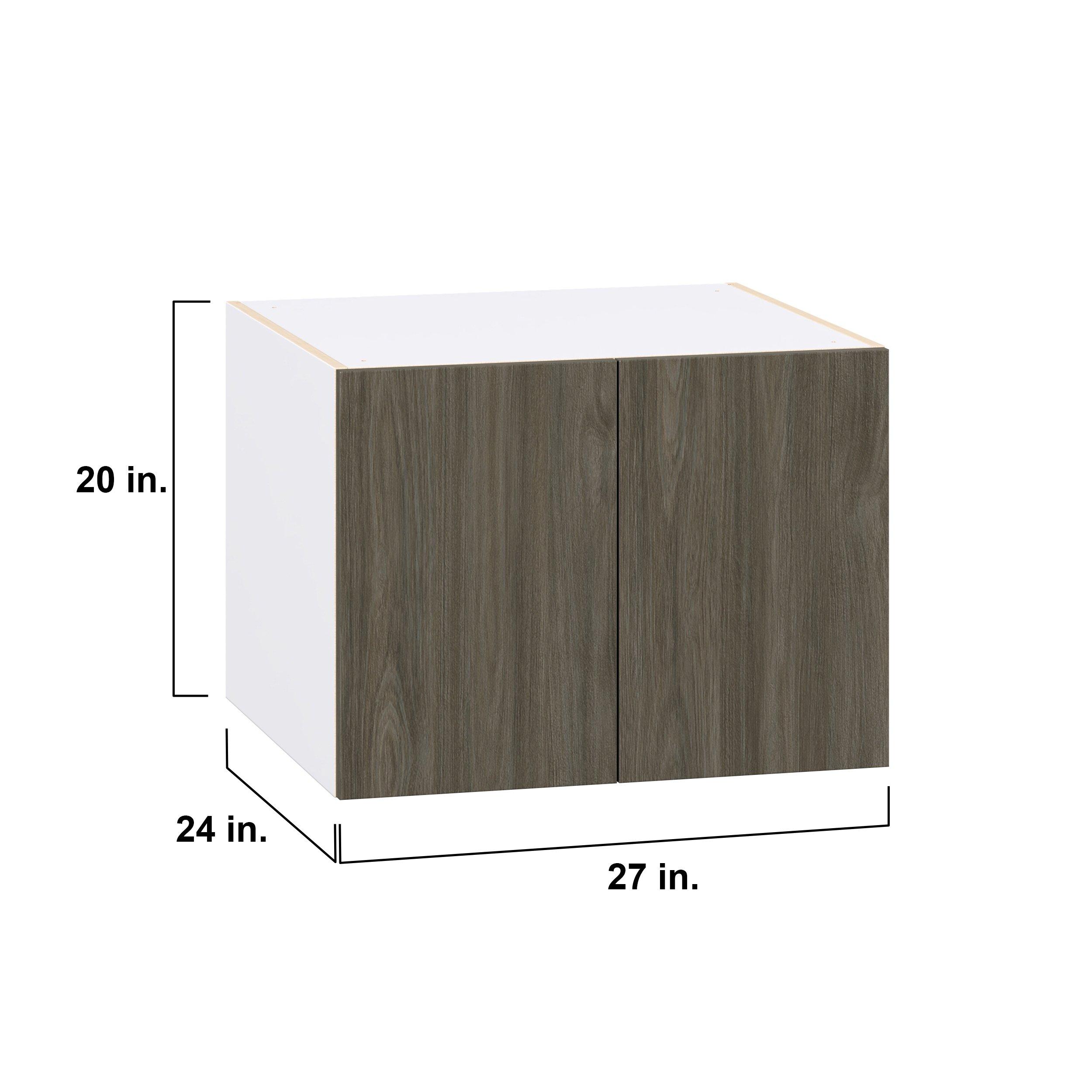 Elevate your project with the contemporary charm of Glenwood slab-style cabinets. Available in desert Mojavi oak and rich burnt walnut finishes, this collection captures the warmth and beauty of natural wood with the practicality of textured melamine. Crafted from one-piece MDF Studio Design Collection Glenwood 27 in. Burnt Walnut Bridge Wall Cabinet is designed to resist hairline cracks while the easy-to-clean finish stands up to stains and moisture. Featuring 5-piece doors and dovetail drawer joints, these cabinets offer durability and elegance. This collection combines style with everyday storage solutions.