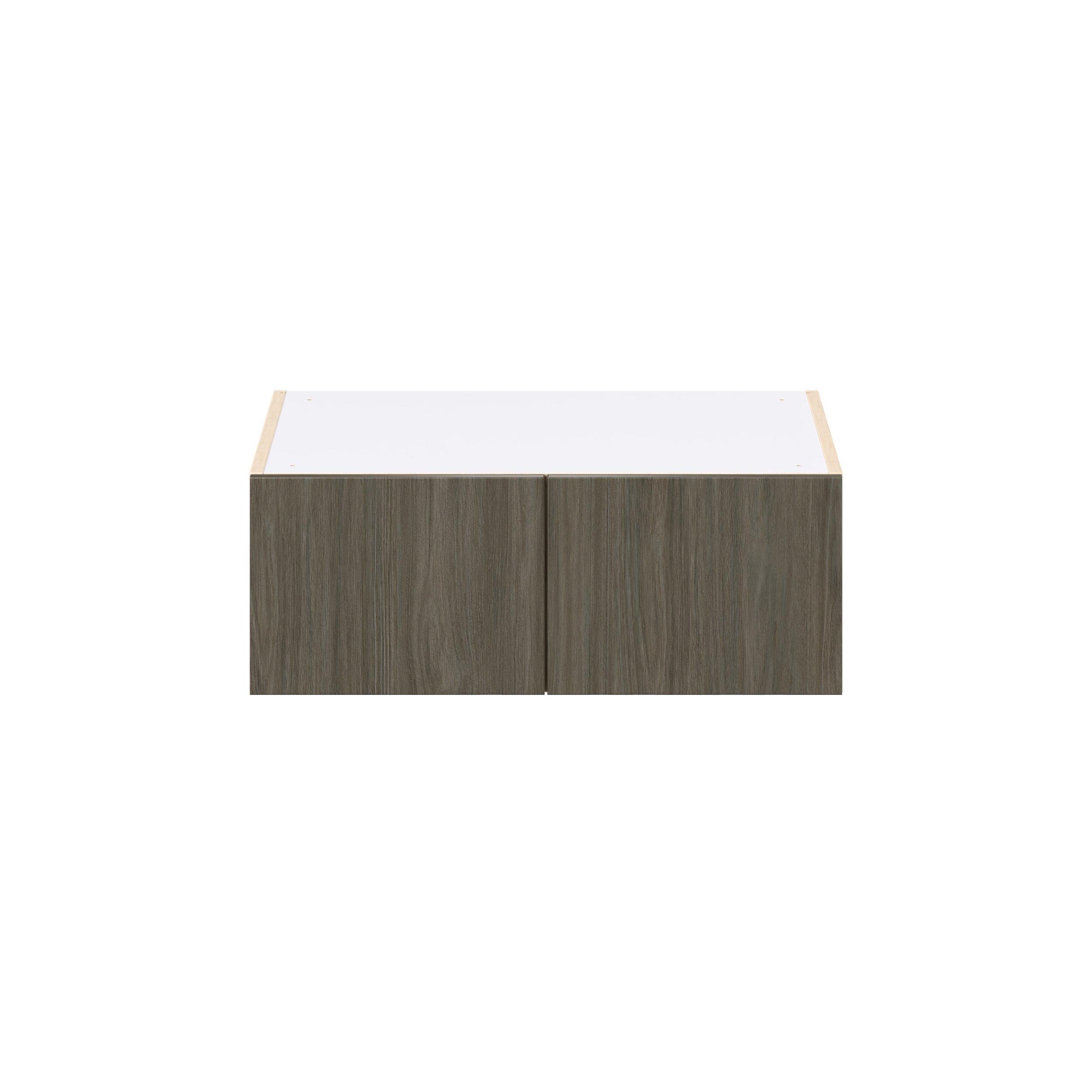 Elevate your project with the contemporary charm of Glenwood slab-style cabinets. Available in desert Mojavi oak and rich burnt walnut finishes, this collection captures the warmth and beauty of natural wood with the practicality of textured melamine. Crafted from one-piece MDF Studio Design Collection Glenwood 27 in. Burnt Walnut Bridge Wall Cabinet is designed to resist hairline cracks while the easy-to-clean finish stands up to stains and moisture. Featuring 5-piece doors and dovetail drawer joints, these cabinets offer durability and elegance. This collection combines style with everyday storage solutions.