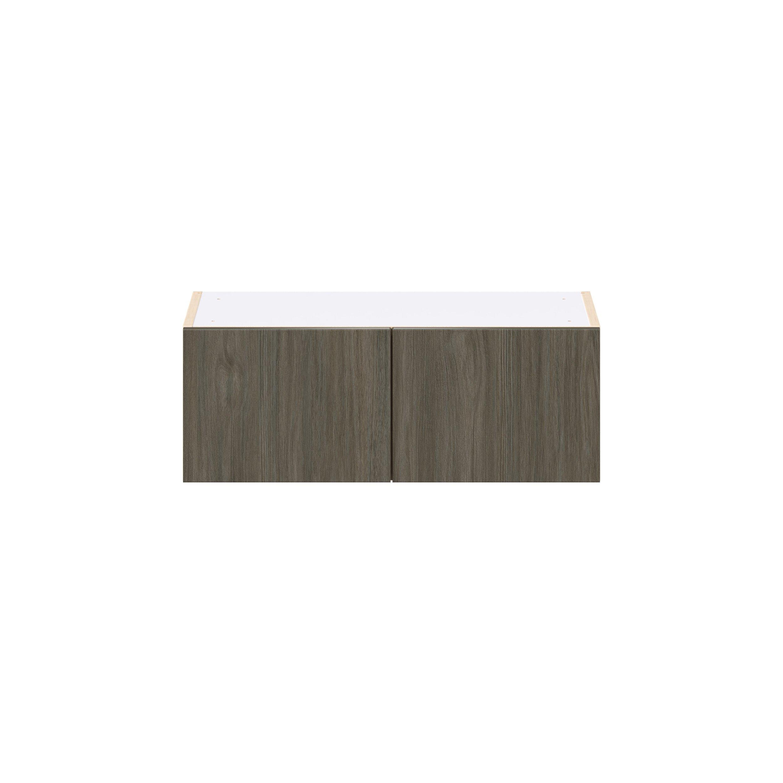 Elevate your project with the contemporary charm of Glenwood slab-style cabinets. Available in desert Mojavi oak and rich burnt walnut finishes, this collection captures the warmth and beauty of natural wood with the practicality of textured melamine. Crafted from one-piece MDF Studio Design Collection Glenwood 27 in. Burnt Walnut Bridge Wall Cabinet is designed to resist hairline cracks while the easy-to-clean finish stands up to stains and moisture. Featuring 5-piece doors and dovetail drawer joints, these cabinets offer durability and elegance. This collection combines style with everyday storage solutions.