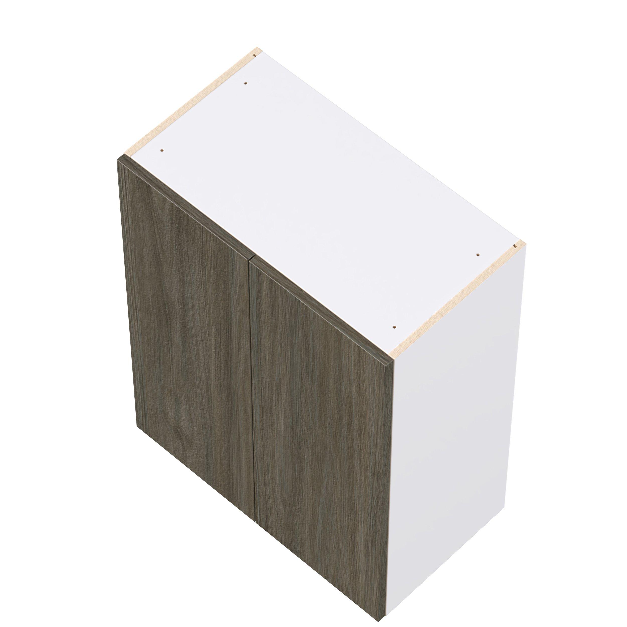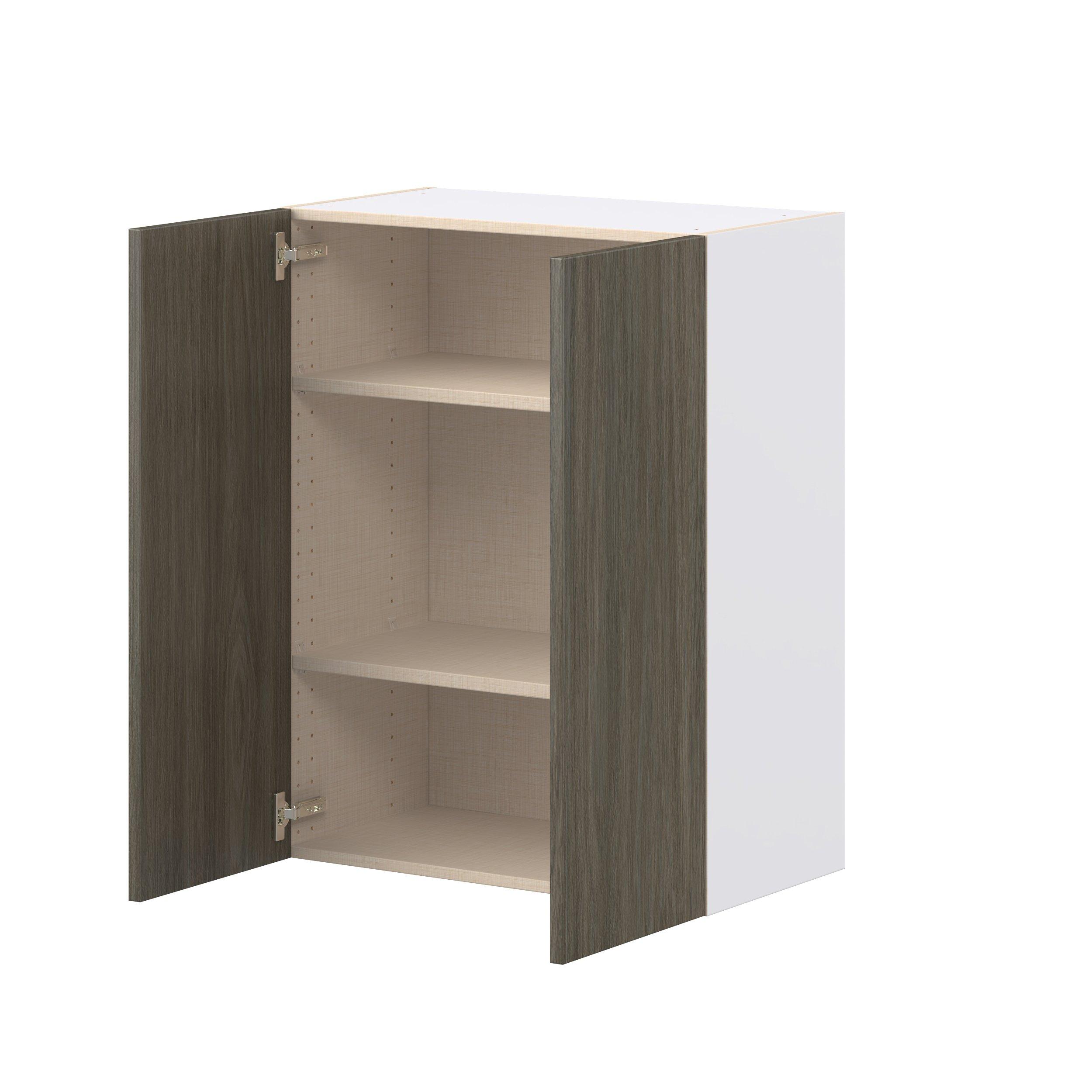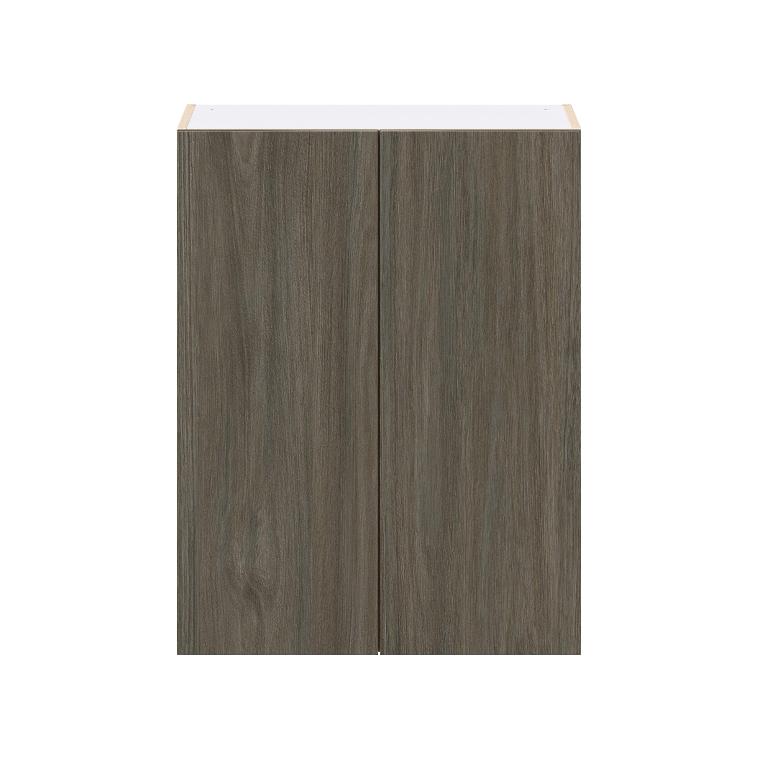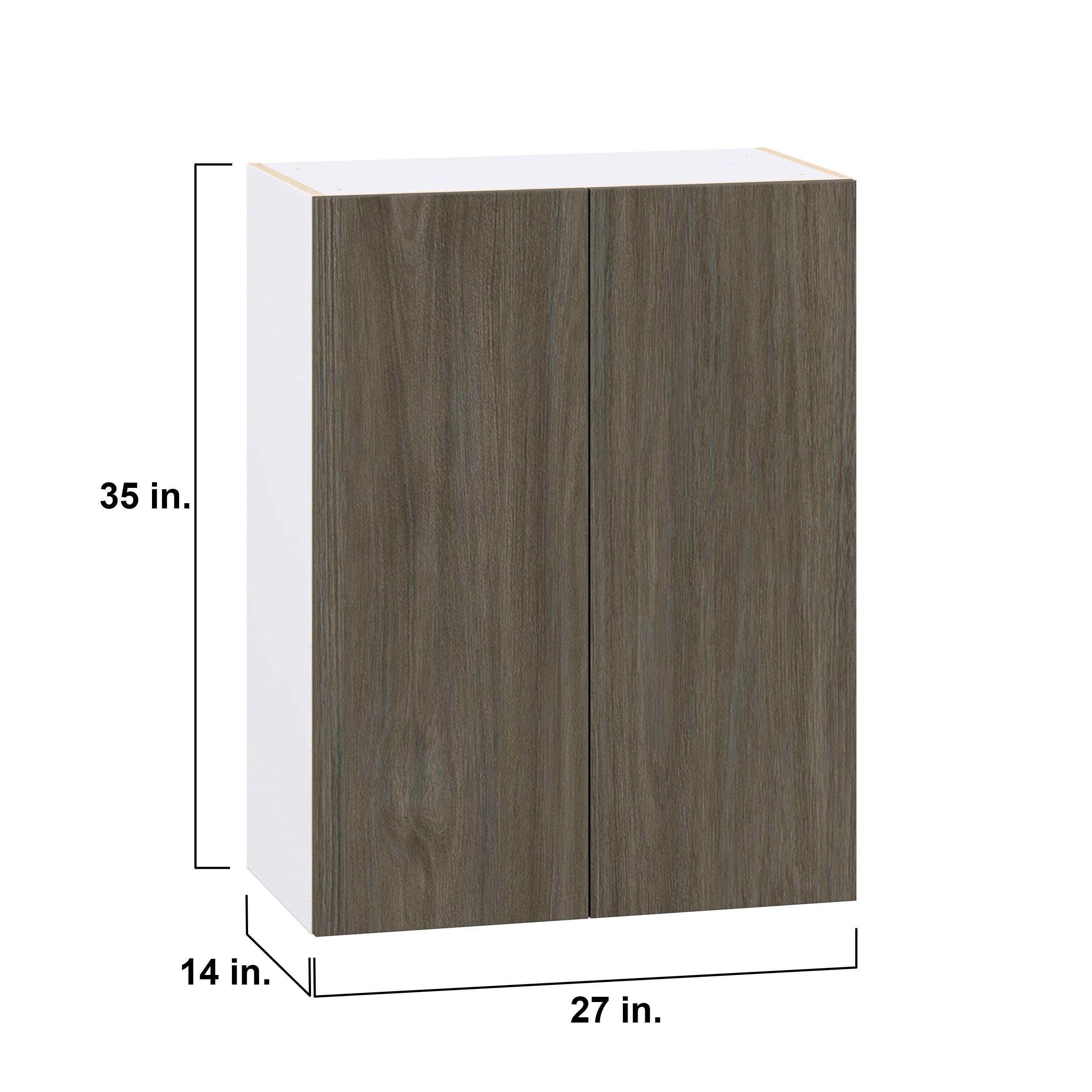 Elevate your project with the contemporary charm of Glenwood slab-style cabinets. Available in desert Mojavi oak and rich burnt walnut finishes, this collection captures the warmth and beauty of natural wood with the practicality of textured melamine. Crafted from one-piece MDF Studio Design Collection Glenwood 27 in. Burnt Walnut Door Wall Cabinet is designed to resist hairline cracks while the easy-to-clean finish stands up to stains and moisture. Featuring 5-piece doors and dovetail drawer joints, these cabinets offer durability and elegance. This collection combines style with everyday storage solutions.