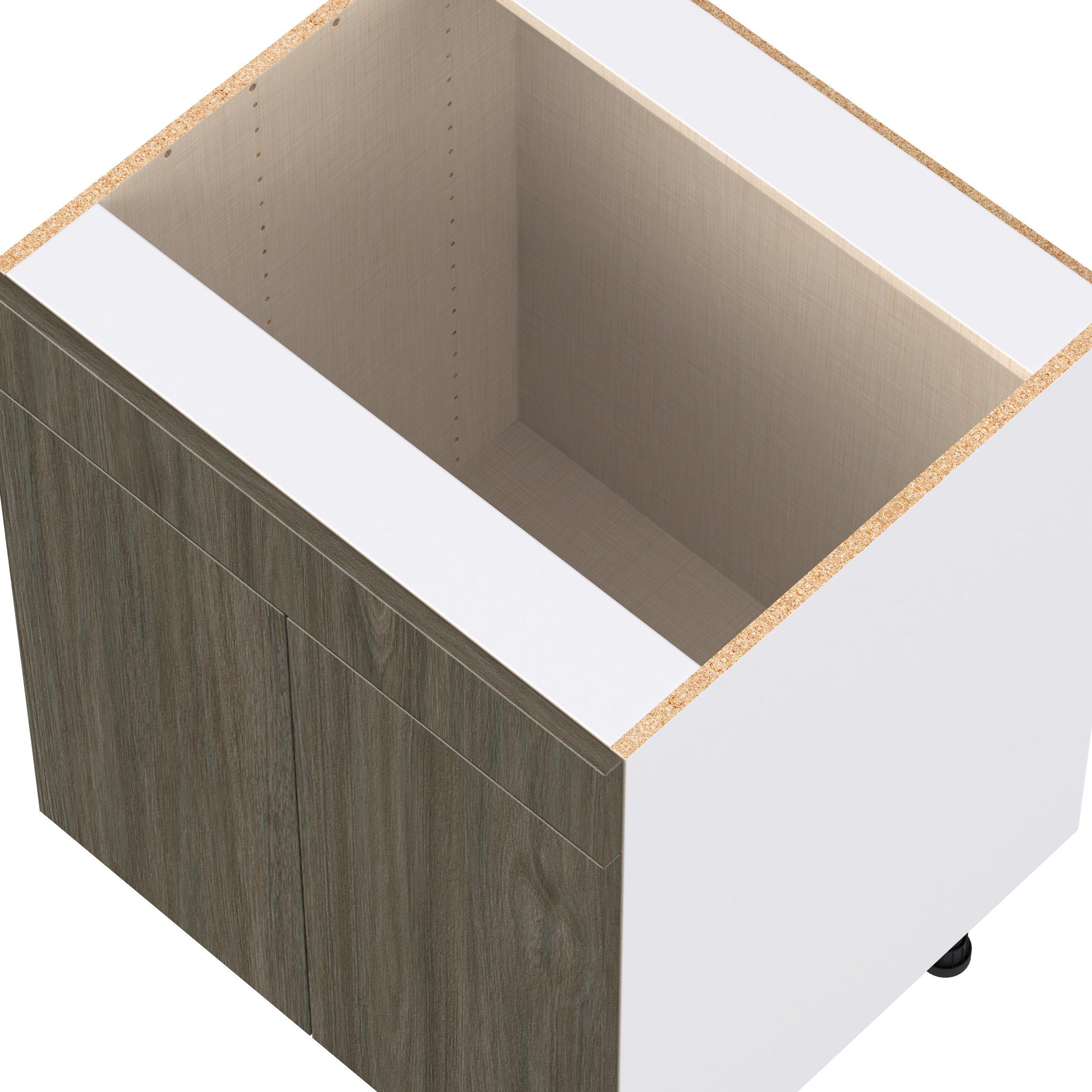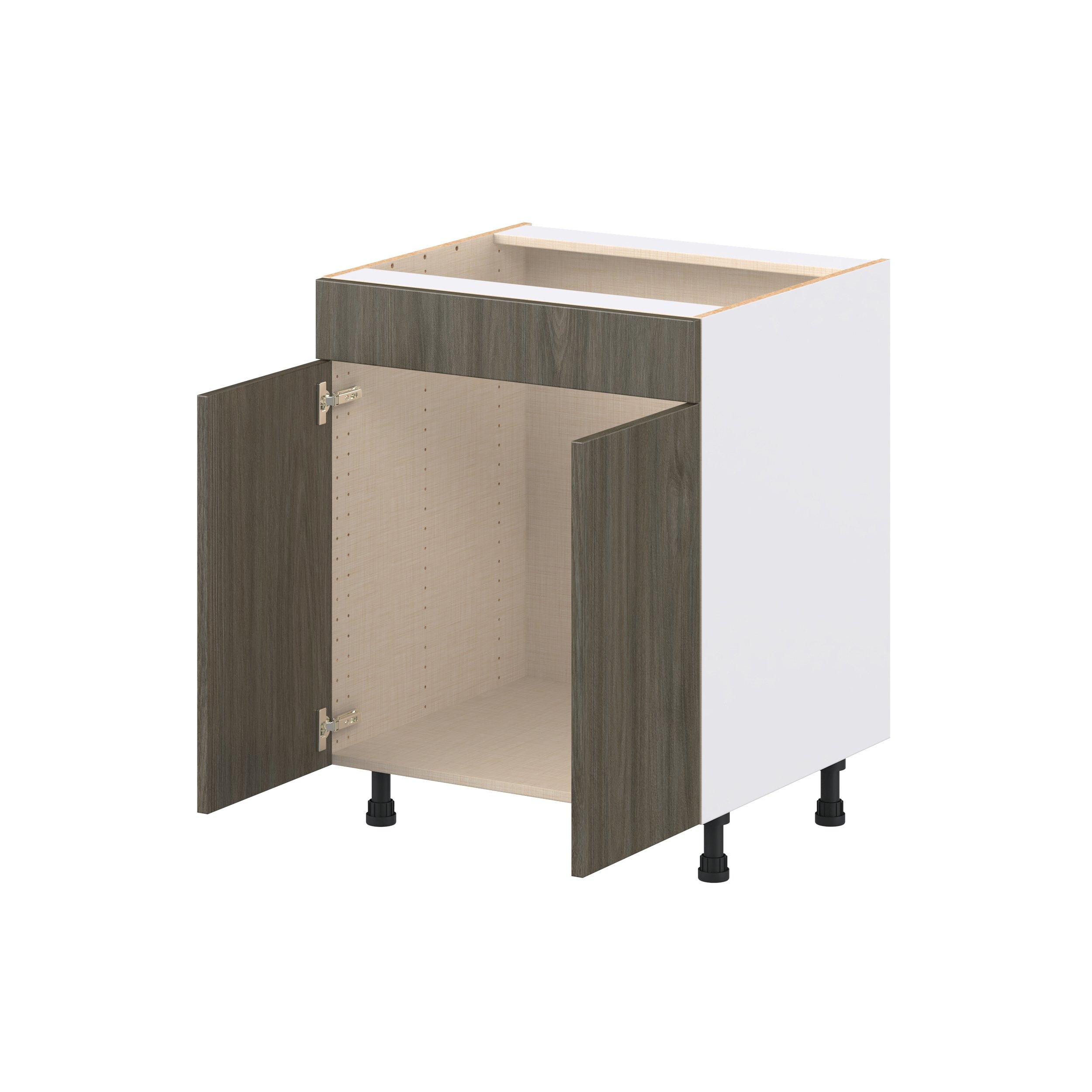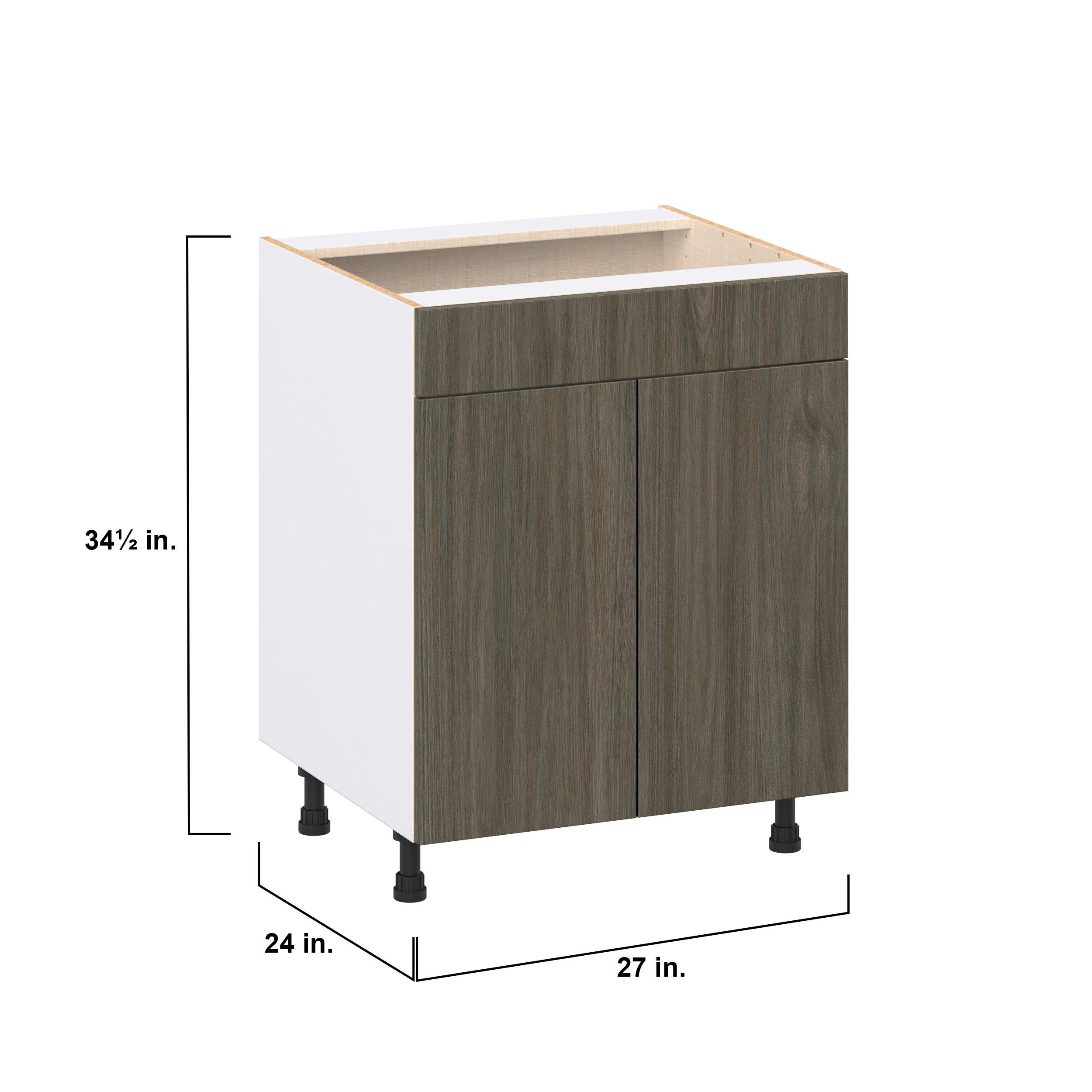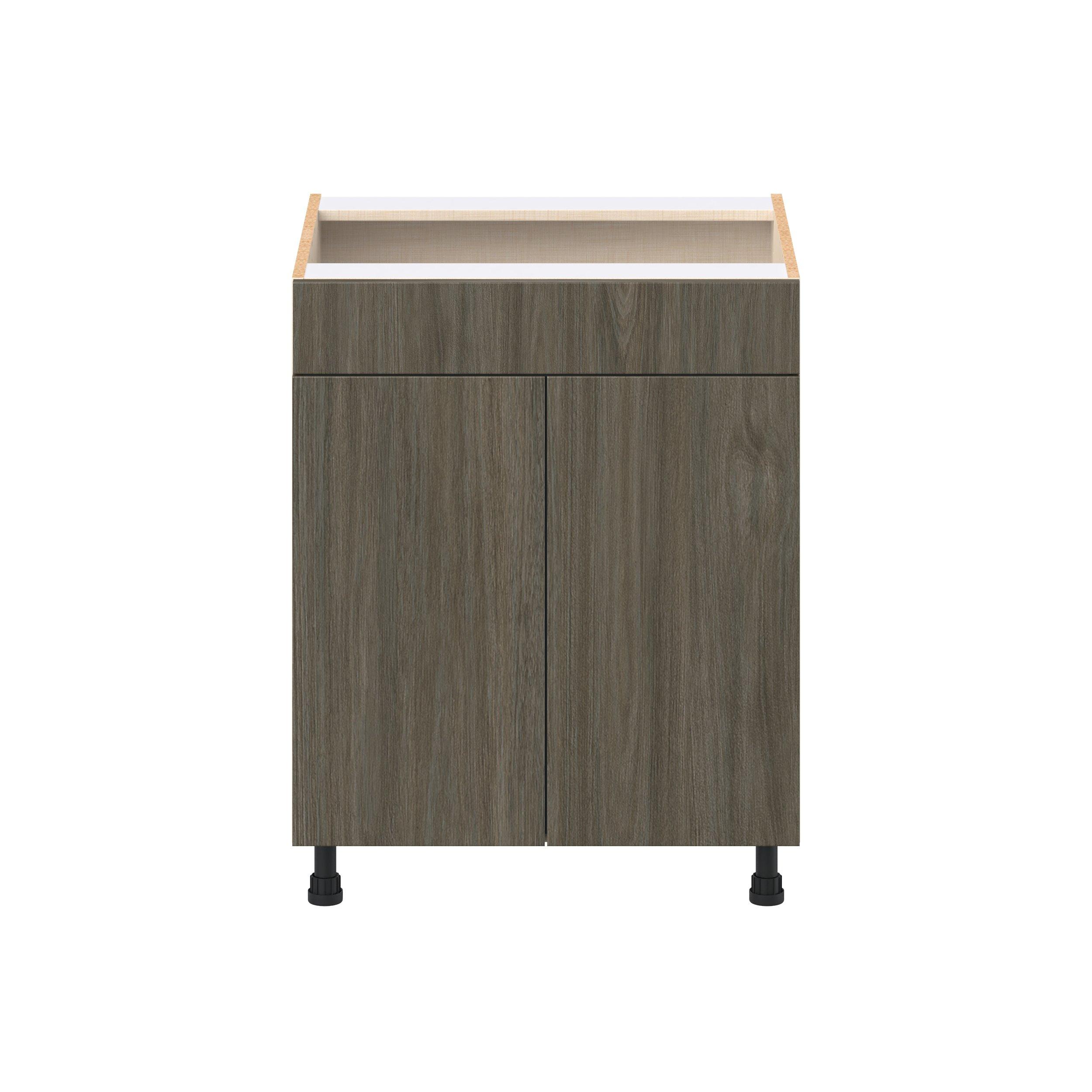 Elevate your project with the contemporary charm of Glenwood slab-style cabinets. Available in desert Mojavi oak and rich burnt walnut finishes, this collection captures the warmth and beauty of natural wood with the practicality of textured melamine. Crafted from one-piece MDF Studio Design Collection Glenwood 27 in. Burnt Walnut Sink Base Cabinet with False Front is designed to resist hairline cracks while the easy-to-clean finish stands up to stains and moisture. Featuring 5-piece doors and dovetail drawer joints, these cabinets offer durability and elegance. This collection combines style with everyday storage solutions.