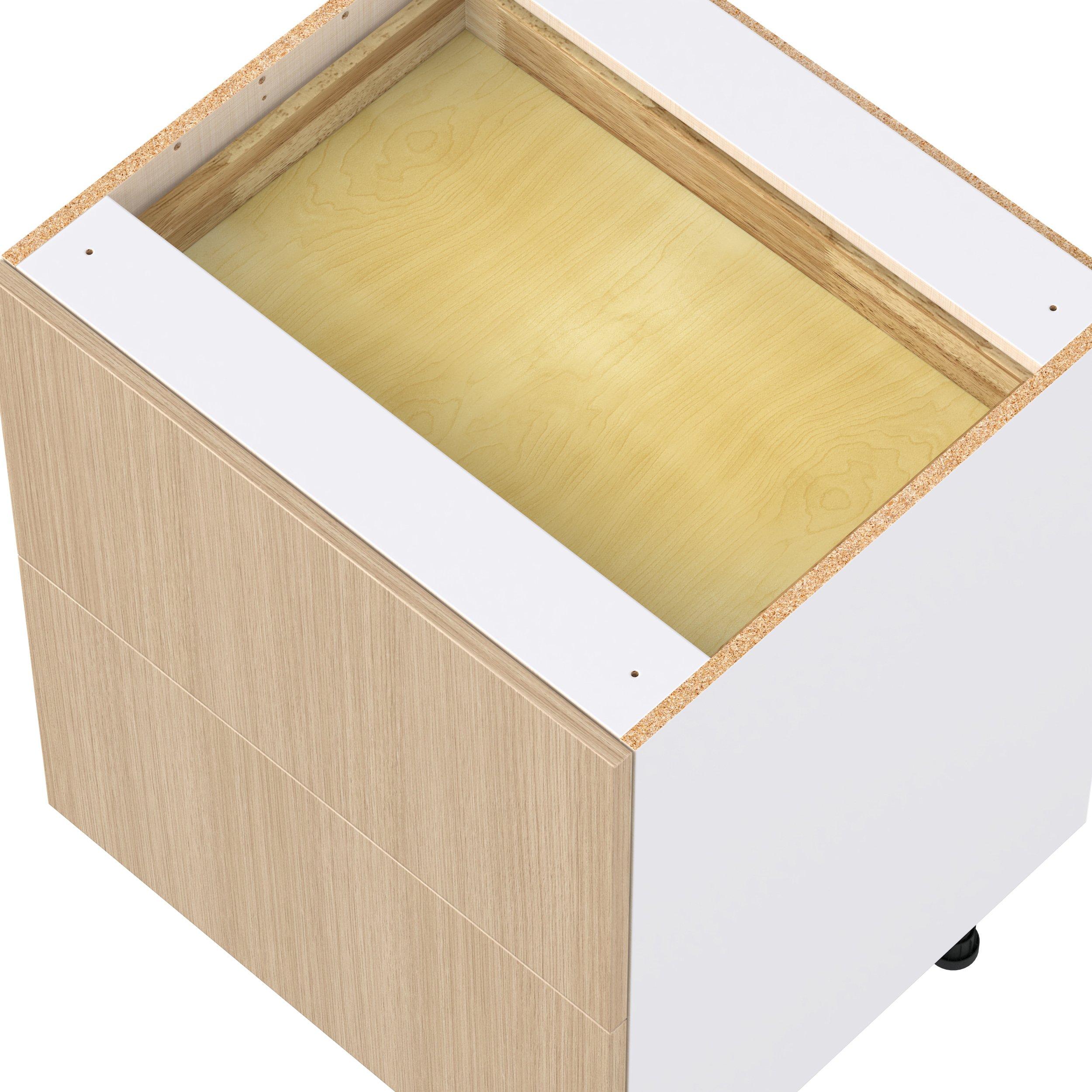 Elevate your project with the contemporary charm of Glenwood slab-style cabinets. Available in desert Mojavi oak and rich burnt walnut finishes, this collection captures the warmth and beauty of natural wood with the practicality of textured melamine. Crafted from one-piece MDF Studio Design Collection Glenwood 27 in. Mojavi Oak Base Cabinet with Inner Pull-Out Drawer is designed to resist hairline cracks while the easy-to-clean finish stands up to stains and moisture. Featuring 5-piece doors and dovetail drawer joints, these cabinets offer durability and elegance. This collection combines style with everyday storage solutions.