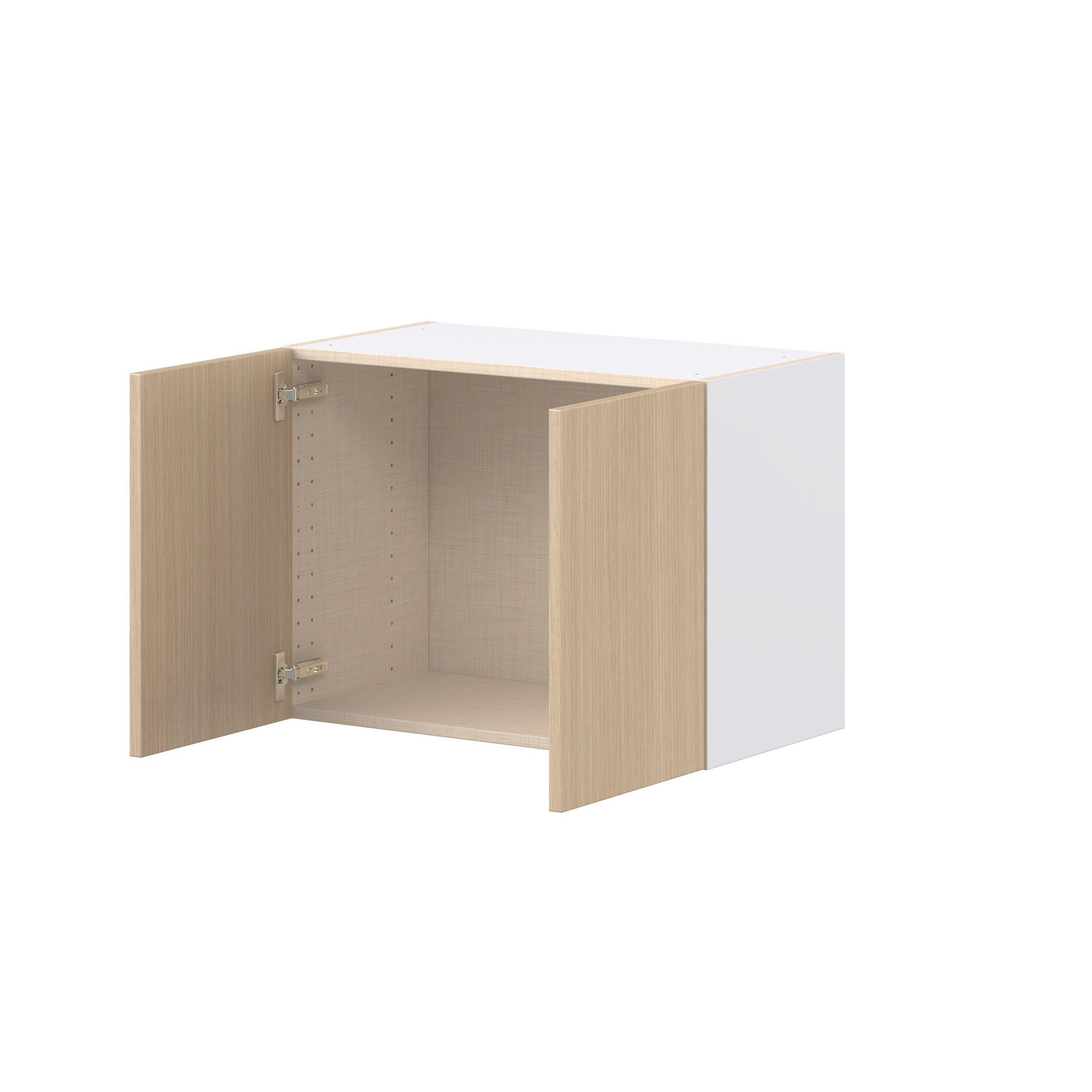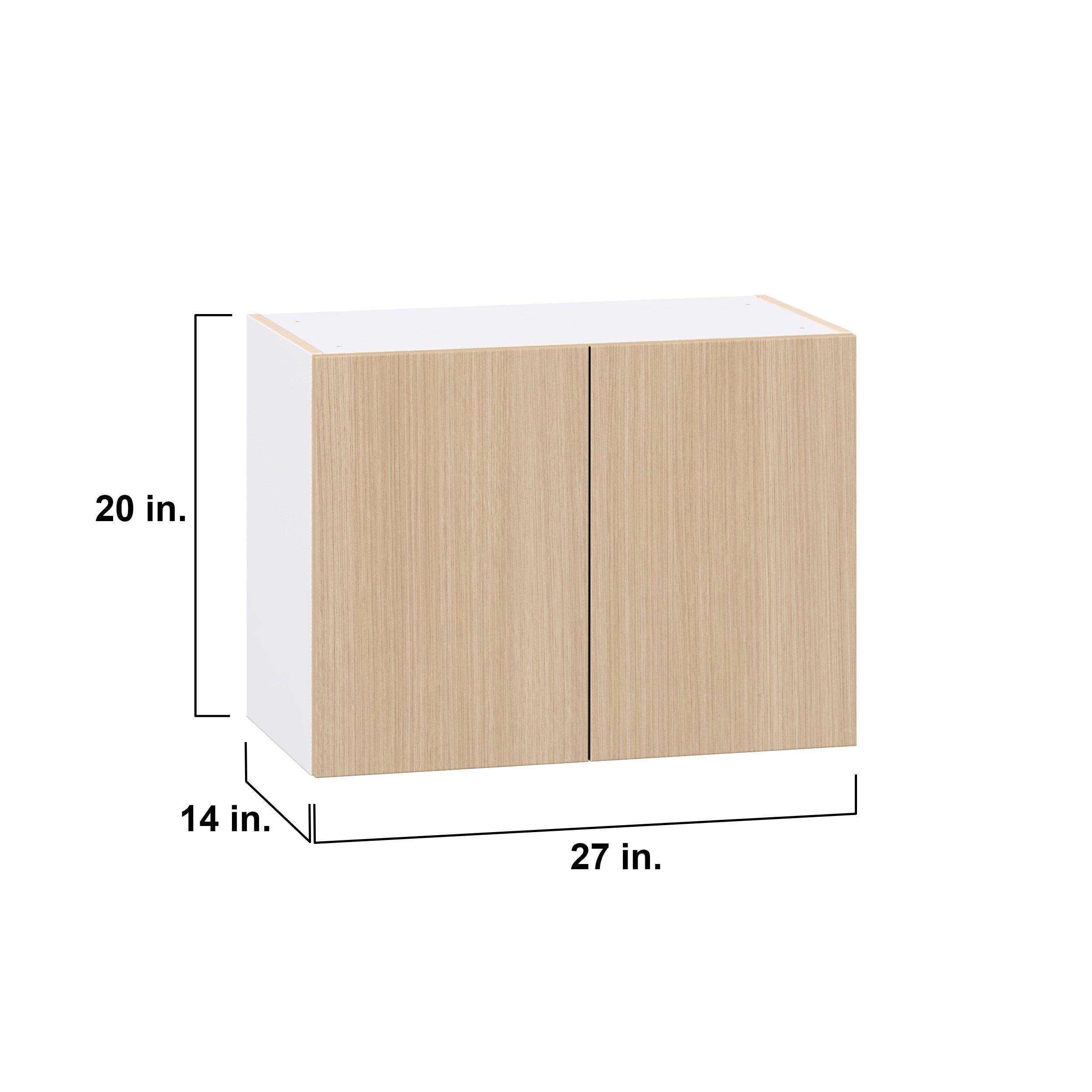 Elevate your project with the contemporary charm of Glenwood slab-style cabinets. Available in desert Mojavi oak and rich burnt walnut finishes, this collection captures the warmth and beauty of natural wood with the practicality of textured melamine. Crafted from one-piece MDF Studio Design Collection Glenwood 27 in. Mojavi Oak Bridge Wall Cabinet is designed to resist hairline cracks while the easy-to-clean finish stands up to stains and moisture. Featuring 5-piece doors and dovetail drawer joints, these cabinets offer durability and elegance. This collection combines style with everyday storage solutions.