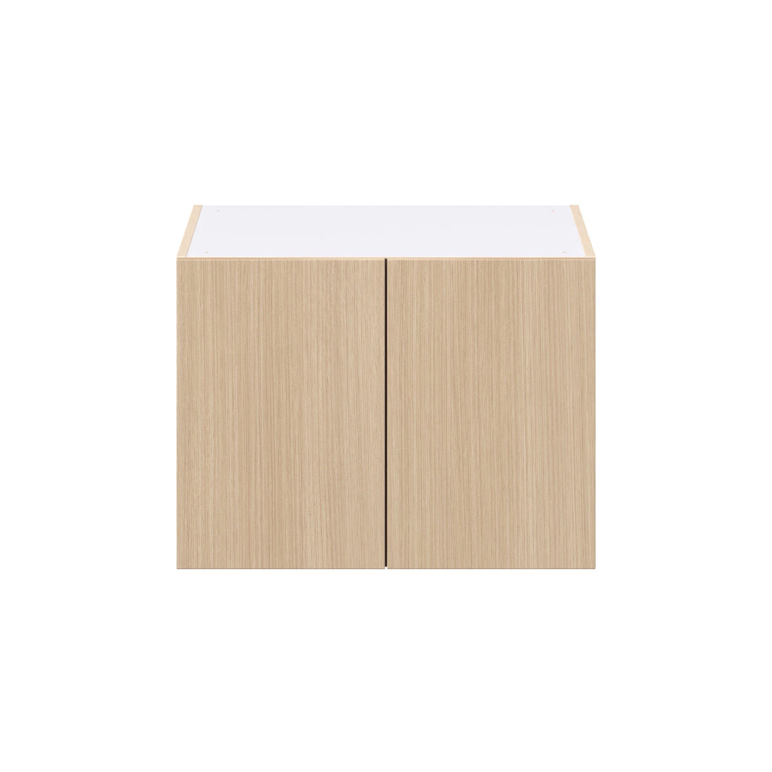 Elevate your project with the contemporary charm of Glenwood slab-style cabinets. Available in desert Mojavi oak and rich burnt walnut finishes, this collection captures the warmth and beauty of natural wood with the practicality of textured melamine. Crafted from one-piece MDF Studio Design Collection Glenwood 27 in. Mojavi Oak Bridge Wall Cabinet is designed to resist hairline cracks while the easy-to-clean finish stands up to stains and moisture. Featuring 5-piece doors and dovetail drawer joints, these cabinets offer durability and elegance. This collection combines style with everyday storage solutions.