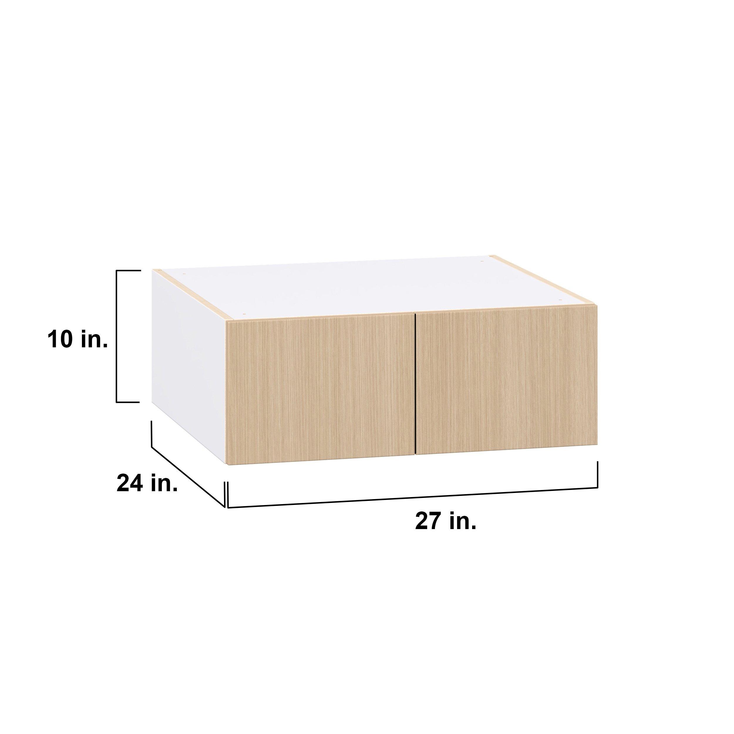 Elevate your project with the contemporary charm of Glenwood slab-style cabinets. Available in desert Mojavi oak and rich burnt walnut finishes, this collection captures the warmth and beauty of natural wood with the practicality of textured melamine. Crafted from one-piece MDF Studio Design Collection Glenwood 27 in. Mojavi Oak Bridge Wall Cabinet is designed to resist hairline cracks while the easy-to-clean finish stands up to stains and moisture. Featuring 5-piece doors and dovetail drawer joints, these cabinets offer durability and elegance. This collection combines style with everyday storage solutions.
