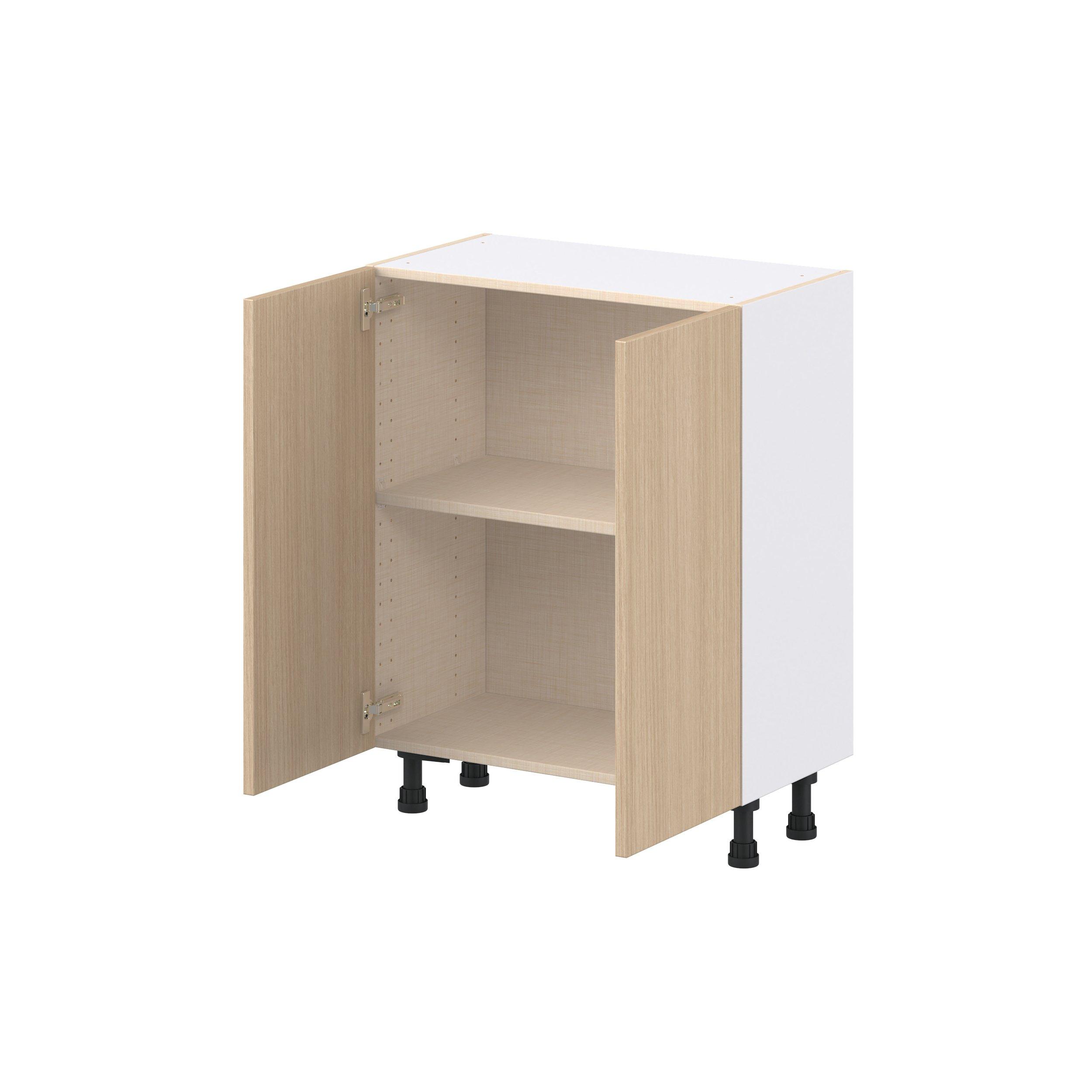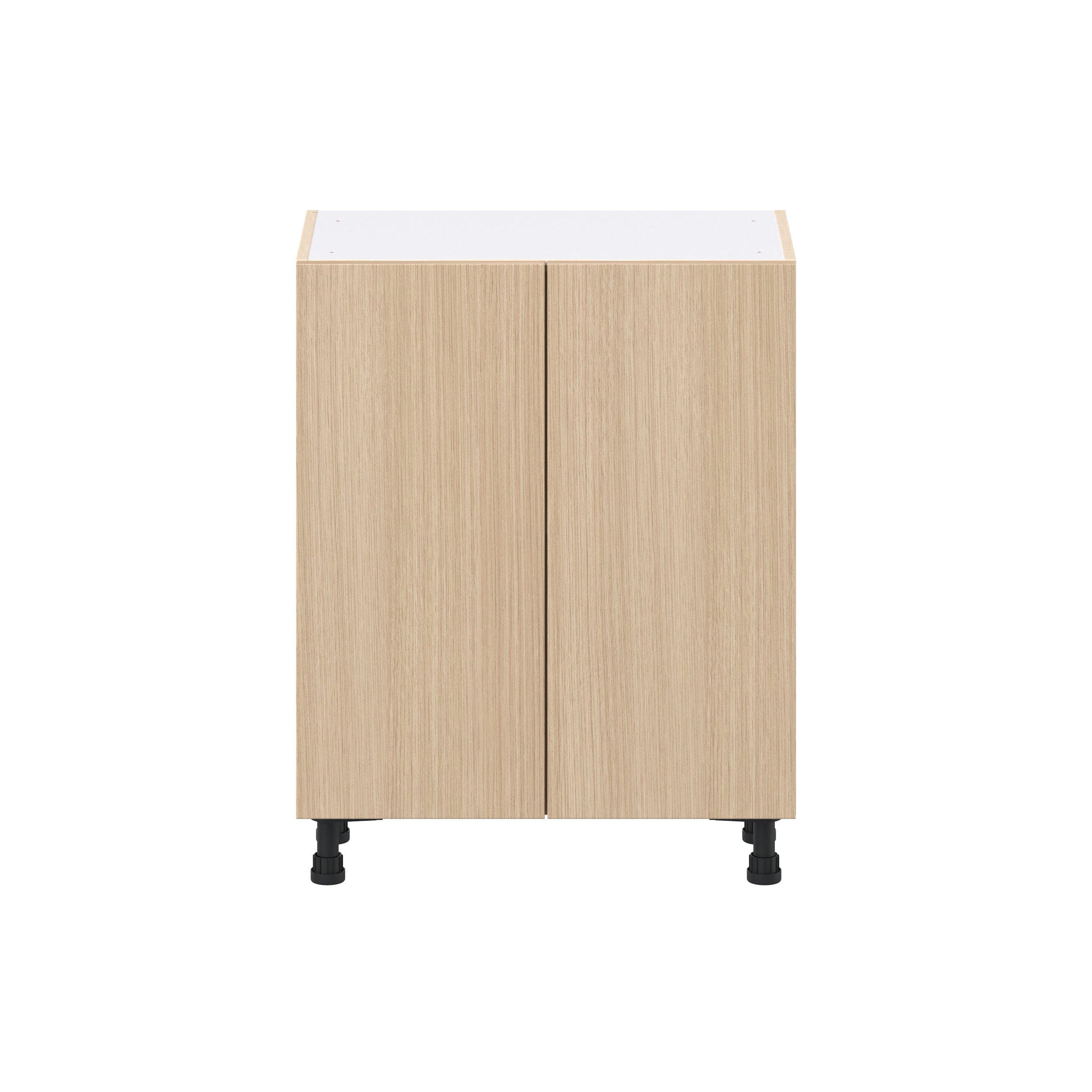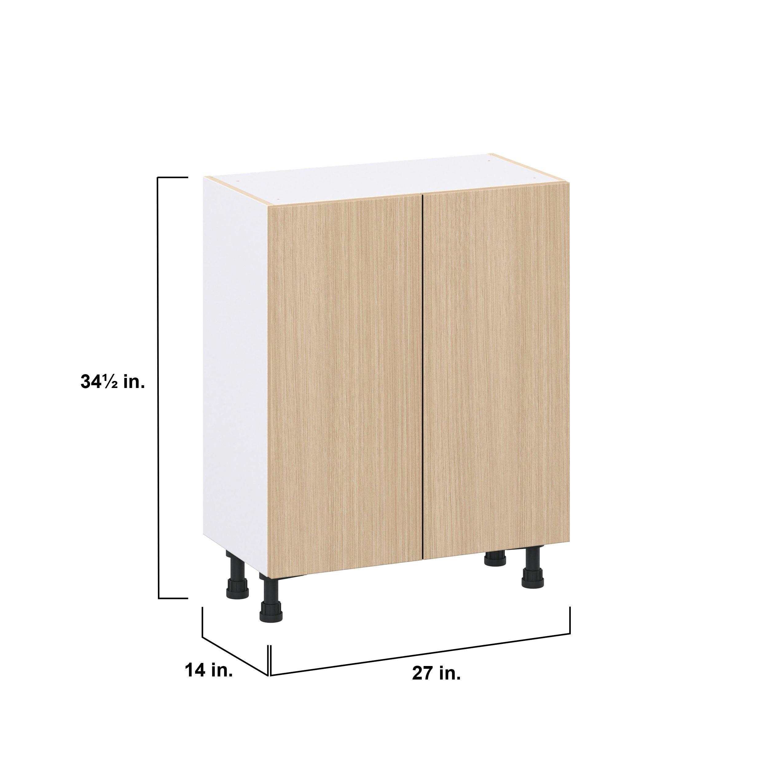Elevate your project with the contemporary charm of Glenwood slab-style cabinets. Available in desert Mojavi oak and rich burnt walnut finishes, this collection captures the warmth and beauty of natural wood with the practicality of textured melamine. Crafted from one-piece MDF Studio Design Collection Glenwood 27 in. Mojavi Oak Shallow Base Cabinet is designed to resist hairline cracks while the easy-to-clean finish stands up to stains and moisture. Featuring 5-piece doors and dovetail drawer joints, these cabinets offer durability and elegance. This collection combines style with everyday storage solutions.