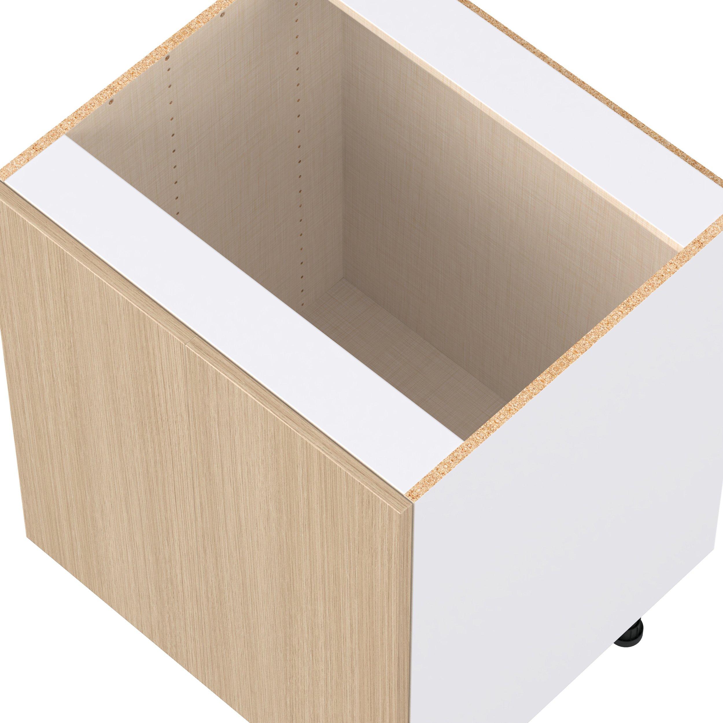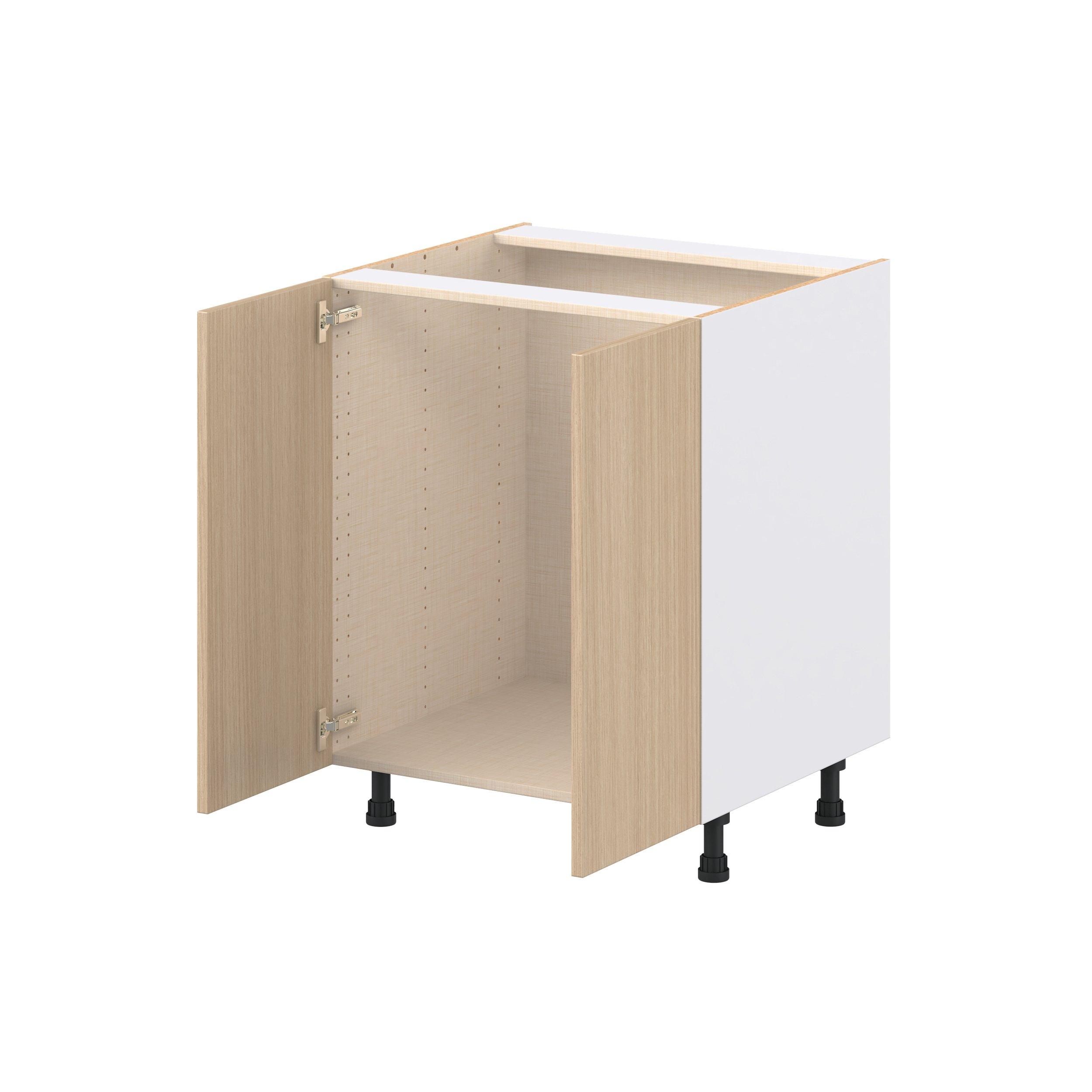 Elevate your project with the contemporary charm of Glenwood slab-style cabinets. Available in desert Mojavi oak and rich burnt walnut finishes, this collection captures the warmth and beauty of natural wood with the practicality of textured melamine. Crafted from one-piece MDF Studio Design Collection Glenwood 27 in. Mojavi Oak Sink Base Cabinet is designed to resist hairline cracks while the easy-to-clean finish stands up to stains and moisture. Featuring 5-piece doors and dovetail drawer joints, these cabinets offer durability and elegance. This collection combines style with everyday storage solutions.