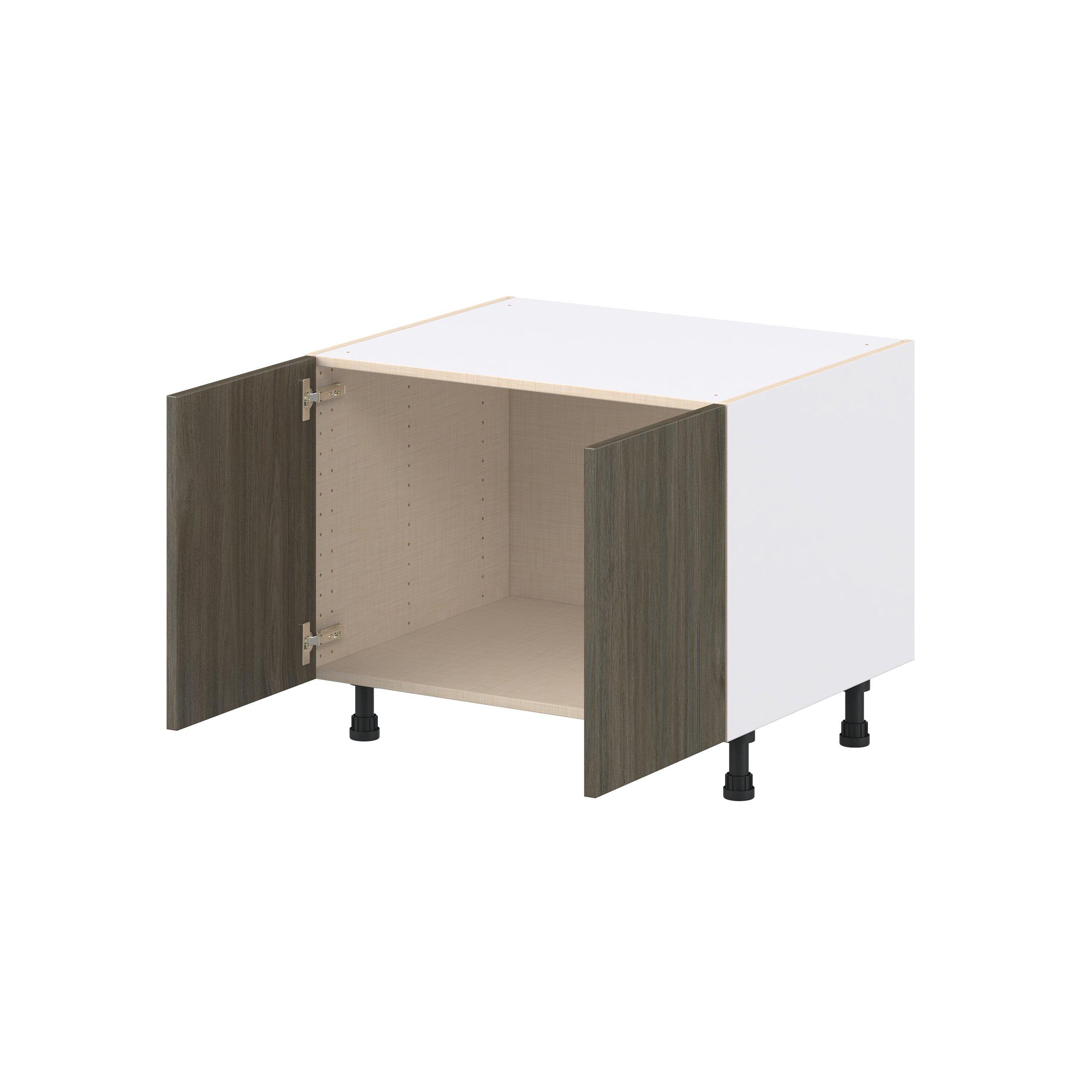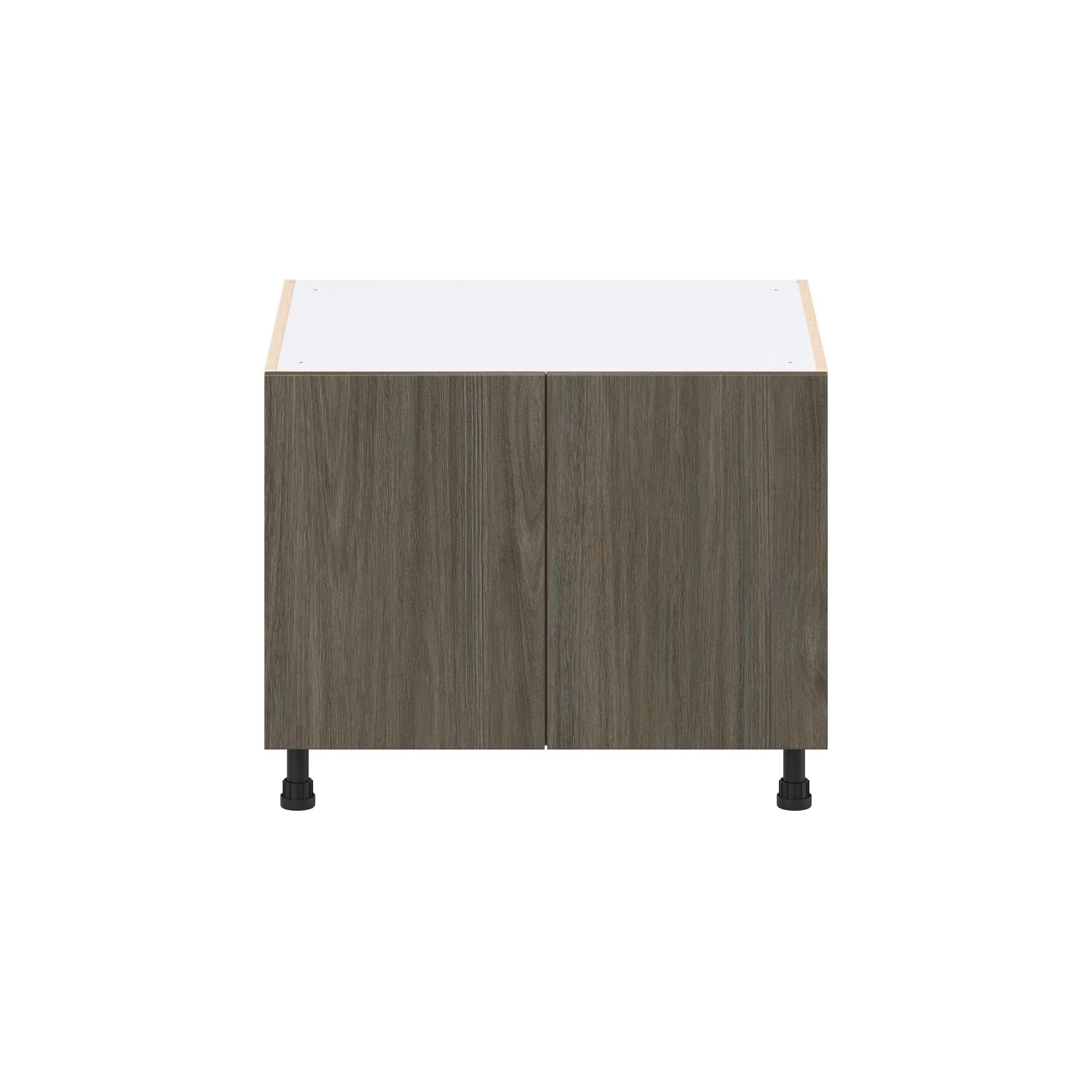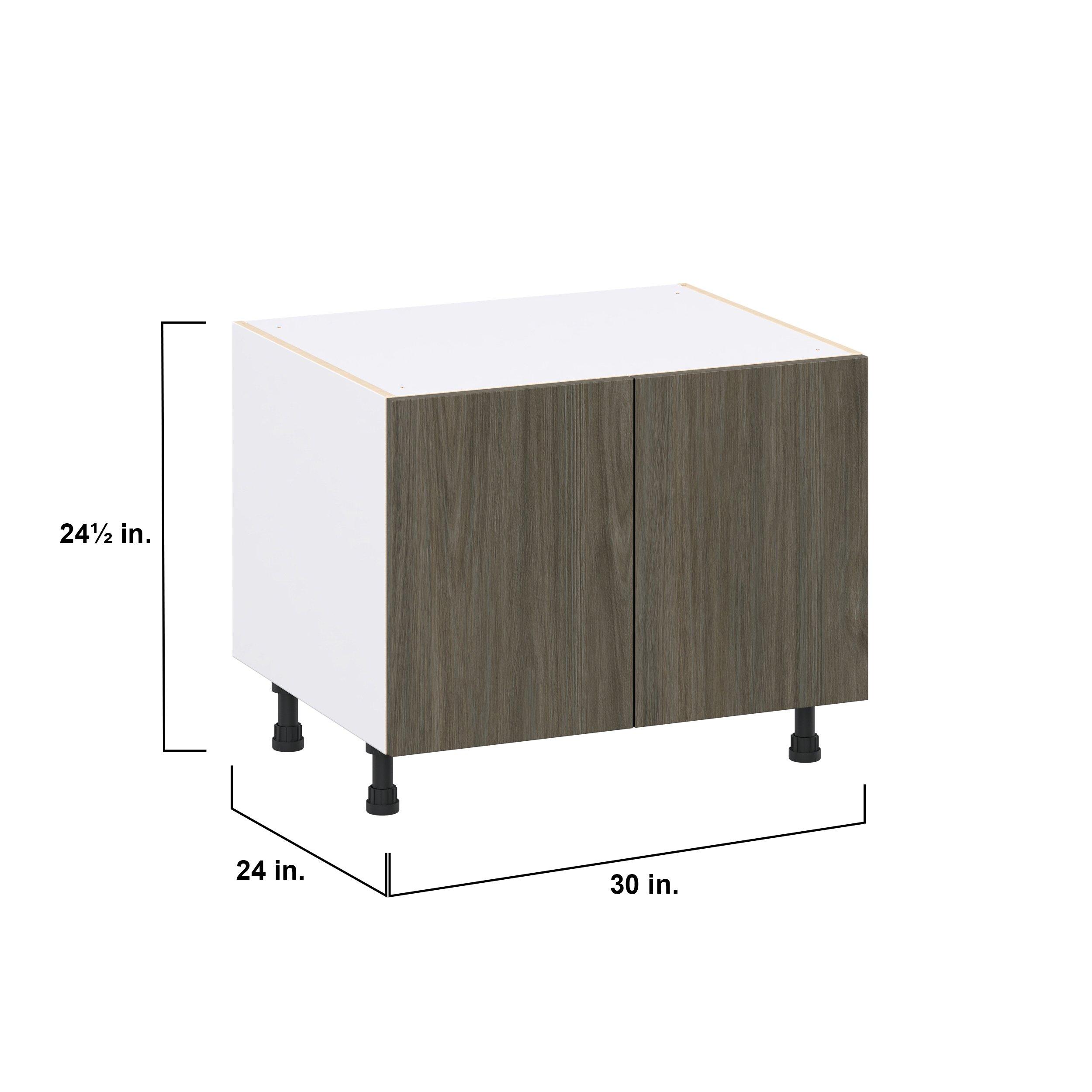 Elevate your project with the contemporary charm of Glenwood slab-style cabinets. Available in desert Mojavi oak and rich burnt walnut finishes, this collection captures the warmth and beauty of natural wood with the practicality of textured melamine. Crafted from one-piece MDF Studio Design Collection Glenwood 30 in. Burnt Walnut Apron Sink Base is designed to resist hairline cracks while the easy-to-clean finish stands up to stains and moisture. Featuring 5-piece doors and dovetail drawer joints, these cabinets offer durability and elegance. This collection combines style with everyday storage solutions.