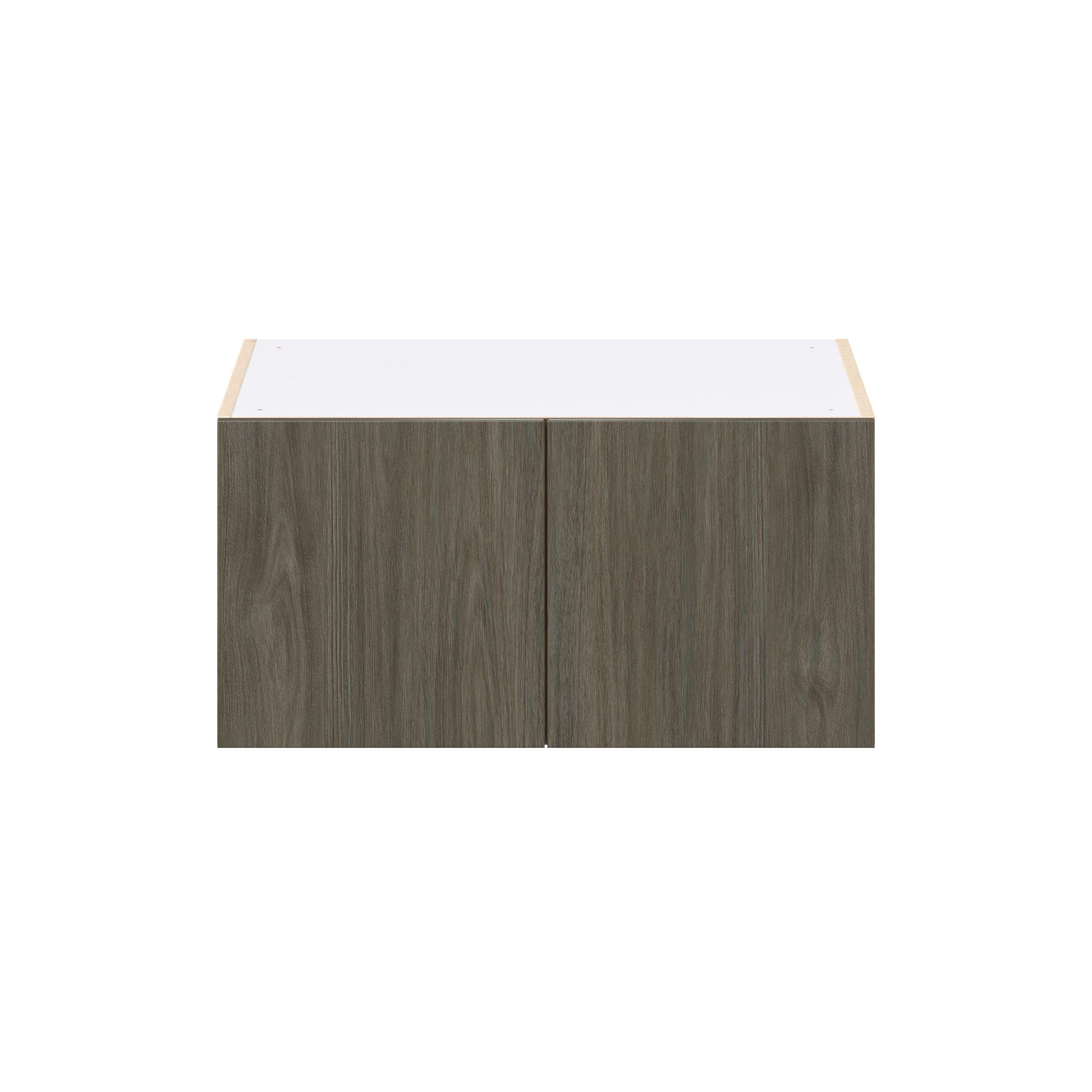 Elevate your project with the contemporary charm of Glenwood slab-style cabinets. Available in desert Mojavi oak and rich burnt walnut finishes, this collection captures the warmth and beauty of natural wood with the practicality of textured melamine. Crafted from one-piece MDF Studio Design Collection Glenwood 30 in. Burnt Walnut Bridge Wall Cabinet is designed to resist hairline cracks while the easy-to-clean finish stands up to stains and moisture. Featuring 5-piece doors and dovetail drawer joints, these cabinets offer durability and elegance. This collection combines style with everyday storage solutions.