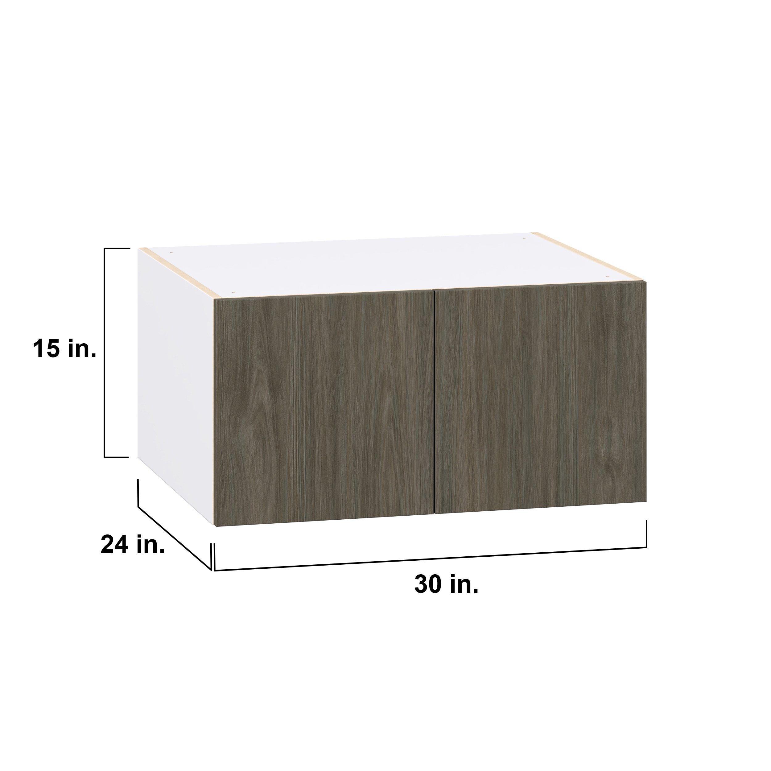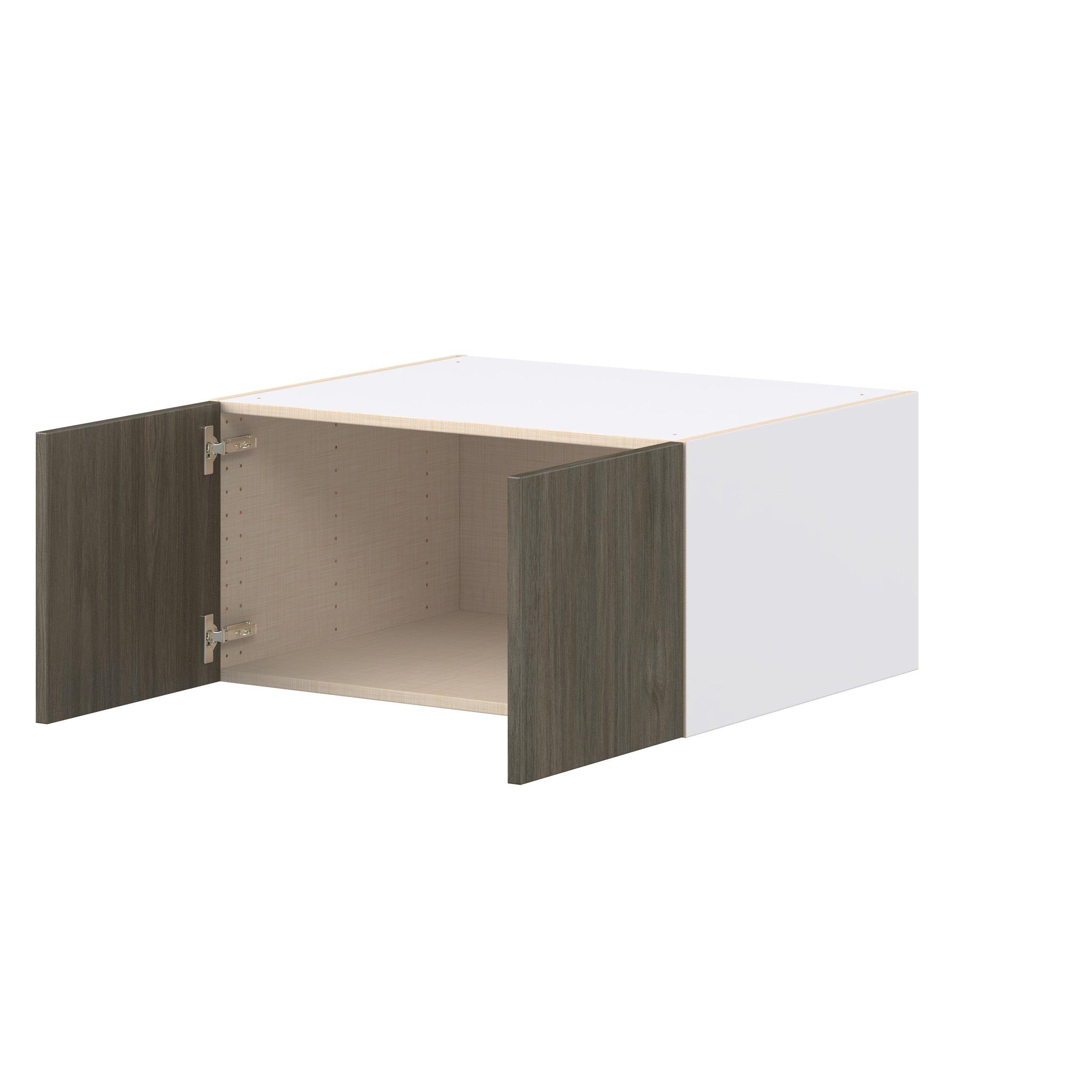 Elevate your project with the contemporary charm of Glenwood slab-style cabinets. Available in desert Mojavi oak and rich burnt walnut finishes, this collection captures the warmth and beauty of natural wood with the practicality of textured melamine. Crafted from one-piece MDF Studio Design Collection Glenwood 30 in. Burnt Walnut Bridge Wall Cabinet is designed to resist hairline cracks while the easy-to-clean finish stands up to stains and moisture. Featuring 5-piece doors and dovetail drawer joints, these cabinets offer durability and elegance. This collection combines style with everyday storage solutions.