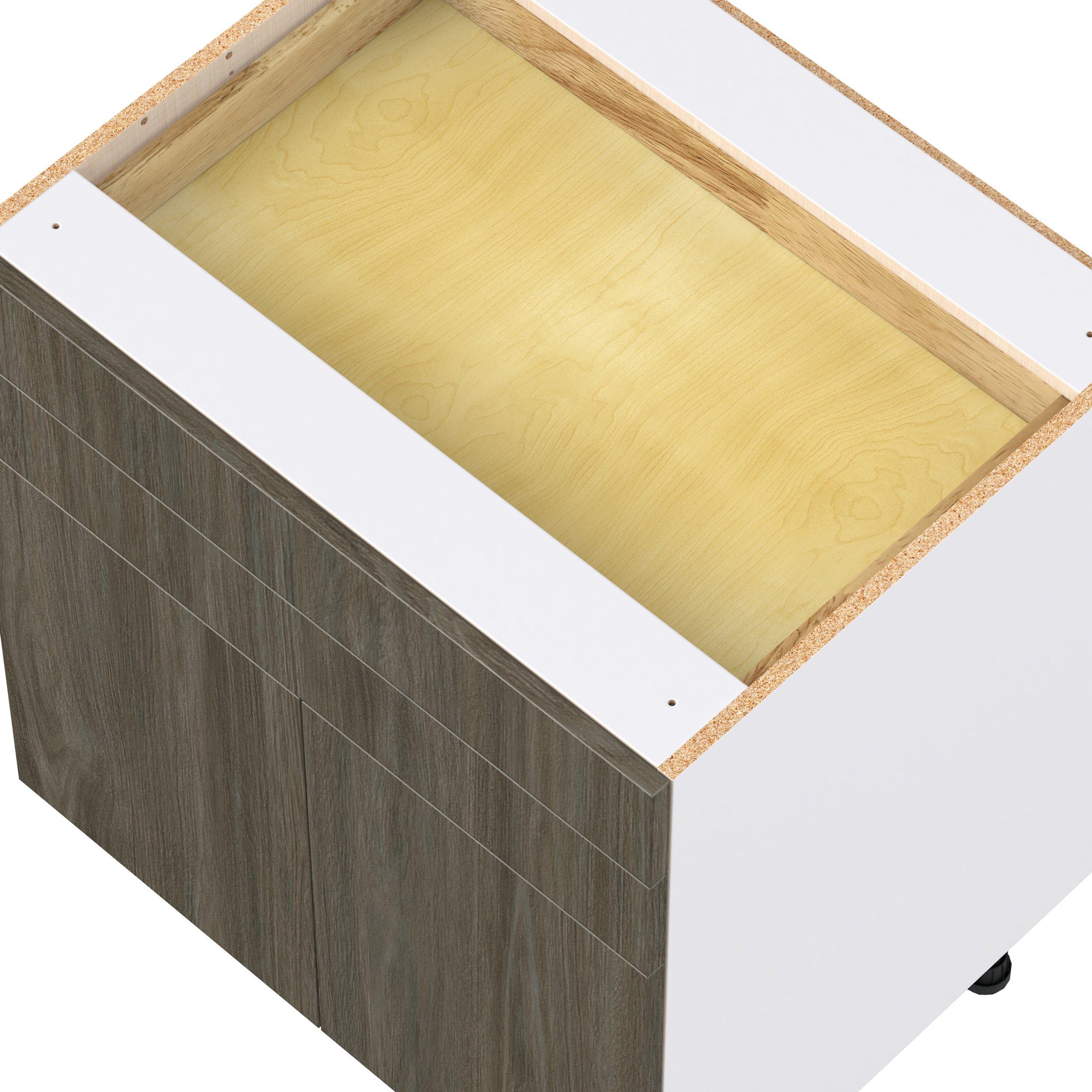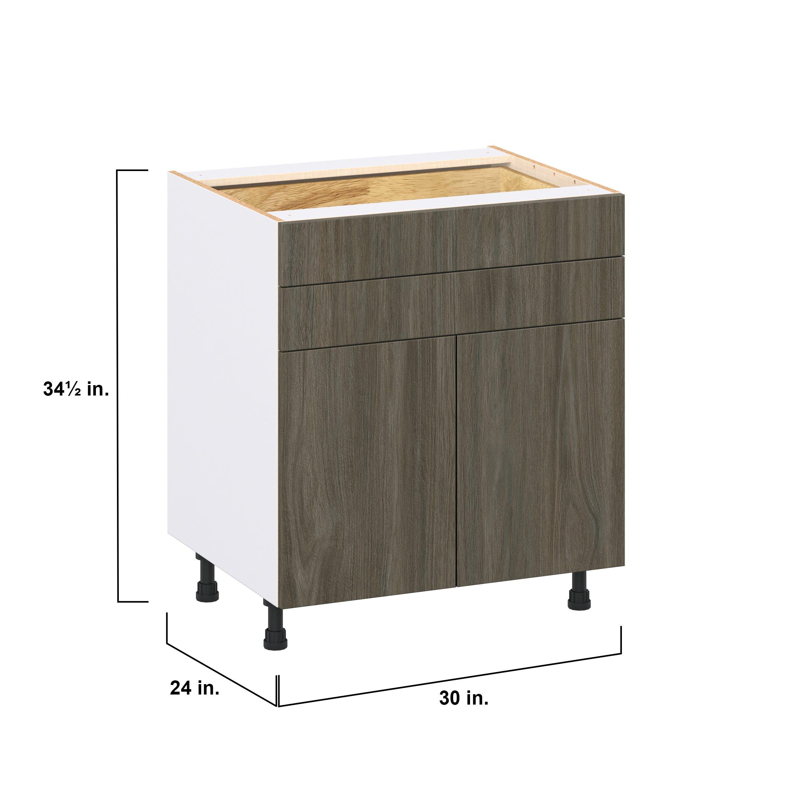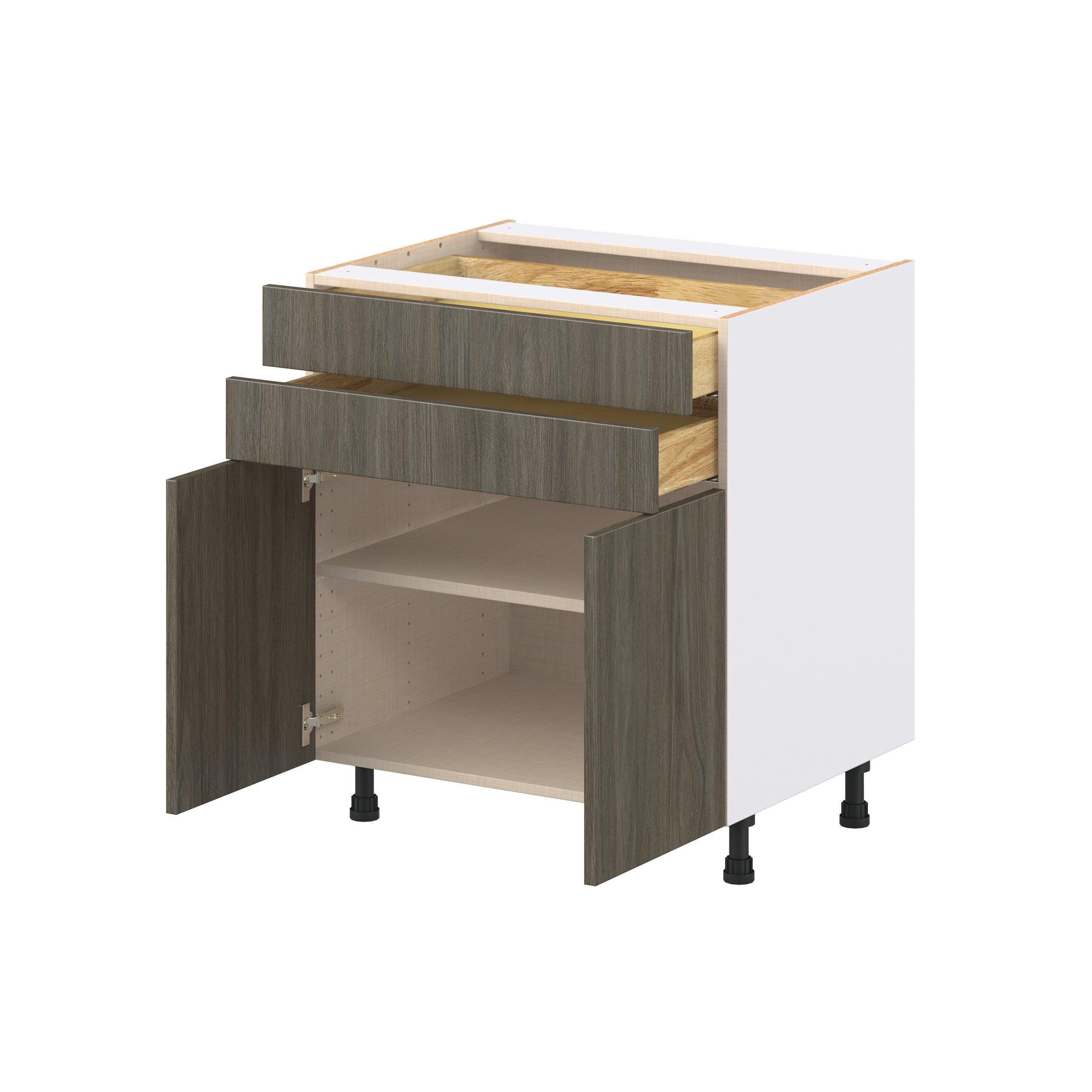 Elevate your project with the contemporary charm of Glenwood slab-style cabinets. Available in desert Mojavi oak and rich burnt walnut finishes, this collection captures the warmth and beauty of natural wood with the practicality of textured melamine. Crafted from one-piece MDF Studio Design Collection Glenwood 30 in. Burnt Walnut Door and Drawer Base Cabinet is designed to resist hairline cracks while the easy-to-clean finish stands up to stains and moisture. Featuring 5-piece doors and dovetail drawer joints, these cabinets offer durability and elegance. This collection combines style with everyday storage solutions.