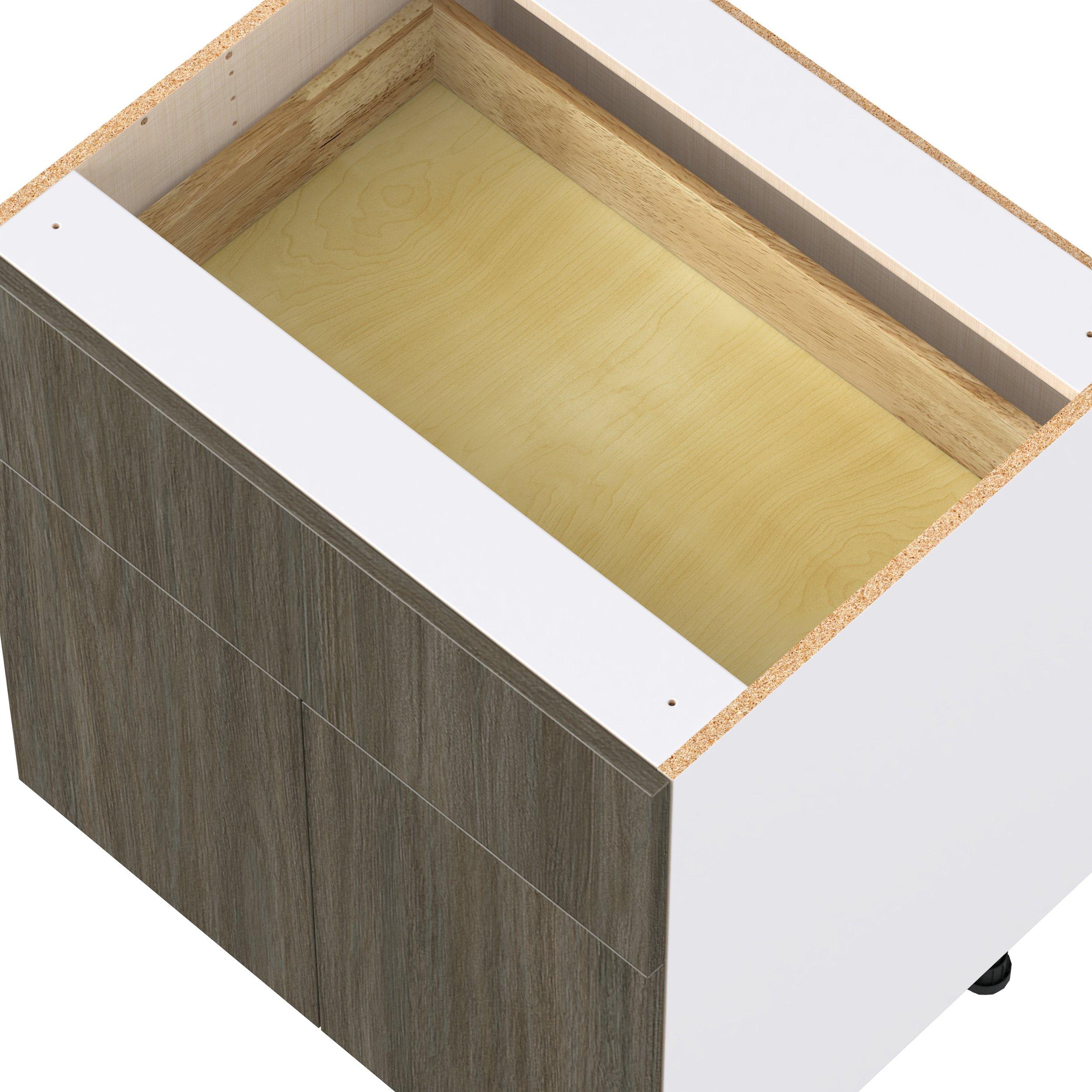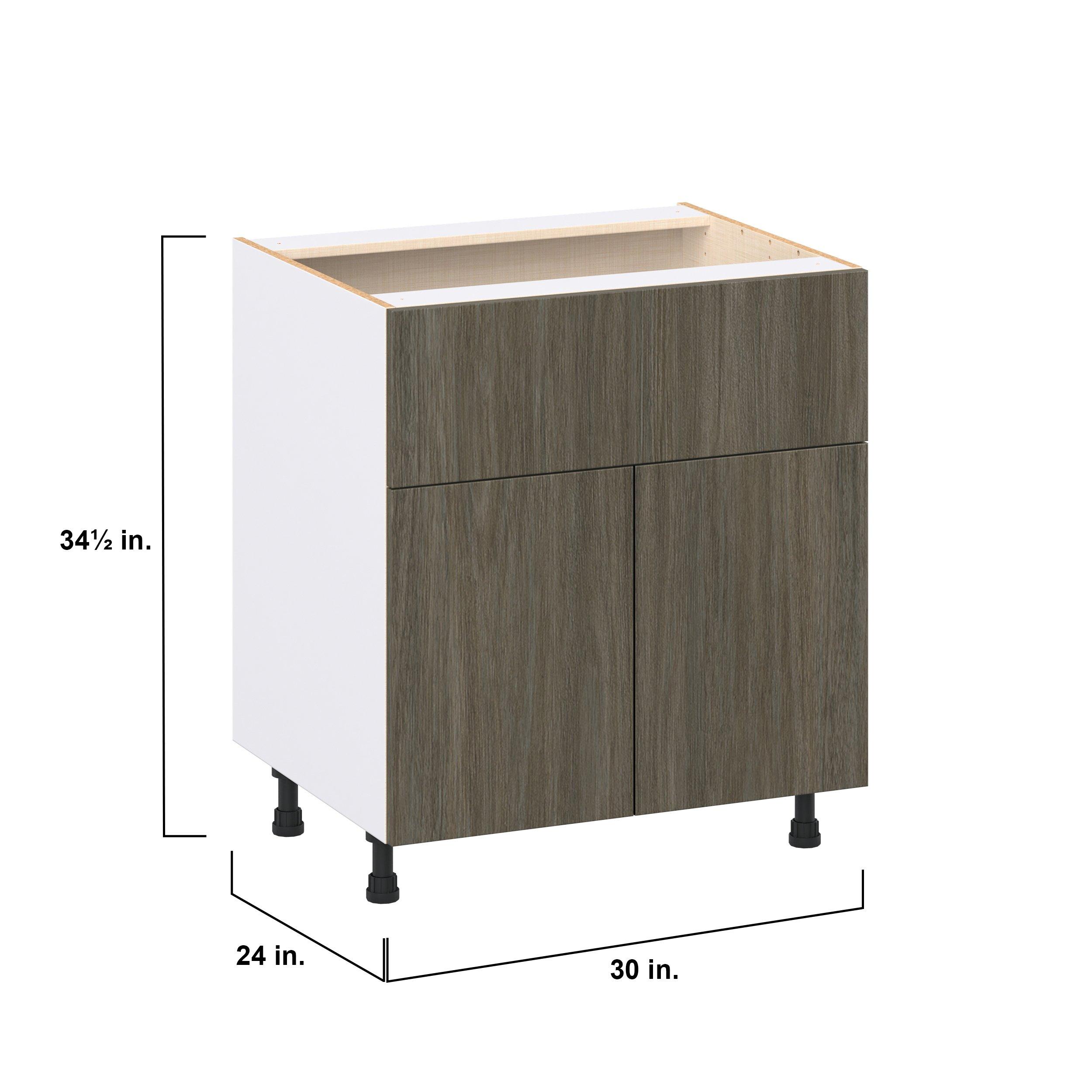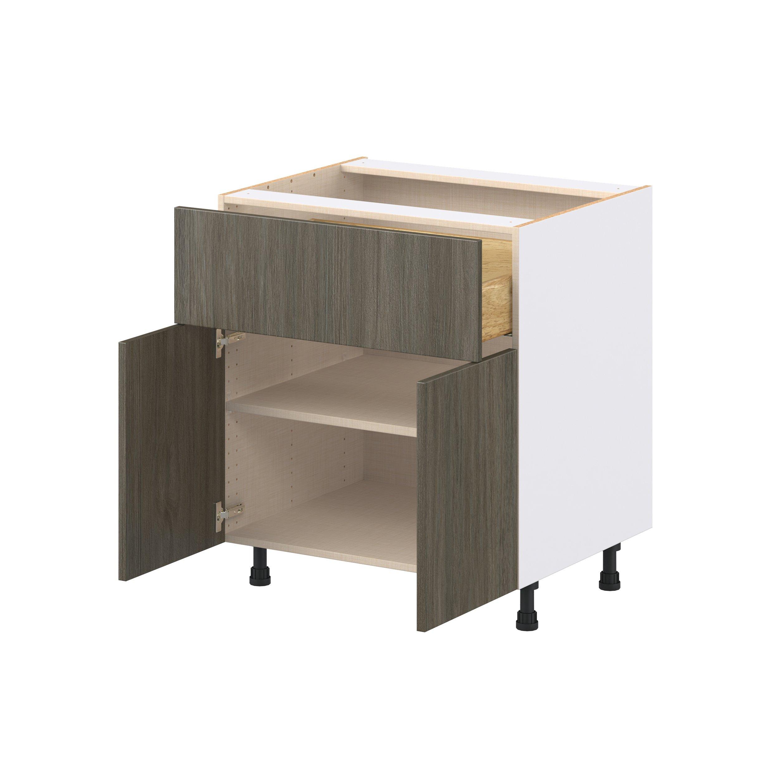 Elevate your project with the contemporary charm of Glenwood slab-style cabinets. Available in desert Mojavi oak and rich burnt walnut finishes, this collection captures the warmth and beauty of natural wood with the practicality of textured melamine. Crafted from one-piece MDF Studio Design Collection Glenwood 30 in. Burnt Walnut Door and Drawer Base Cabinet is designed to resist hairline cracks while the easy-to-clean finish stands up to stains and moisture. Featuring 5-piece doors and dovetail drawer joints, these cabinets offer durability and elegance. This collection combines style with everyday storage solutions.