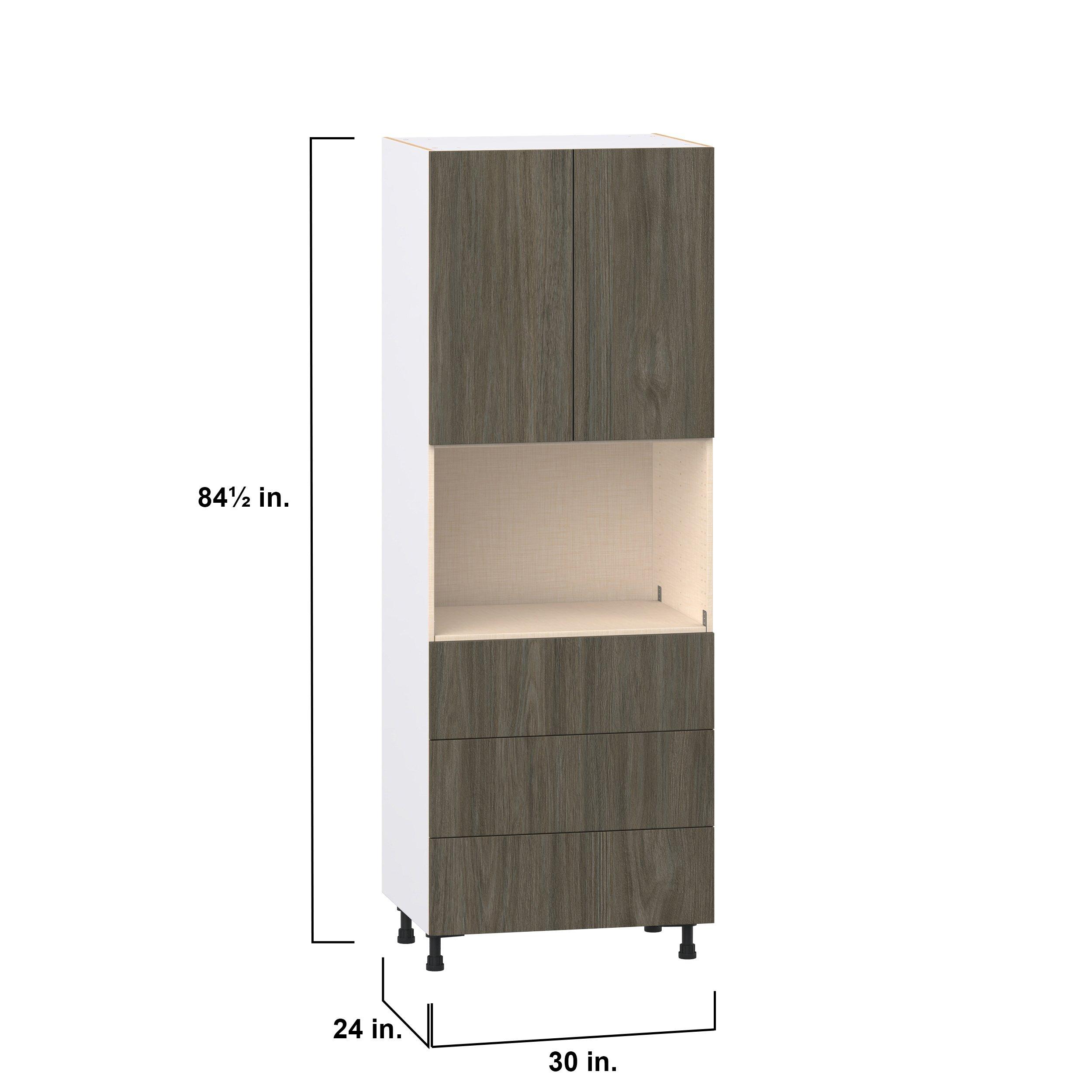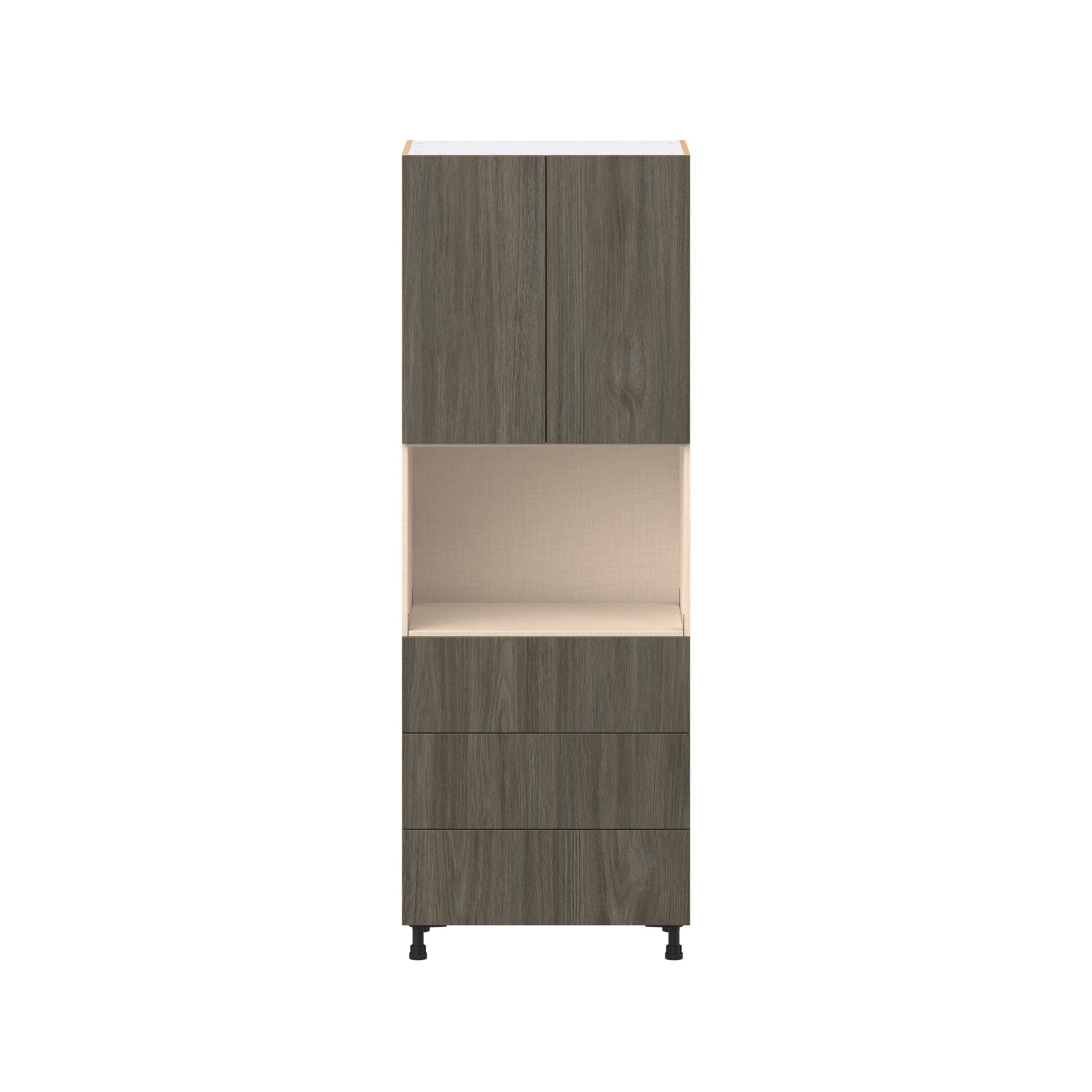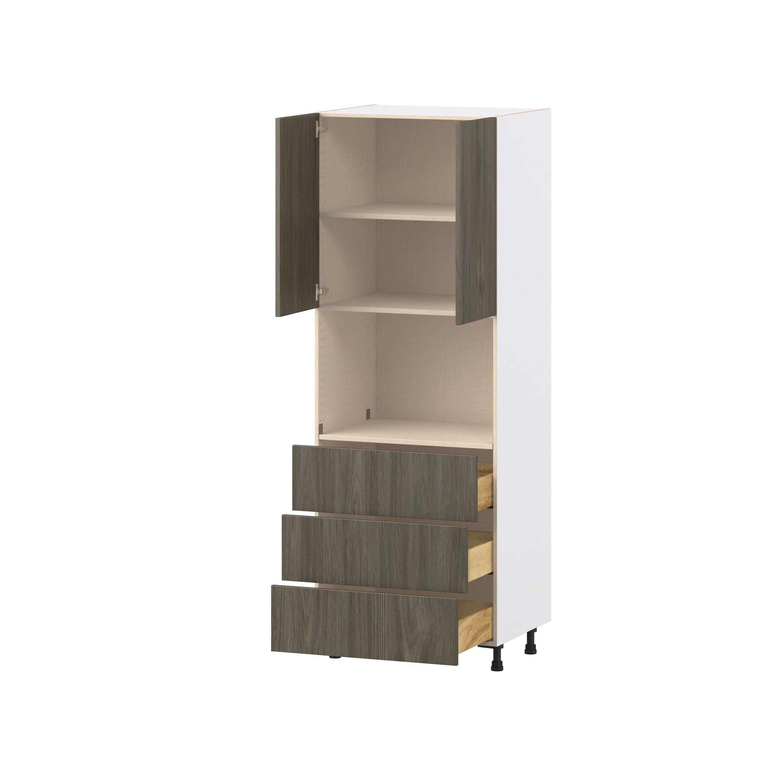 Elevate your project with the contemporary charm of Glenwood slab-style cabinets. Available in desert Mojavi oak and rich burnt walnut finishes, this collection captures the warmth and beauty of natural wood with the practicality of textured melamine. Crafted from one-piece MDF Studio Design Collection Glenwood 30 in. Burnt Walnut Door and Drawer Microwave Pantry Cabinet is designed to resist hairline cracks while the easy-to-clean finish stands up to stains and moisture. Featuring 5-piece doors and dovetail drawer joints, these cabinets offer durability and elegance. This collection combines style with everyday storage solutions.