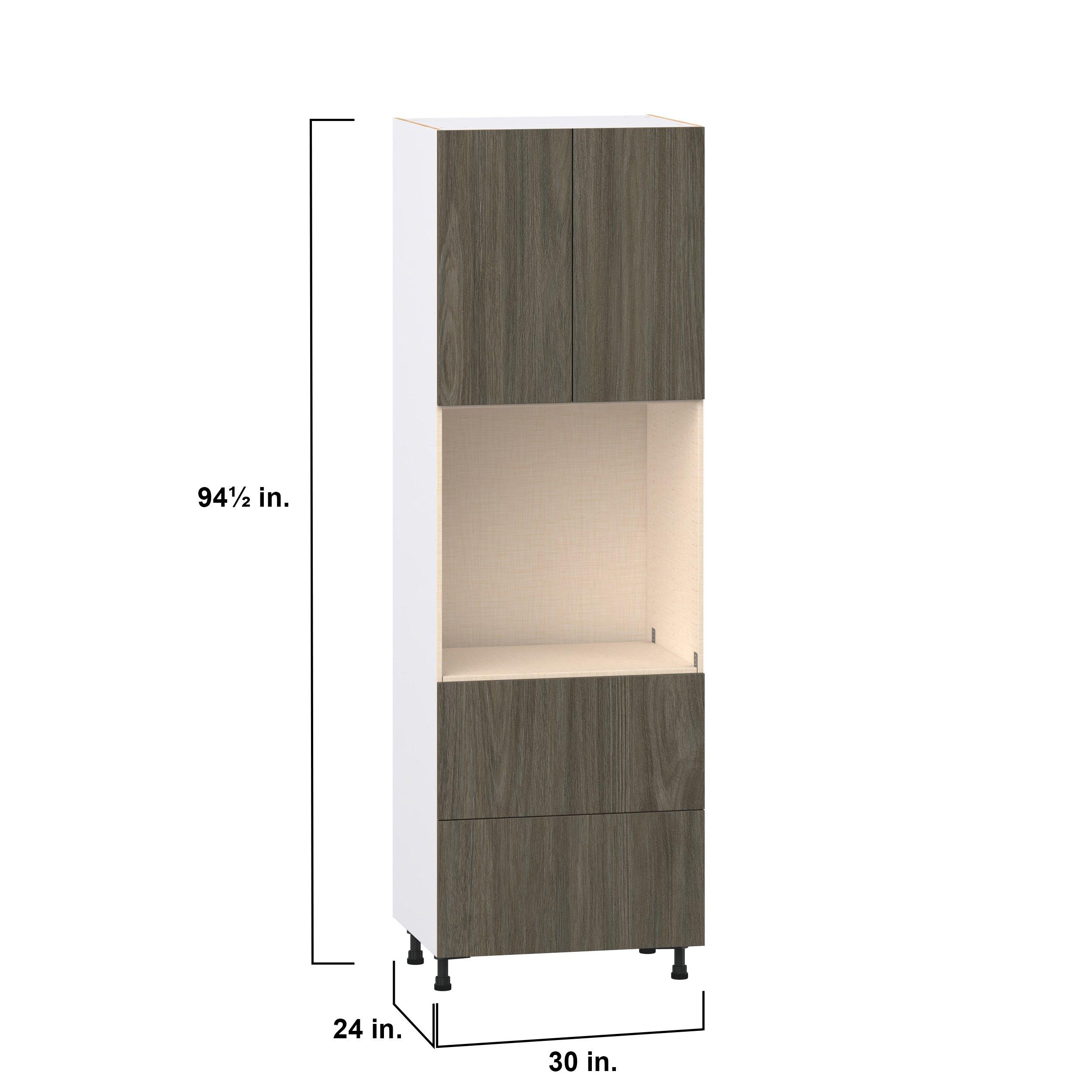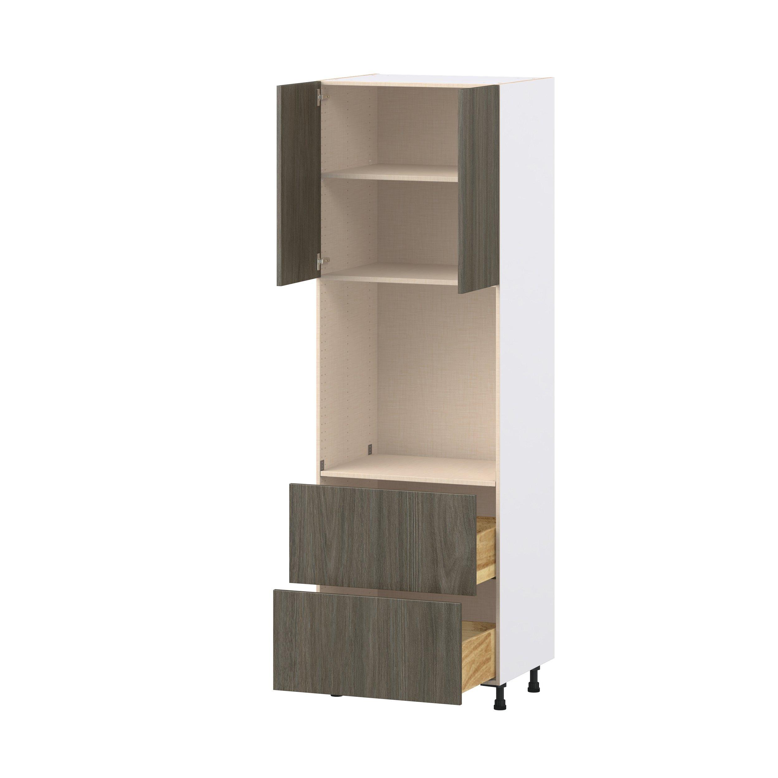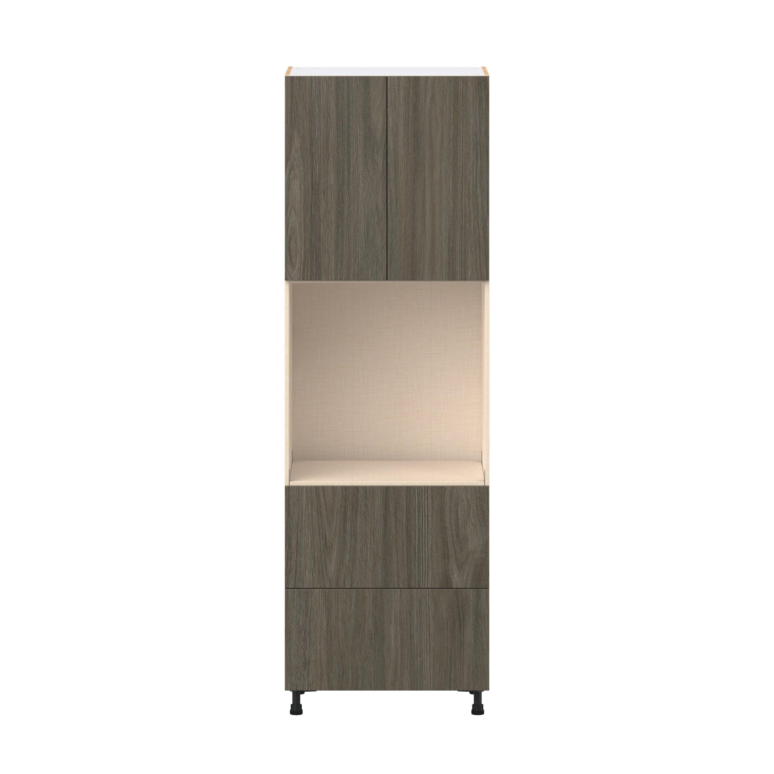 Elevate your project with the contemporary charm of Glenwood slab-style cabinets. Available in desert Mojavi oak and rich burnt walnut finishes, this collection captures the warmth and beauty of natural wood with the practicality of textured melamine. Crafted from one-piece MDF Studio Design Collection Glenwood 30 in. Burnt Walnut Door and Drawer Single Oven Pantry Cabinet is designed to resist hairline cracks while the easy-to-clean finish stands up to stains and moisture. Featuring 5-piece doors and dovetail drawer joints, these cabinets offer durability and elegance. This collection combines style with everyday storage solutions.
