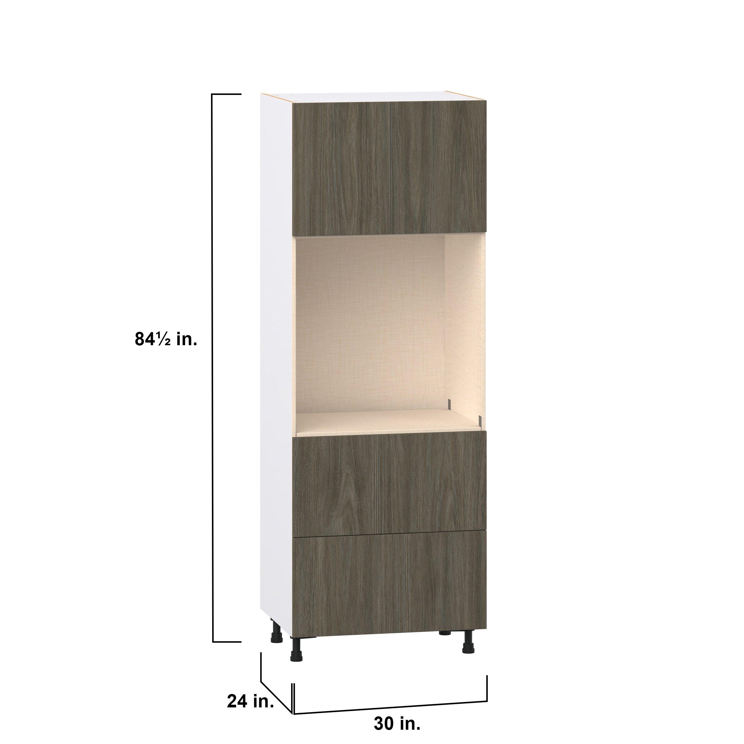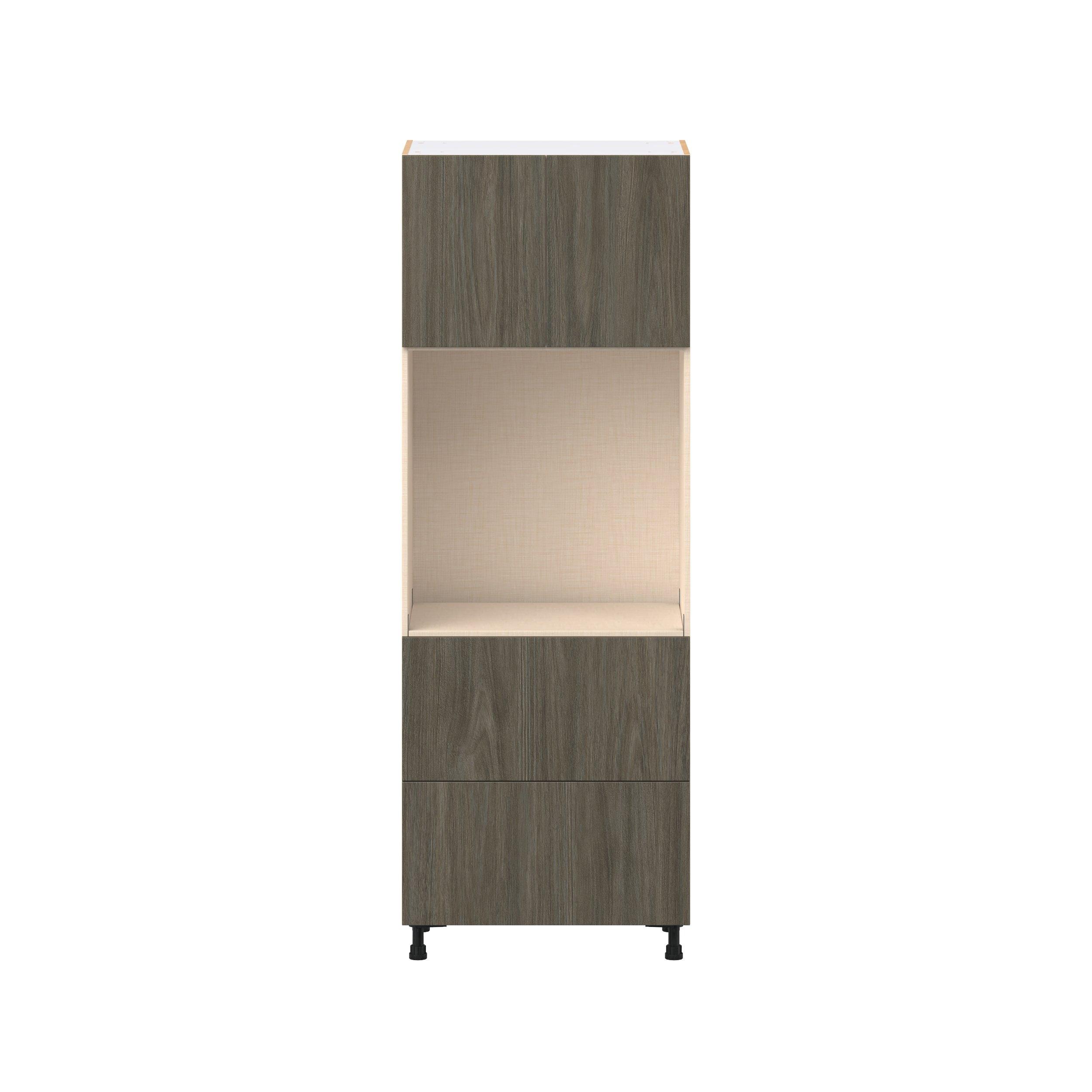 Elevate your project with the contemporary charm of Glenwood slab-style cabinets. Available in desert Mojavi oak and rich burnt walnut finishes, this collection captures the warmth and beauty of natural wood with the practicality of textured melamine. Crafted from one-piece MDF Studio Design Collection Glenwood 30 in. Burnt Walnut Door and Drawer Single Oven Pantry Cabinet is designed to resist hairline cracks while the easy-to-clean finish stands up to stains and moisture. Featuring 5-piece doors and dovetail drawer joints, these cabinets offer durability and elegance. This collection combines style with everyday storage solutions.