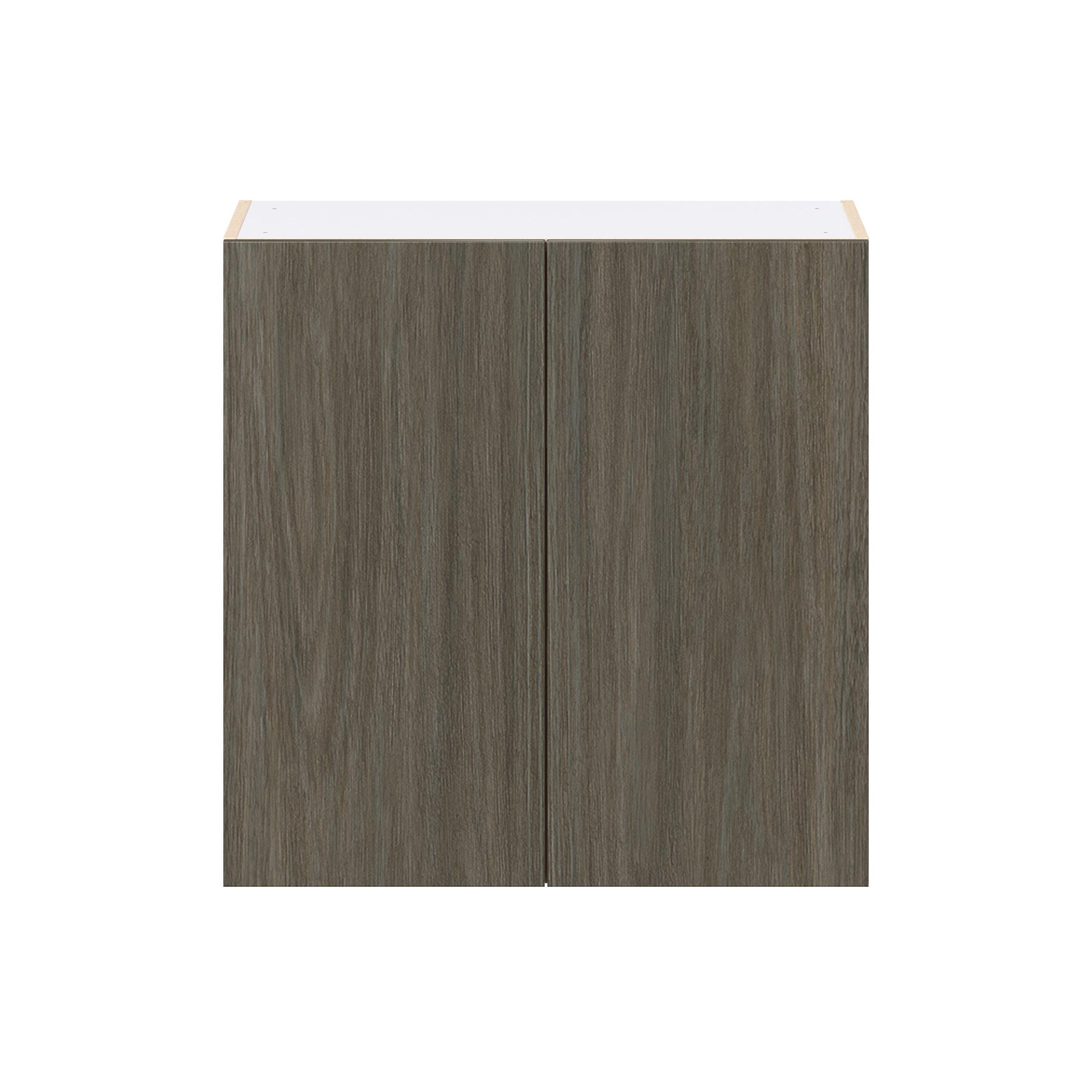 Elevate your project with the contemporary charm of Glenwood slab-style cabinets. Available in desert Mojavi oak and rich burnt walnut finishes, this collection captures the warmth and beauty of natural wood with the practicality of textured melamine. Crafted from one-piece MDF Studio Design Collection Glenwood 30 in. Burnt Walnut Door Wall Cabinet is designed to resist hairline cracks while the easy-to-clean finish stands up to stains and moisture. Featuring 5-piece doors and dovetail drawer joints, these cabinets offer durability and elegance. This collection combines style with everyday storage solutions.