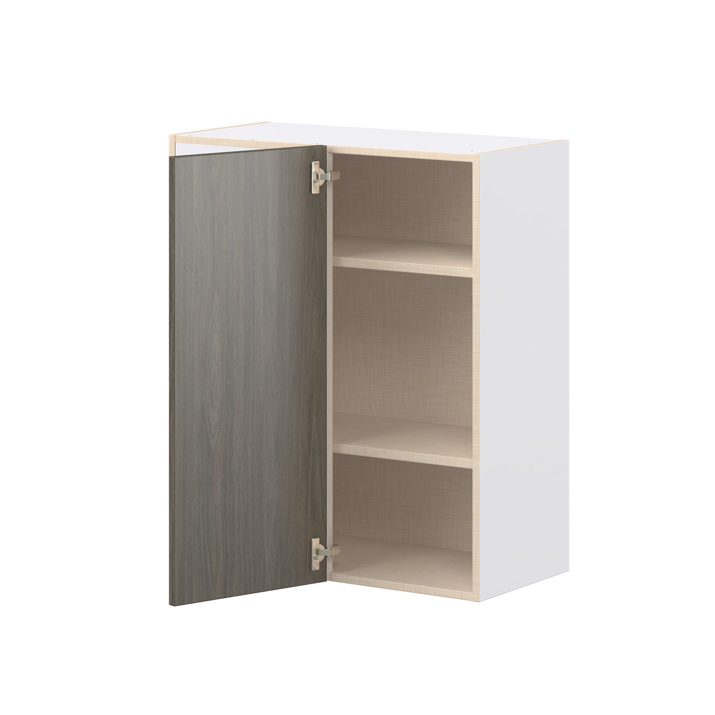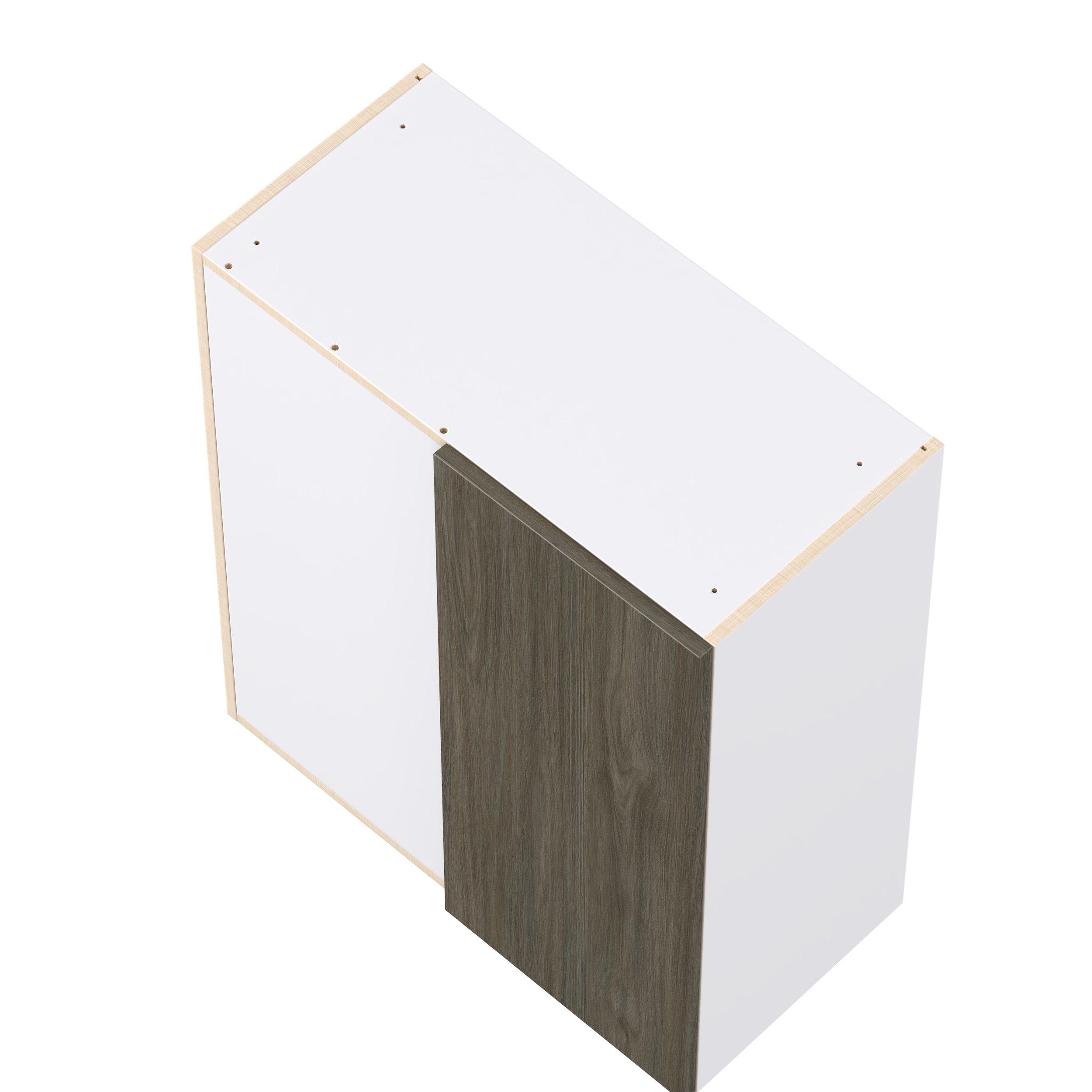 Elevate your project with the contemporary charm of Glenwood slab-style cabinets. Available in desert Mojavi oak and rich burnt walnut finishes, this collection captures the warmth and beauty of natural wood with the practicality of textured melamine. Crafted from one-piece MDF Studio Design Collection Glenwood 30 in. Burnt Walnut Left Blind Corner Wall Cabinet is designed to resist hairline cracks while the easy-to-clean finish stands up to stains and moisture. Featuring 5-piece doors and dovetail drawer joints, these cabinets offer durability and elegance. This collection combines style with everyday storage solutions.