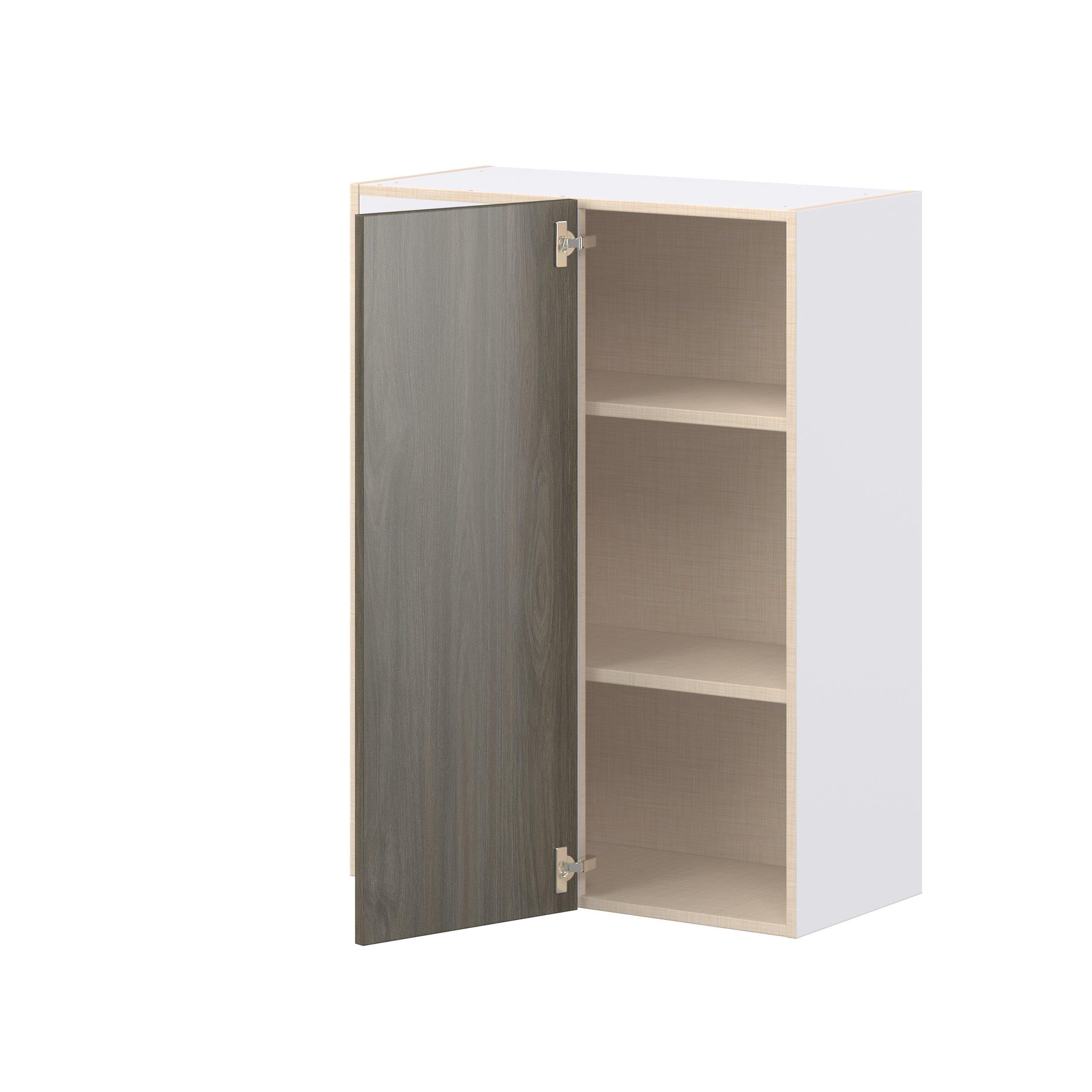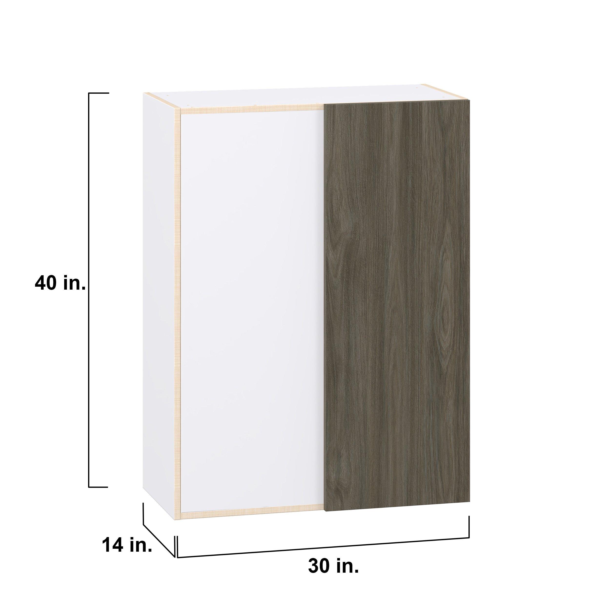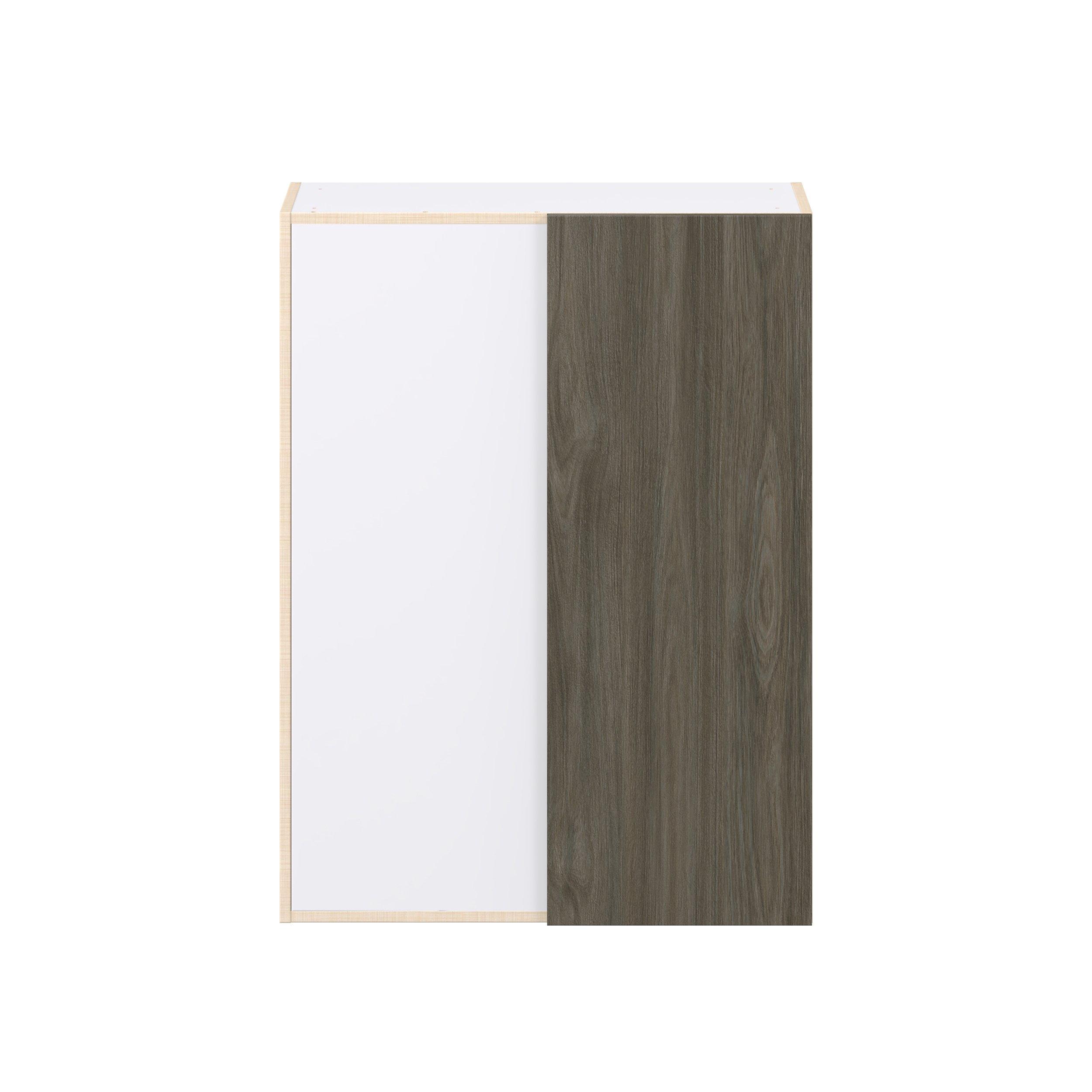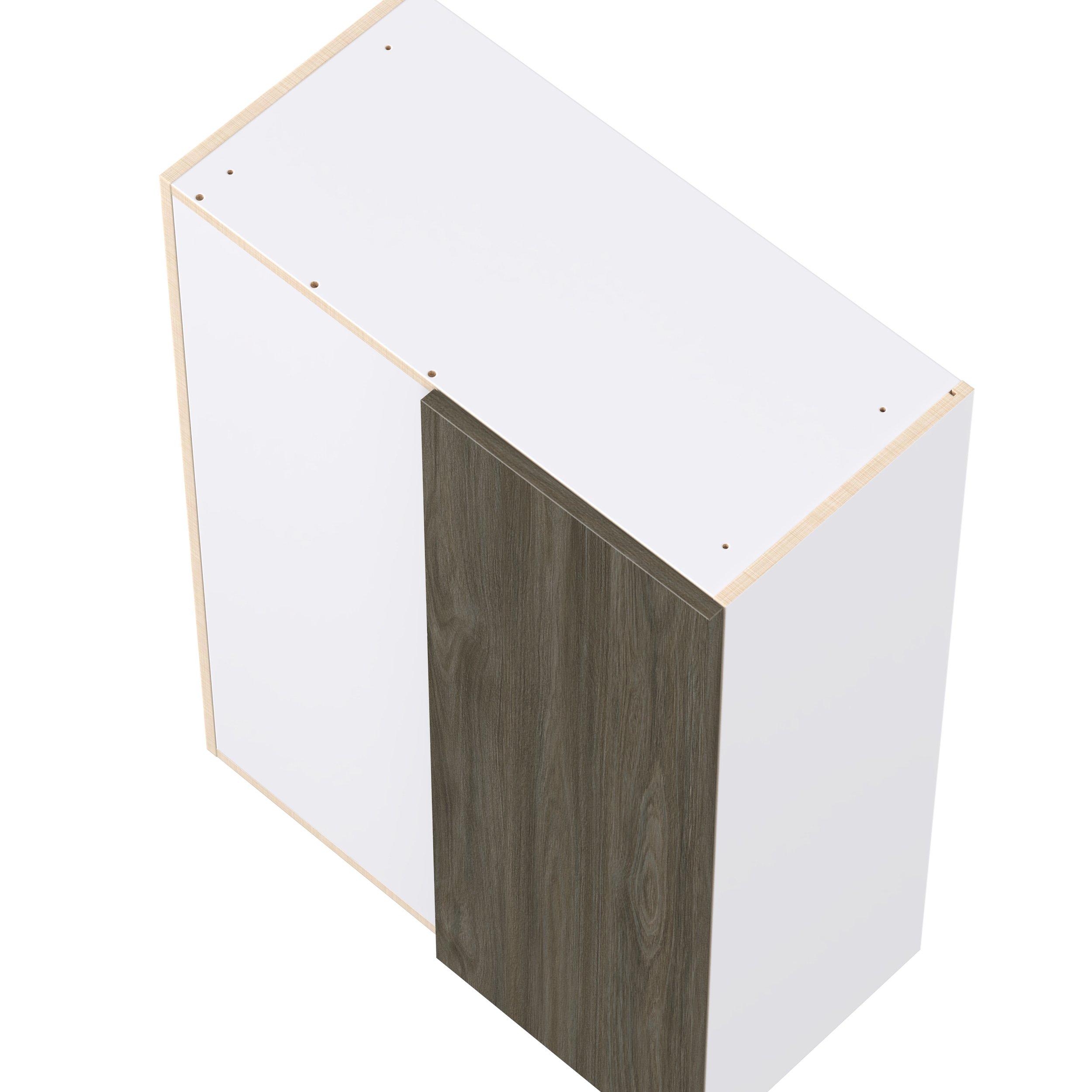 Elevate your project with the contemporary charm of Glenwood slab-style cabinets. Available in desert Mojavi oak and rich burnt walnut finishes, this collection captures the warmth and beauty of natural wood with the practicality of textured melamine. Crafted from one-piece MDF Studio Design Collection Glenwood 30 in. Burnt Walnut Left Blind Corner Wall Cabinet is designed to resist hairline cracks while the easy-to-clean finish stands up to stains and moisture. Featuring 5-piece doors and dovetail drawer joints, these cabinets offer durability and elegance. This collection combines style with everyday storage solutions.