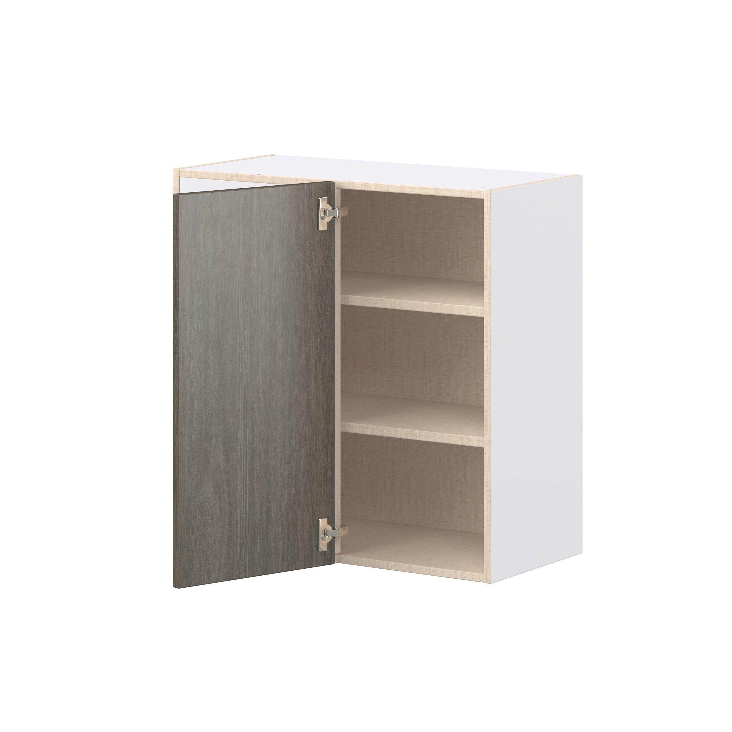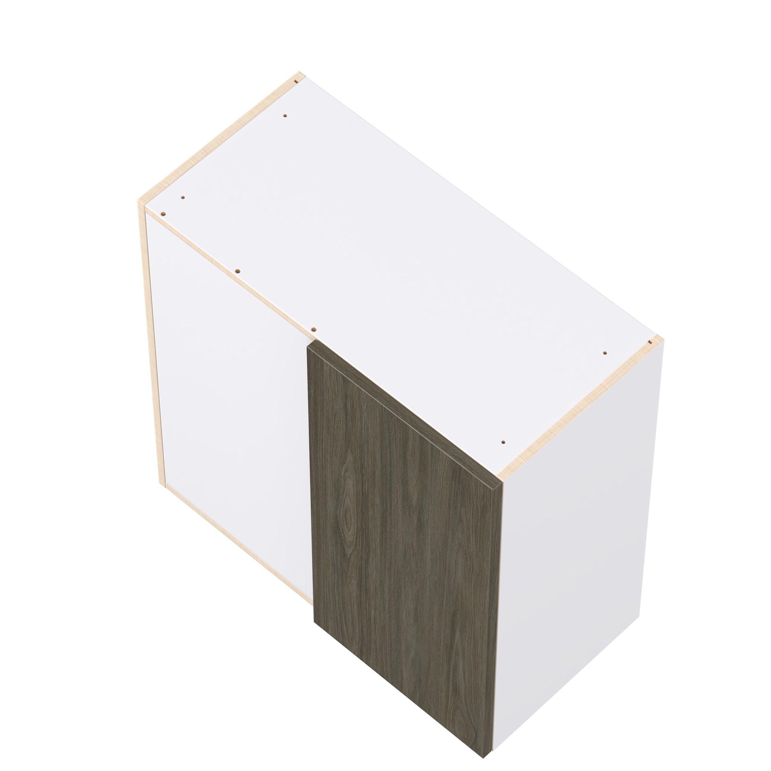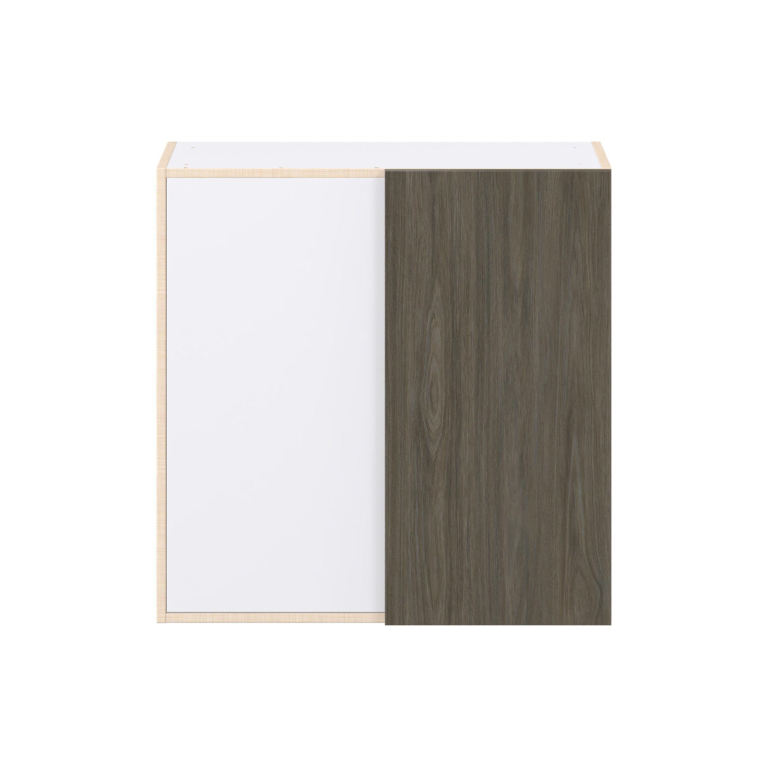 Elevate your project with the contemporary charm of Glenwood slab-style cabinets. Available in desert Mojavi oak and rich burnt walnut finishes, this collection captures the warmth and beauty of natural wood with the practicality of textured melamine. Crafted from one-piece MDF Studio Design Collection Glenwood 30 in. Burnt Walnut Left Blind Corner Wall Cabinet is designed to resist hairline cracks while the easy-to-clean finish stands up to stains and moisture. Featuring 5-piece doors and dovetail drawer joints, these cabinets offer durability and elegance. This collection combines style with everyday storage solutions.