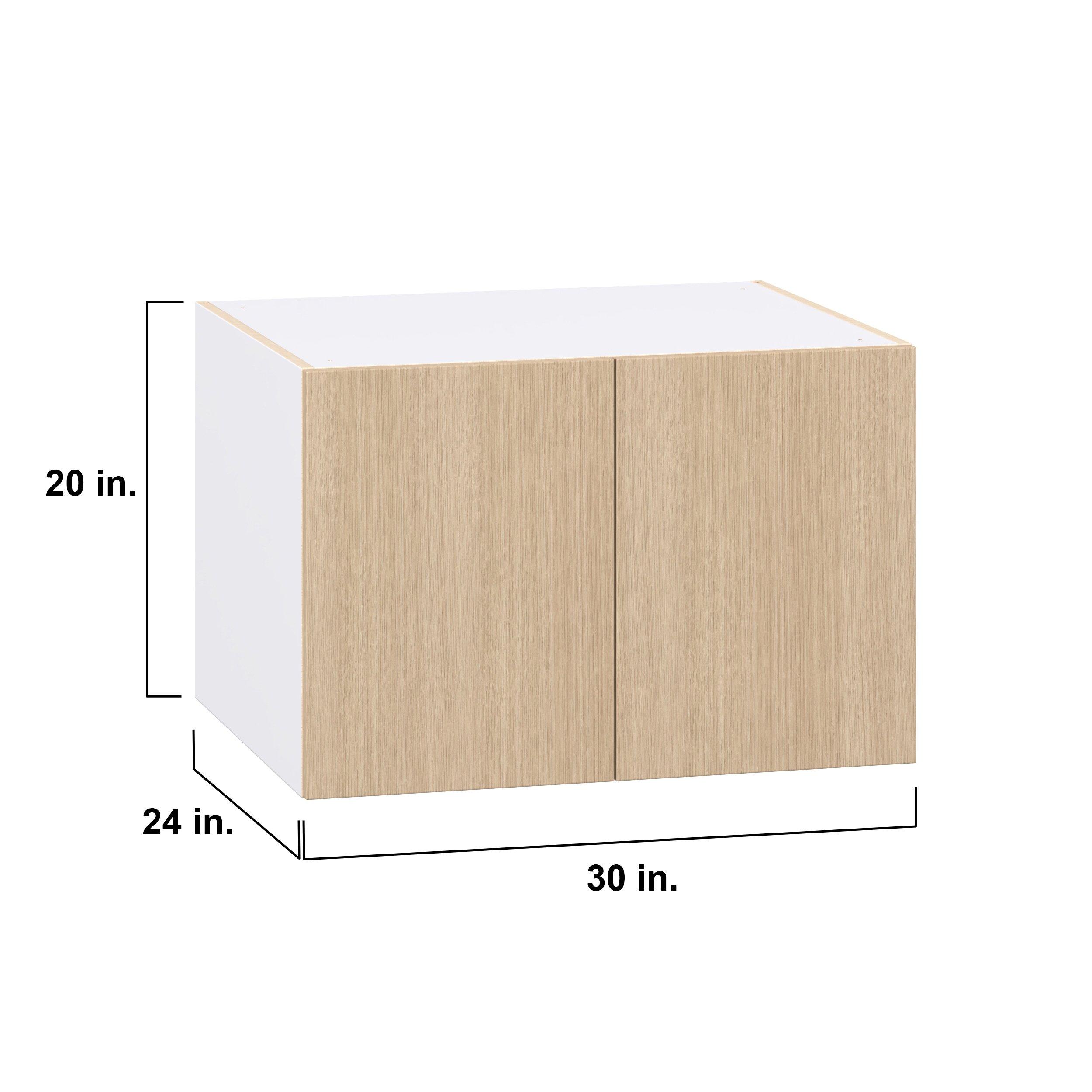 Elevate your project with the contemporary charm of Glenwood slab-style cabinets. Available in desert Mojavi oak and rich burnt walnut finishes, this collection captures the warmth and beauty of natural wood with the practicality of textured melamine. Crafted from one-piece MDF Studio Design Collection Glenwood 30 in. Mojavi Oak Bridge Wall Cabinet is designed to resist hairline cracks while the easy-to-clean finish stands up to stains and moisture. Featuring 5-piece doors and dovetail drawer joints, these cabinets offer durability and elegance. This collection combines style with everyday storage solutions.