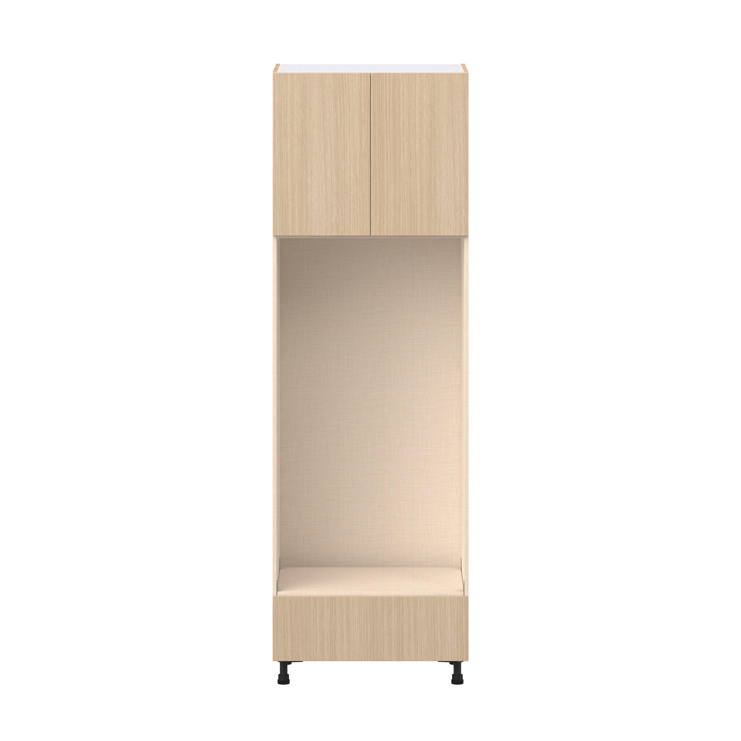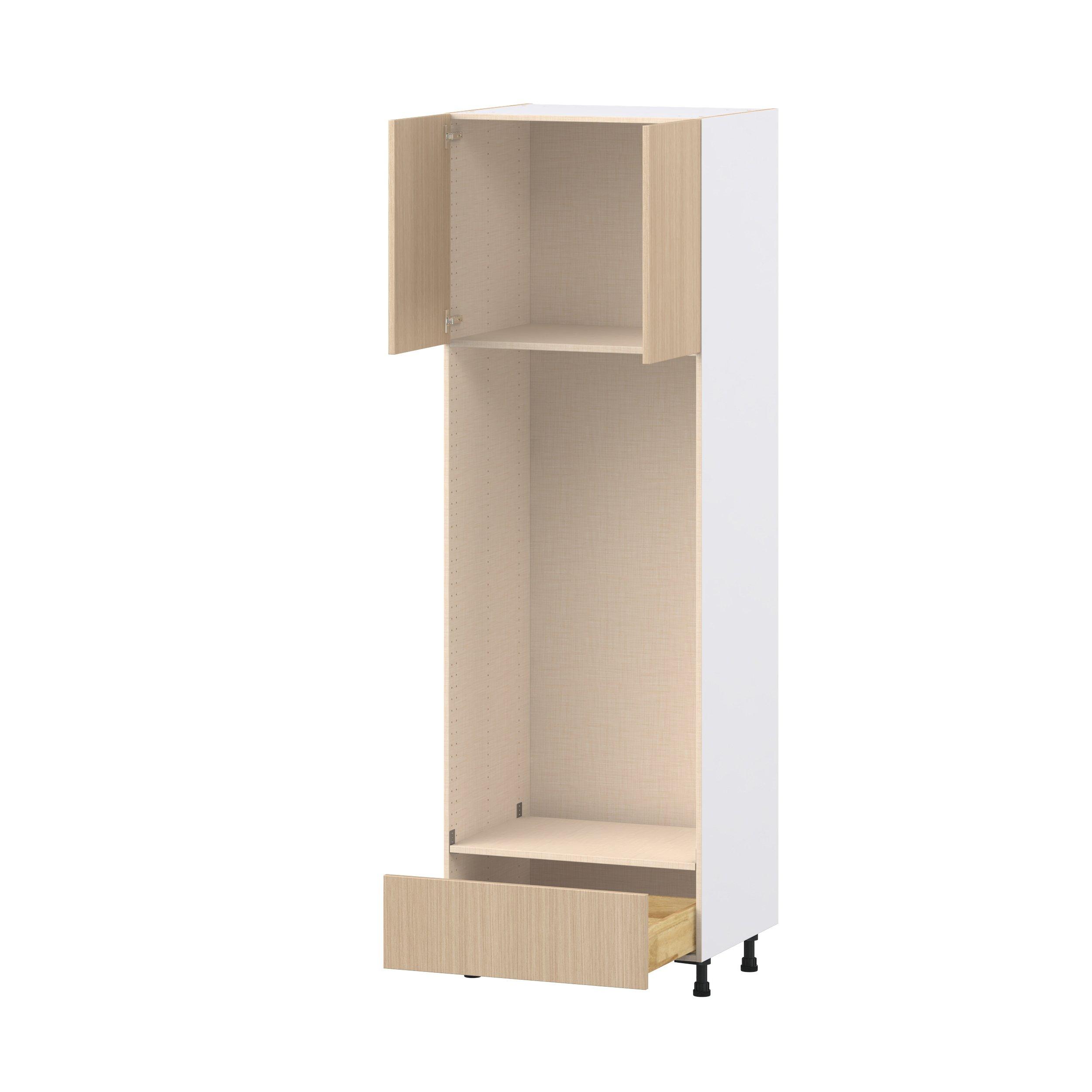 Elevate your project with the contemporary charm of Glenwood slab-style cabinets. Available in desert Mojavi oak and rich burnt walnut finishes, this collection captures the warmth and beauty of natural wood with the practicality of textured melamine. Crafted from one-piece MDF Studio Design Collection Glenwood 30 in. Mojavi Oak Door and Drawer Double Oven Pantry Cabinet is designed to resist hairline cracks while the easy-to-clean finish stands up to stains and moisture. Featuring 5-piece doors and dovetail drawer joints, these cabinets offer durability and elegance. This collection combines style with everyday storage solutions.
