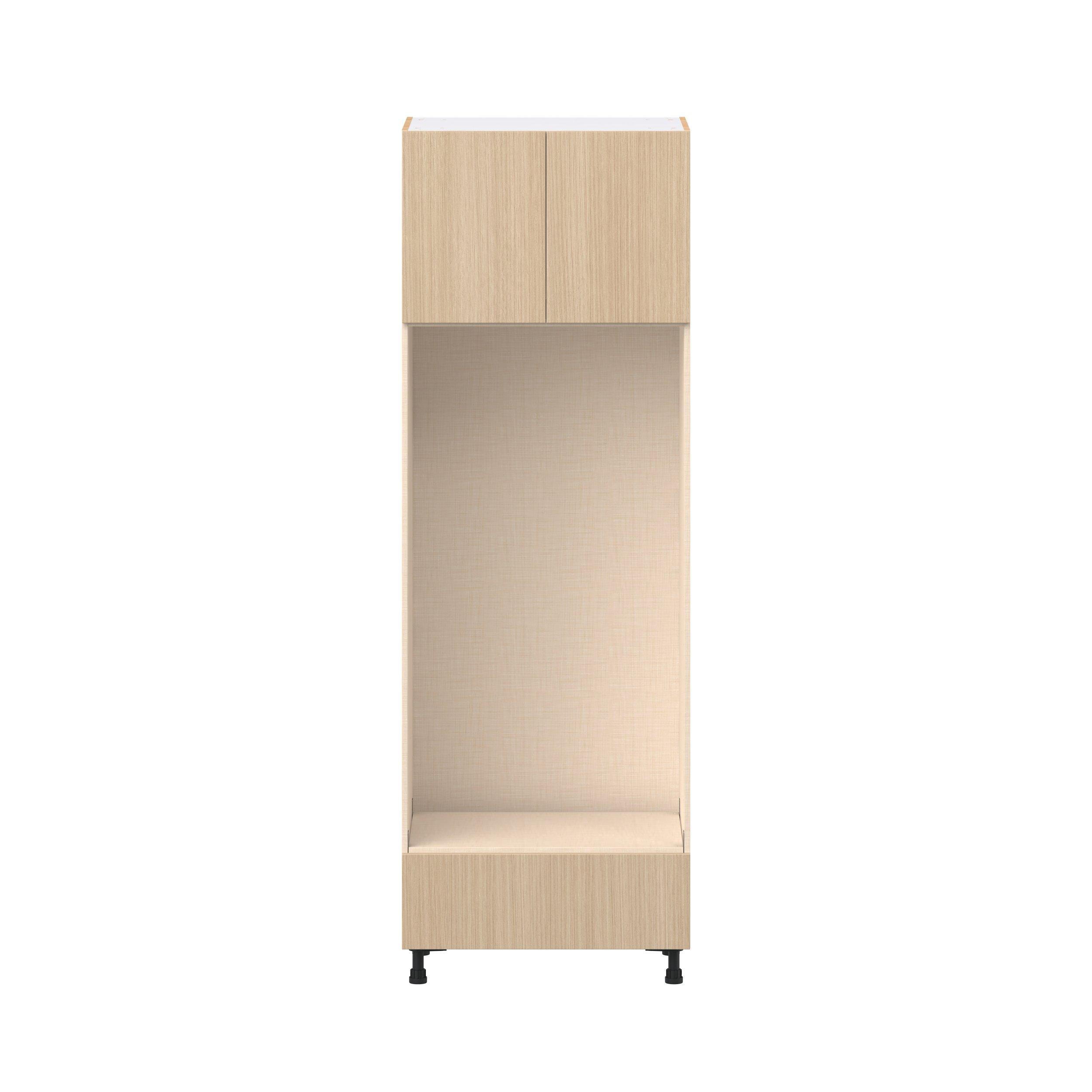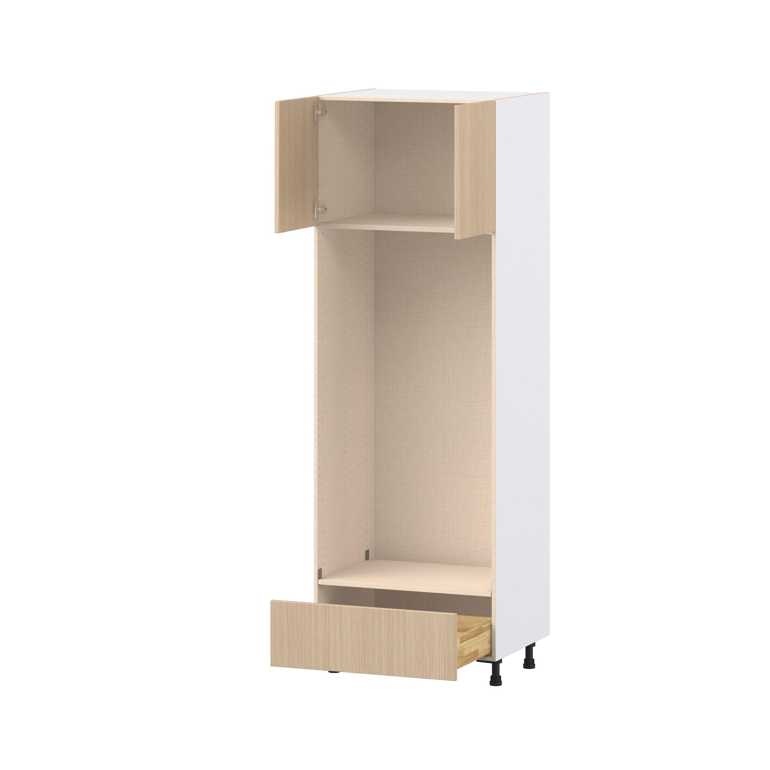 Elevate your project with the contemporary charm of Glenwood slab-style cabinets. Available in desert Mojavi oak and rich burnt walnut finishes, this collection captures the warmth and beauty of natural wood with the practicality of textured melamine. Crafted from one-piece MDF Studio Design Collection Glenwood 30 in. Mojavi Oak Door and Drawer Double Oven Pantry Cabinet is designed to resist hairline cracks while the easy-to-clean finish stands up to stains and moisture. Featuring 5-piece doors and dovetail drawer joints, these cabinets offer durability and elegance. This collection combines style with everyday storage solutions.