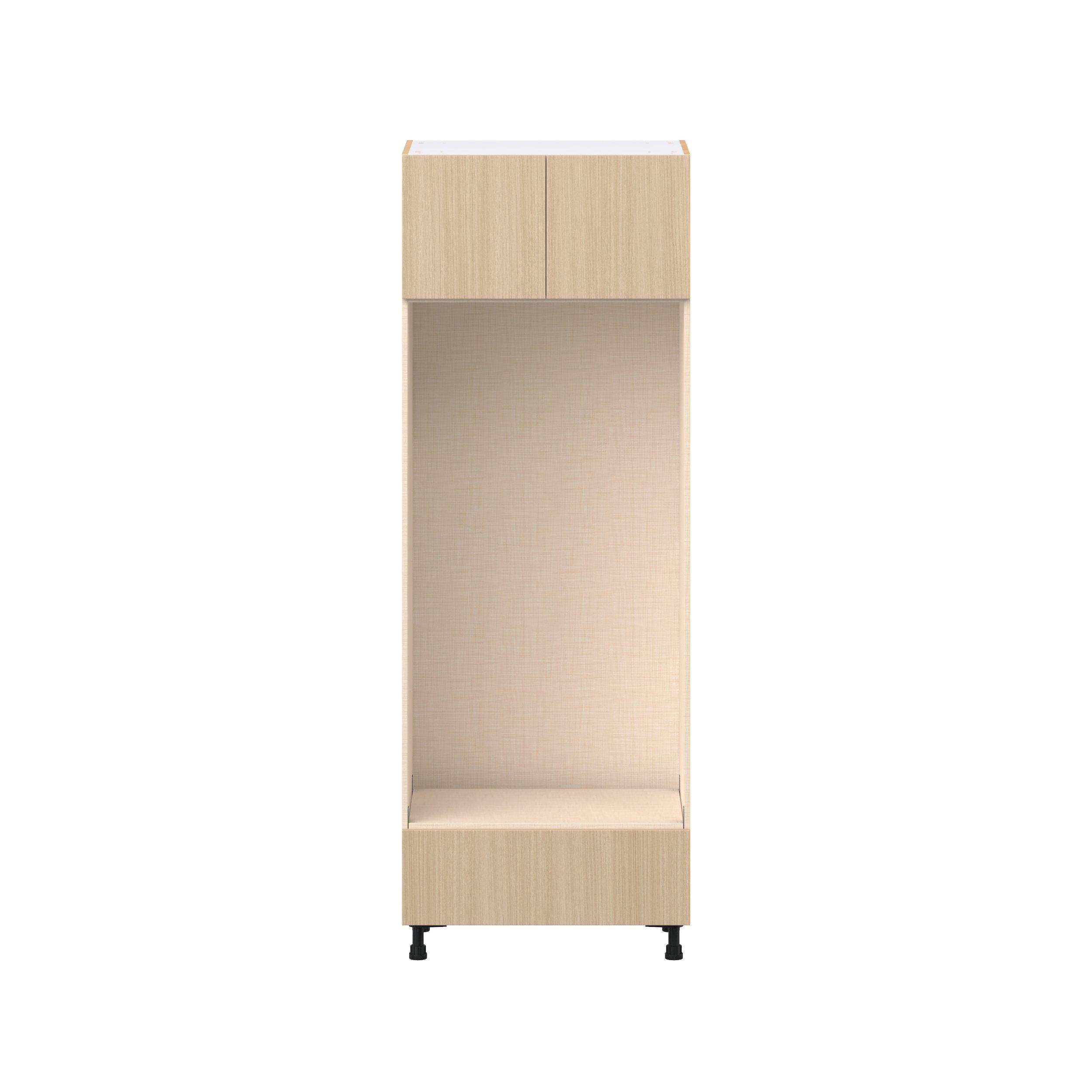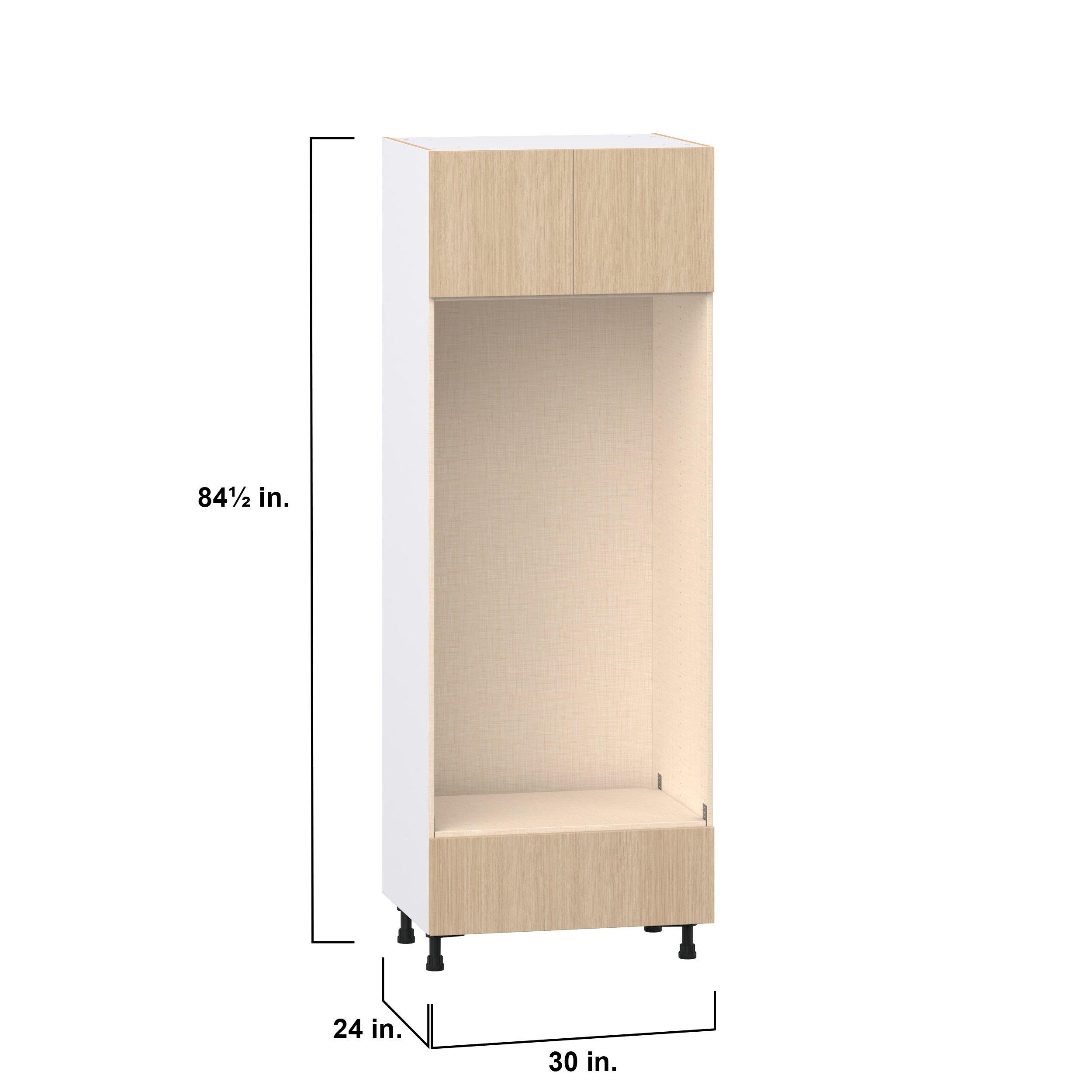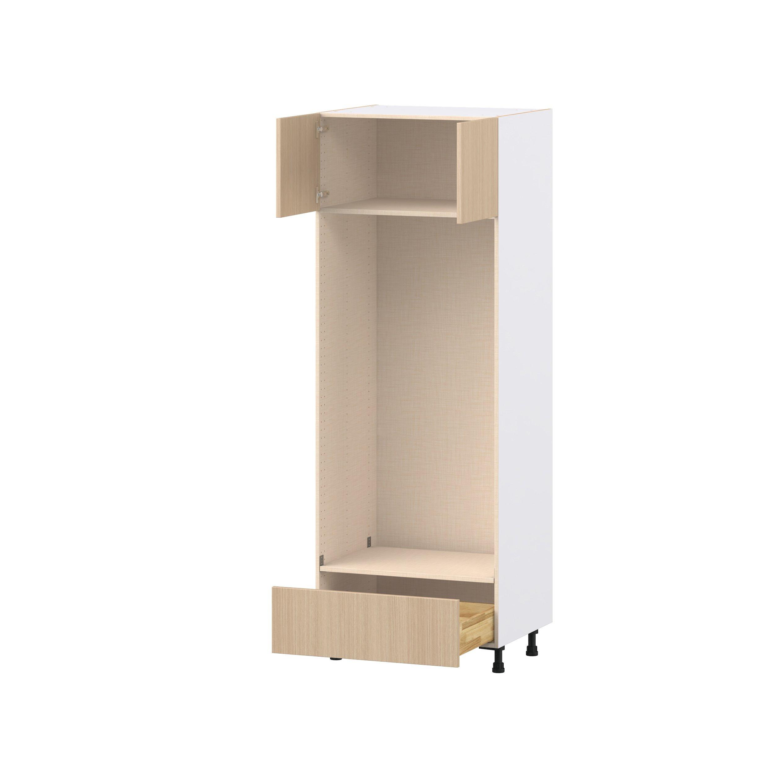 Elevate your project with the contemporary charm of Glenwood slab-style cabinets. Available in desert Mojavi oak and rich burnt walnut finishes, this collection captures the warmth and beauty of natural wood with the practicality of textured melamine. Crafted from one-piece MDF Studio Design Collection Glenwood 30 in. Mojavi Oak Door and Drawer Double Oven Pantry Cabinet is designed to resist hairline cracks while the easy-to-clean finish stands up to stains and moisture. Featuring 5-piece doors and dovetail drawer joints, these cabinets offer durability and elegance. This collection combines style with everyday storage solutions.