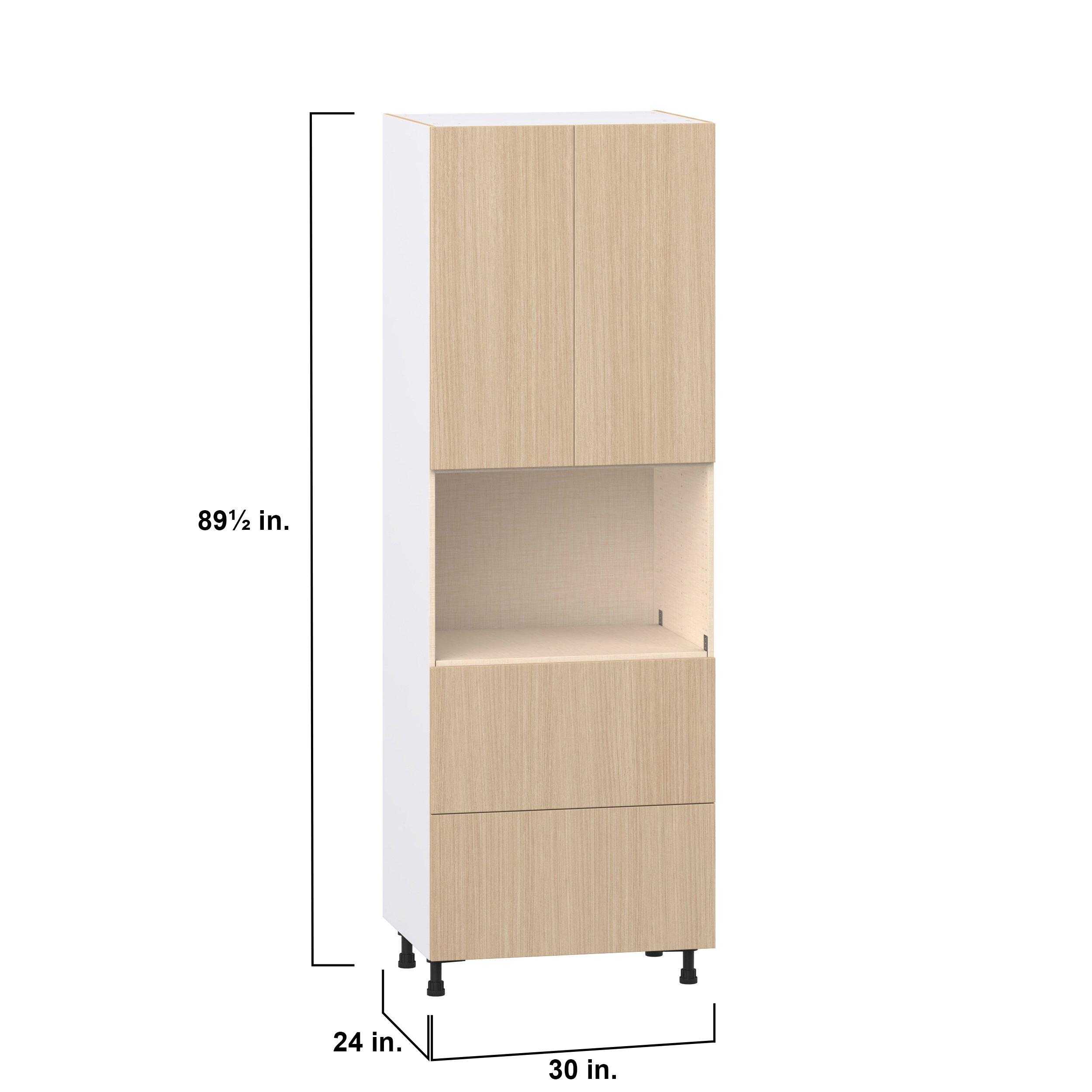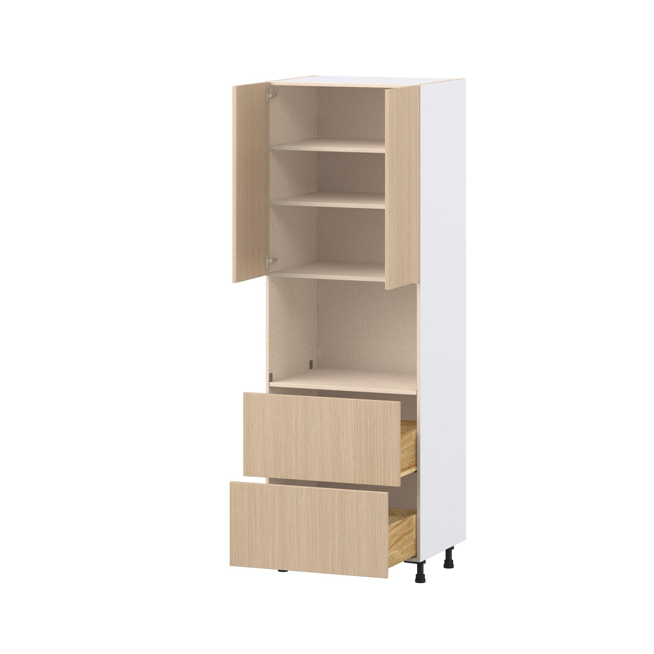 Elevate your project with the contemporary charm of Glenwood slab-style cabinets. Available in desert Mojavi oak and rich burnt walnut finishes, this collection captures the warmth and beauty of natural wood with the practicality of textured melamine. Crafted from one-piece MDF Studio Design Collection Glenwood 30 in. Mojavi Oak Door and Drawer Microwave Pantry Cabinet is designed to resist hairline cracks while the easy-to-clean finish stands up to stains and moisture. Featuring 5-piece doors and dovetail drawer joints, these cabinets offer durability and elegance. This collection combines style with everyday storage solutions.