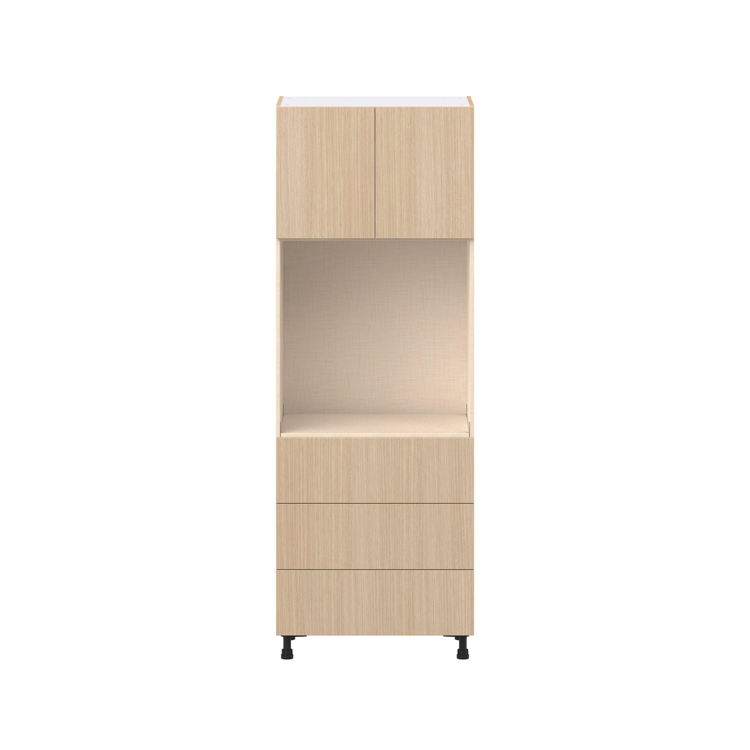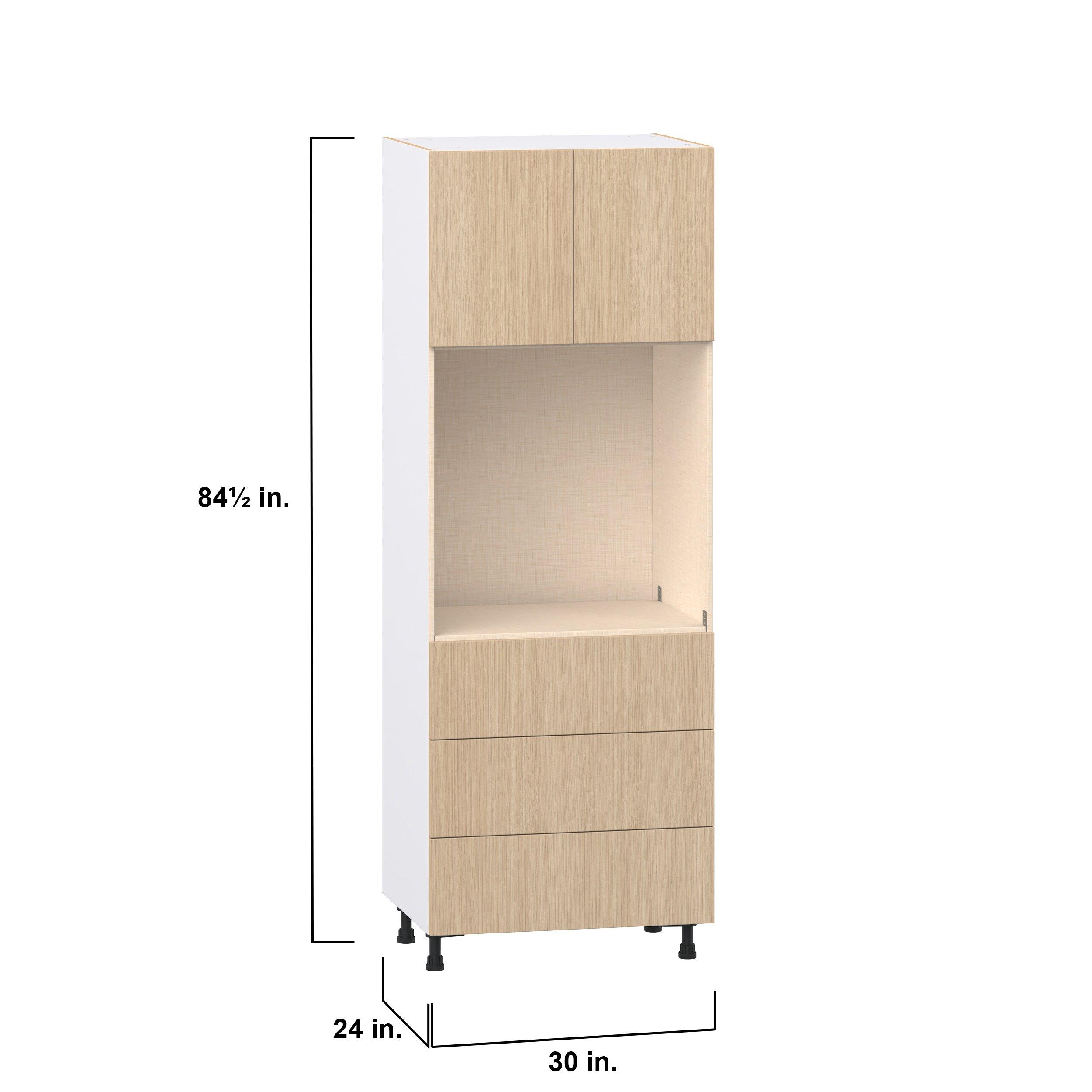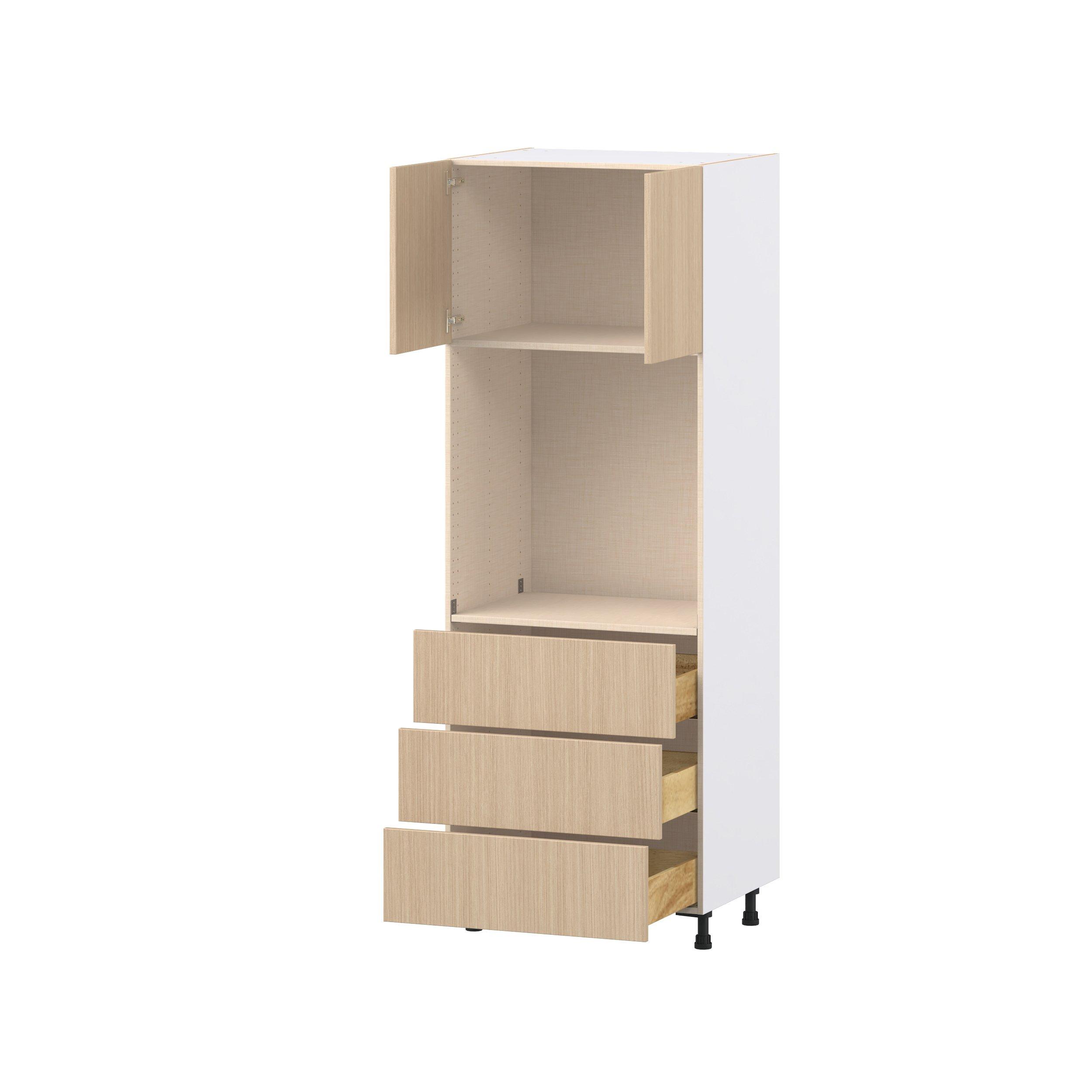 Elevate your project with the contemporary charm of Glenwood slab-style cabinets. Available in desert Mojavi oak and rich burnt walnut finishes, this collection captures the warmth and beauty of natural wood with the practicality of textured melamine. Crafted from one-piece MDF Studio Design Collection Glenwood 30 in. Mojavi Oak Door and Drawer Single Oven Pantry Cabinet is designed to resist hairline cracks while the easy-to-clean finish stands up to stains and moisture. Featuring 5-piece doors and dovetail drawer joints, these cabinets offer durability and elegance. This collection combines style with everyday storage solutions.