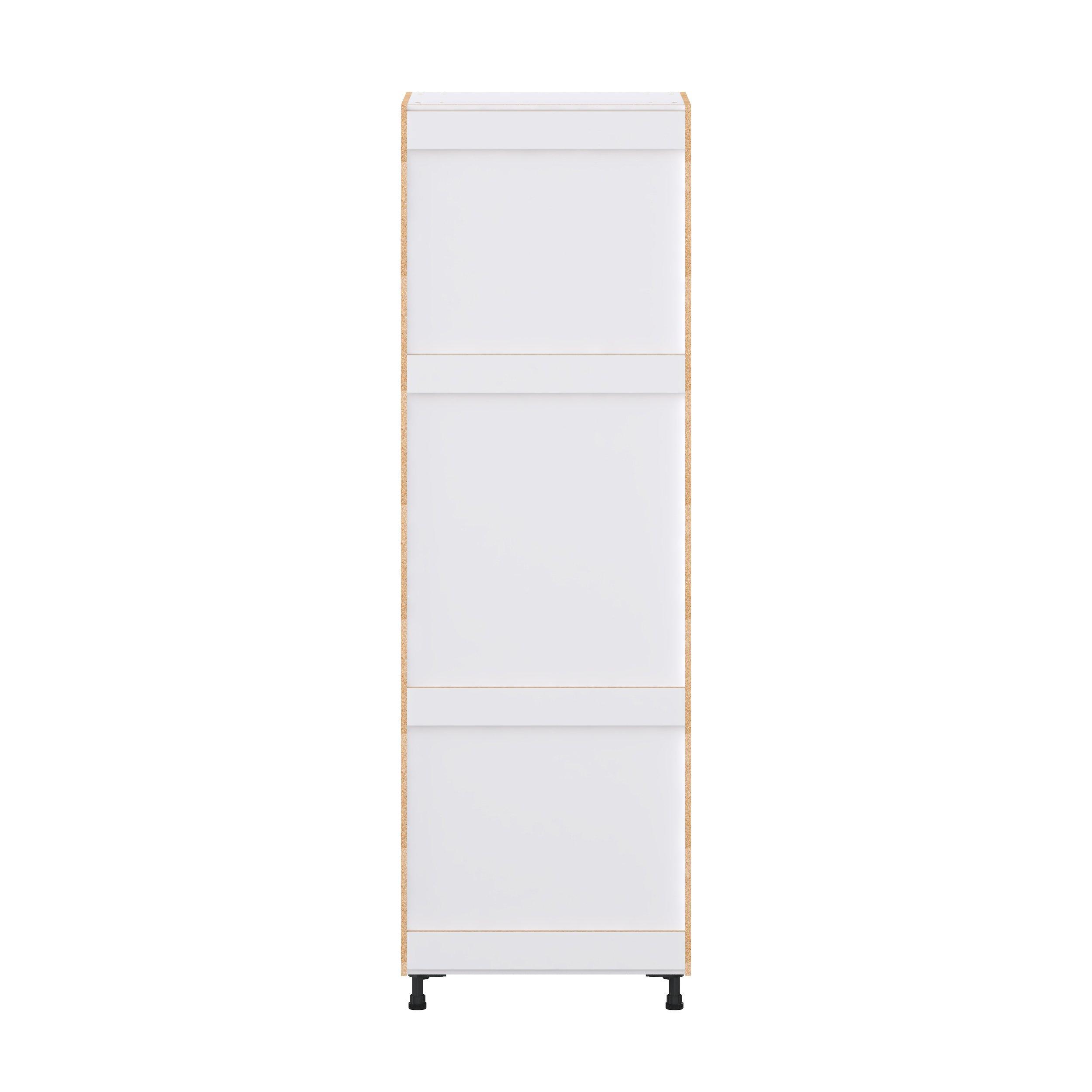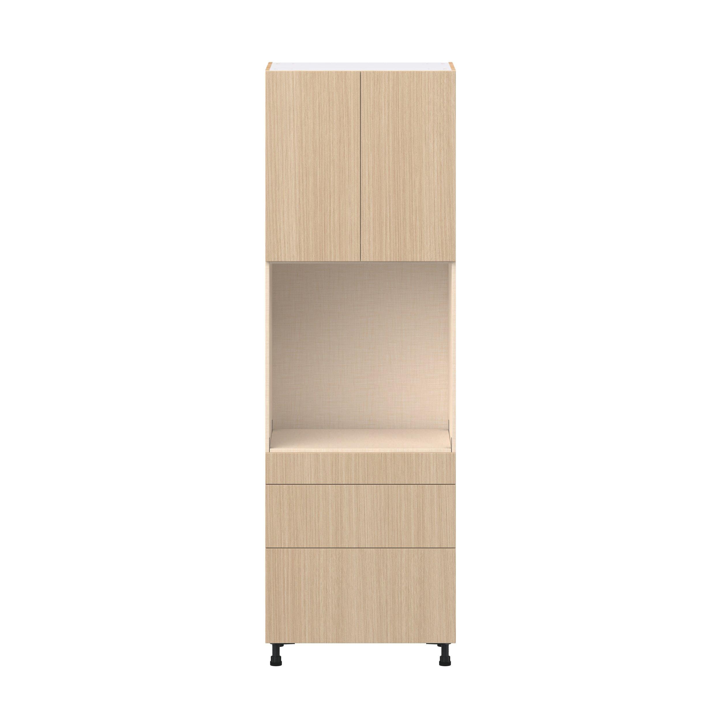 Elevate your project with the contemporary charm of Glenwood slab-style cabinets. Available in desert Mojavi oak and rich burnt walnut finishes, this collection captures the warmth and beauty of natural wood with the practicality of textured melamine. Crafted from one-piece MDF Studio Design Collection Glenwood 30 in. Mojavi Oak Door and Drawer Single Oven Pantry Cabinet is designed to resist hairline cracks while the easy-to-clean finish stands up to stains and moisture. Featuring 5-piece doors and dovetail drawer joints, these cabinets offer durability and elegance. This collection combines style with everyday storage solutions.